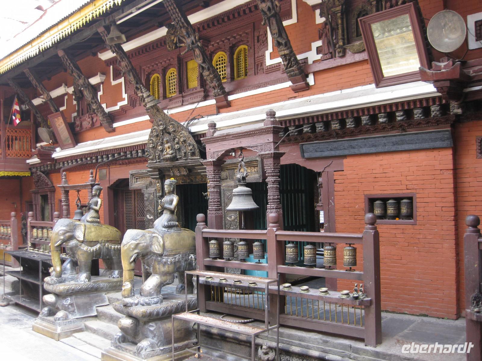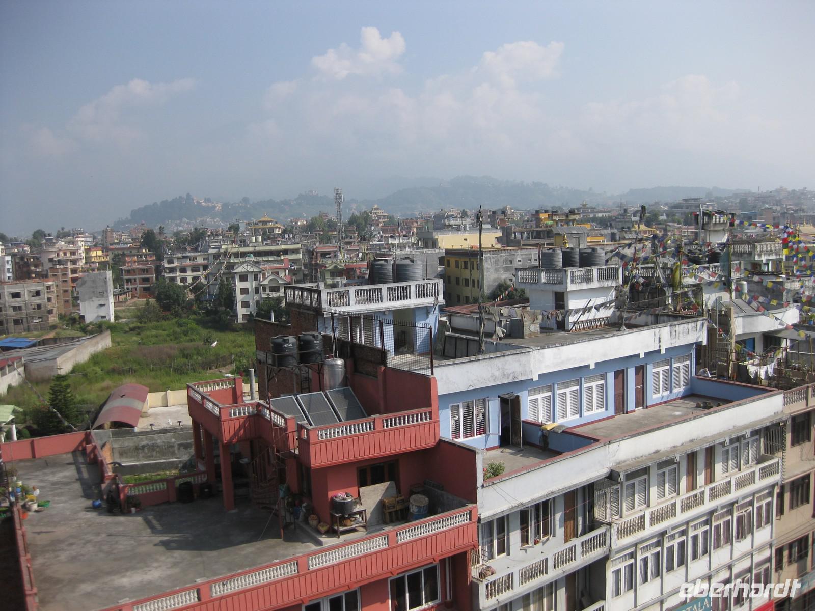 Nachdem wir die Zimmer bezogen haben, beginnen wir noch mit der Stadtbesichtigung. Kathmandu hat in den letzten Jahrzenten eine dramatische Entwicklung genommen. Durch das immense Bevölkerungswachstum ist die Stadt aus allen Nähten geplatzt. Folge davon sind Hektik, Verkehrslärm und dichte Abgaswolken. An die Stadt mit dem hoffnungslosen Chaos müssen wir uns erst gewöhnen.