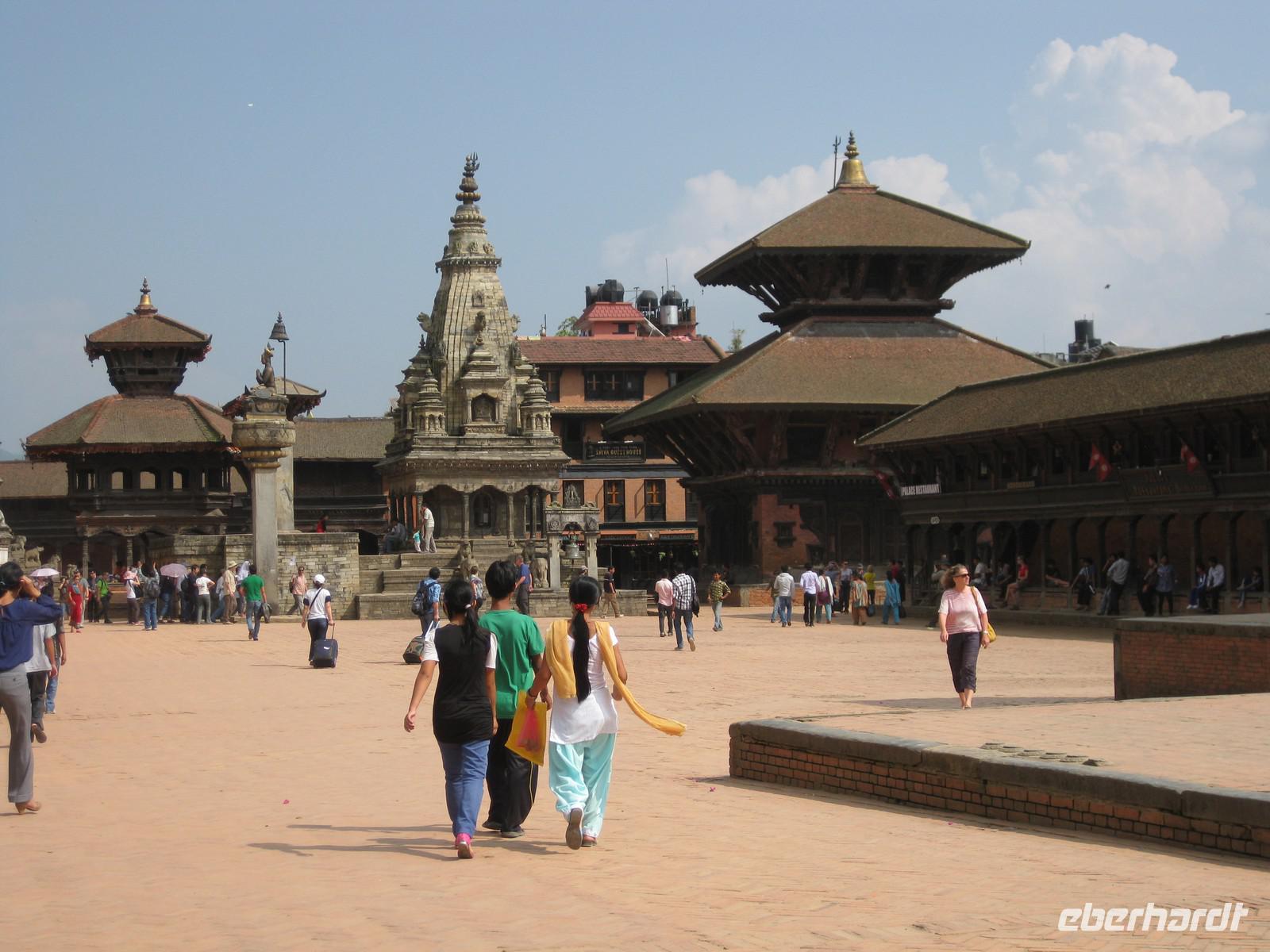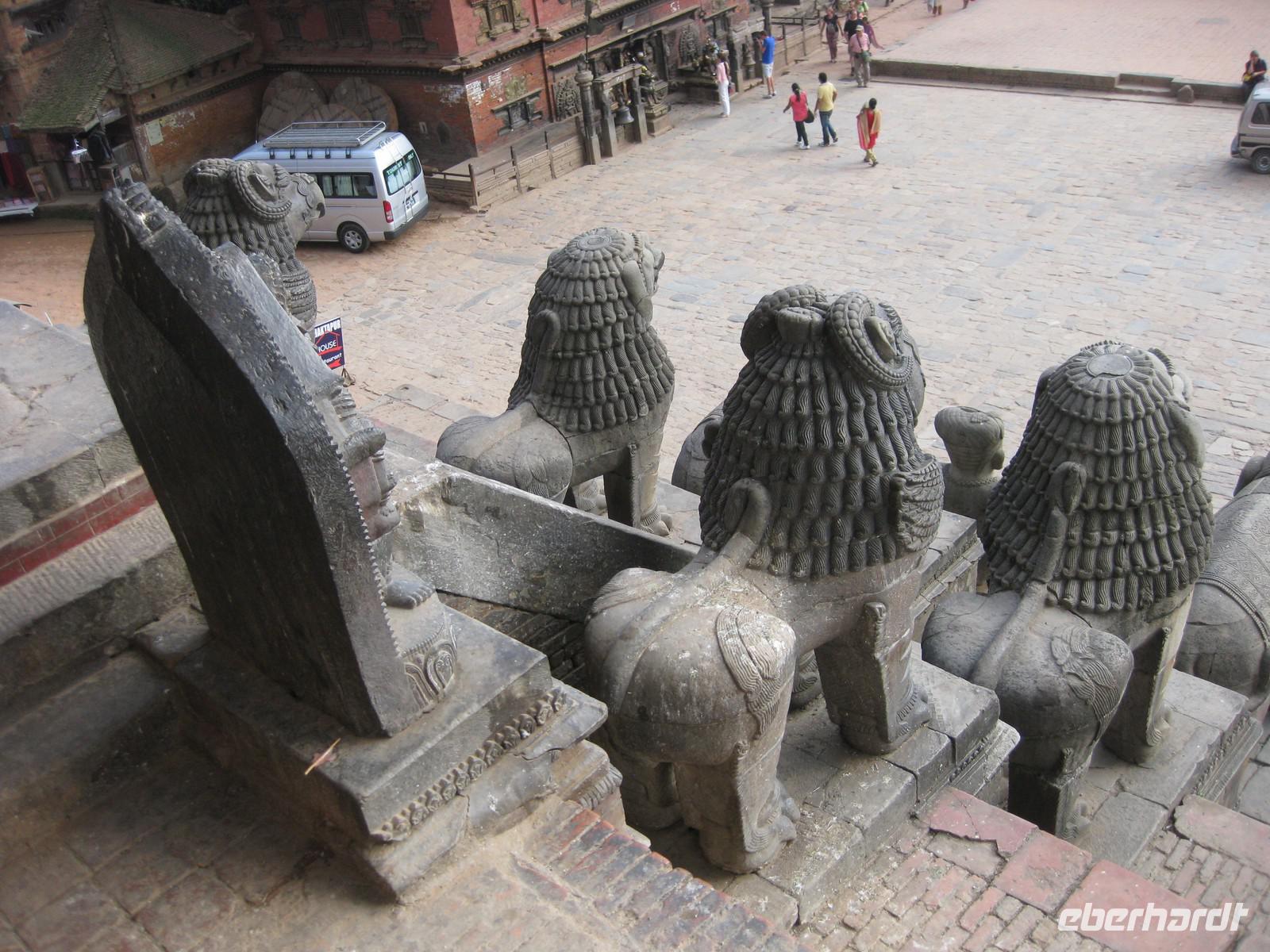 Vom Nyatapola-Tempel aus lässt sich das alles gut überblicken. Wir fühlen uns ein wenig in's Mittelalter zurück versetzt, eine vollkommen andere Welt.