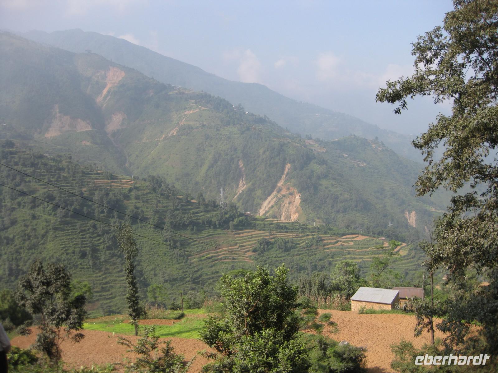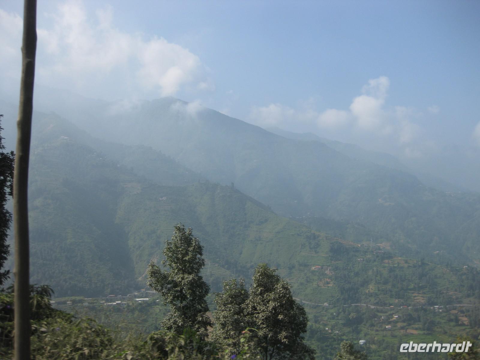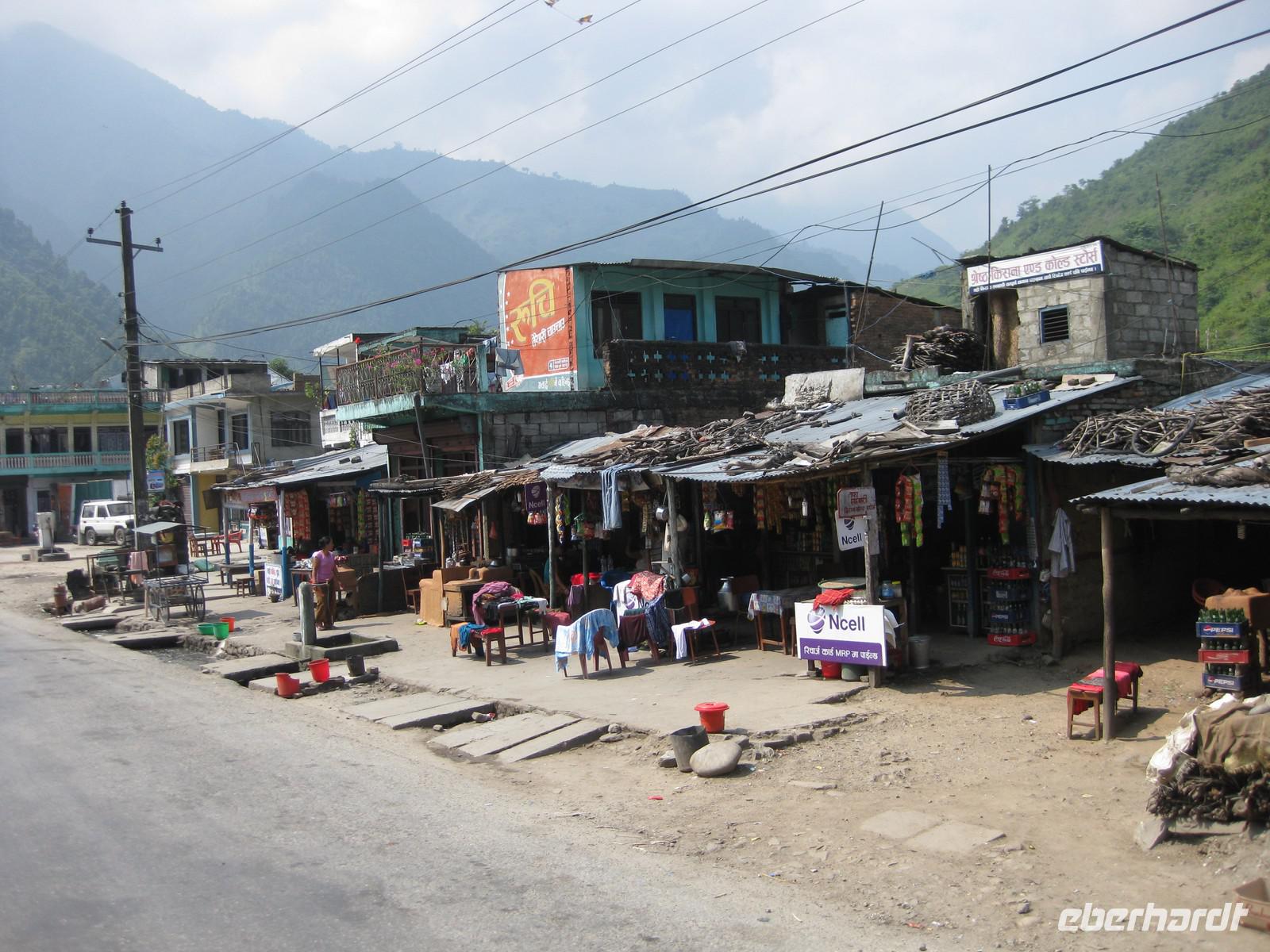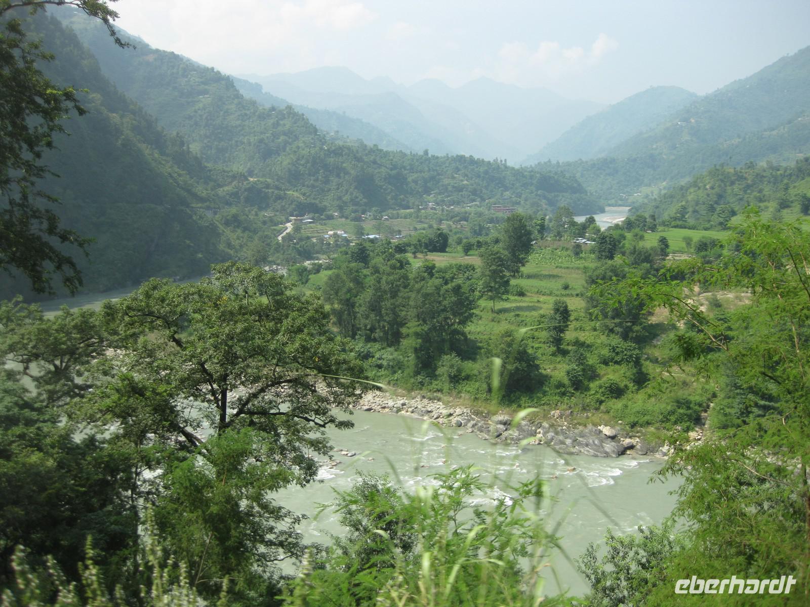 Wir fahren vom Chitwan Mationalpark bis zur Stadt Mugling die gleiche Strecke auf dem Ost-West-„Highway" im Tal am Fluss Trishuli zurück, die wir gekommen sind. In Mugling verlassen wir dann den „Highway" und fahren auf dem anderen weiter in Richtung Pokhara. Auf der Fahrt dorthin können wir schon mal die schneebedeckten Berge des Annapurna-Massivs sehen. Sie zeigen sich uns in der Ferne. Wir machen einige Fotostopps unterwegs.