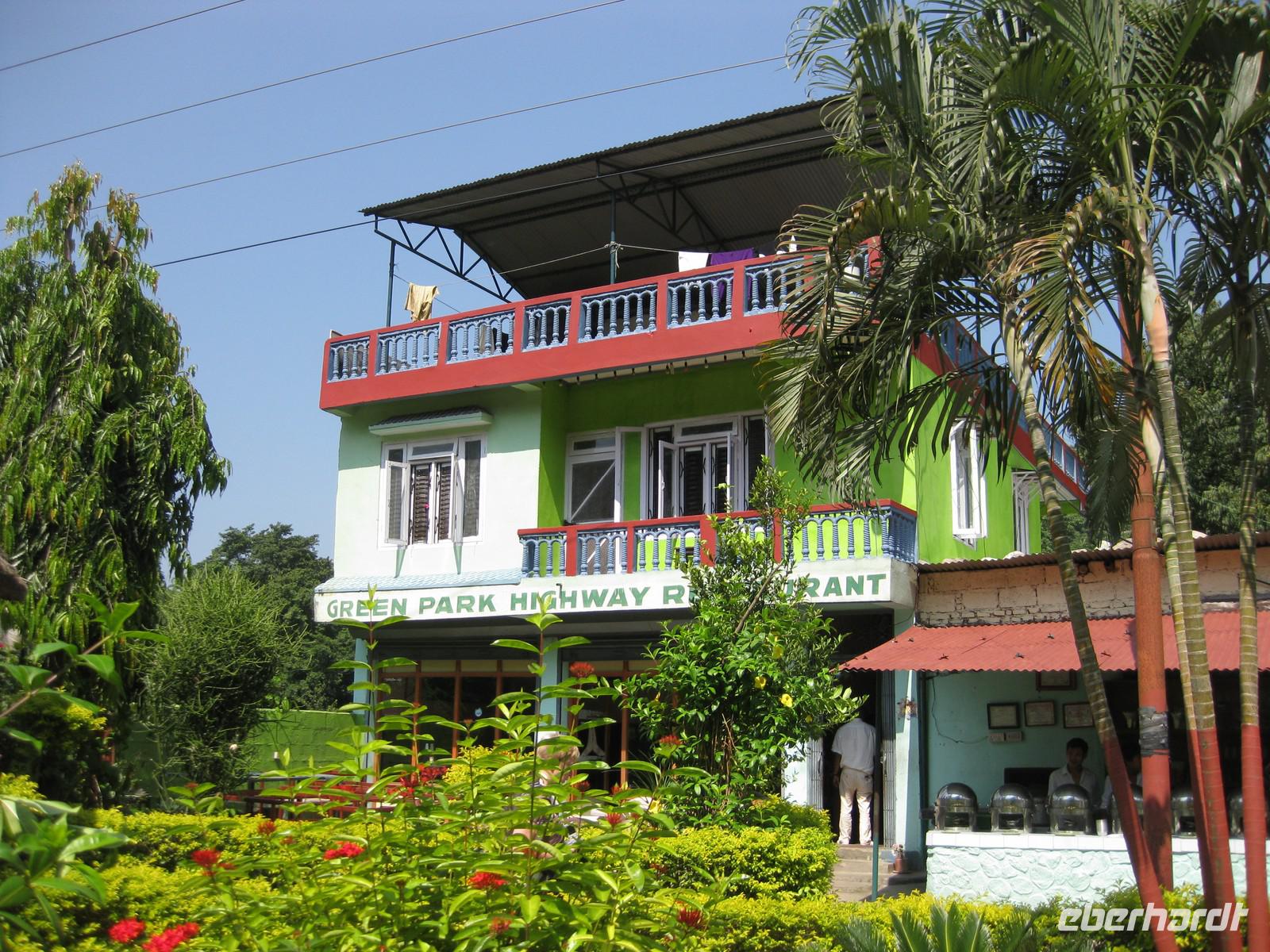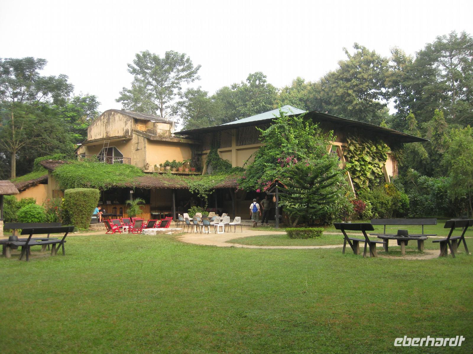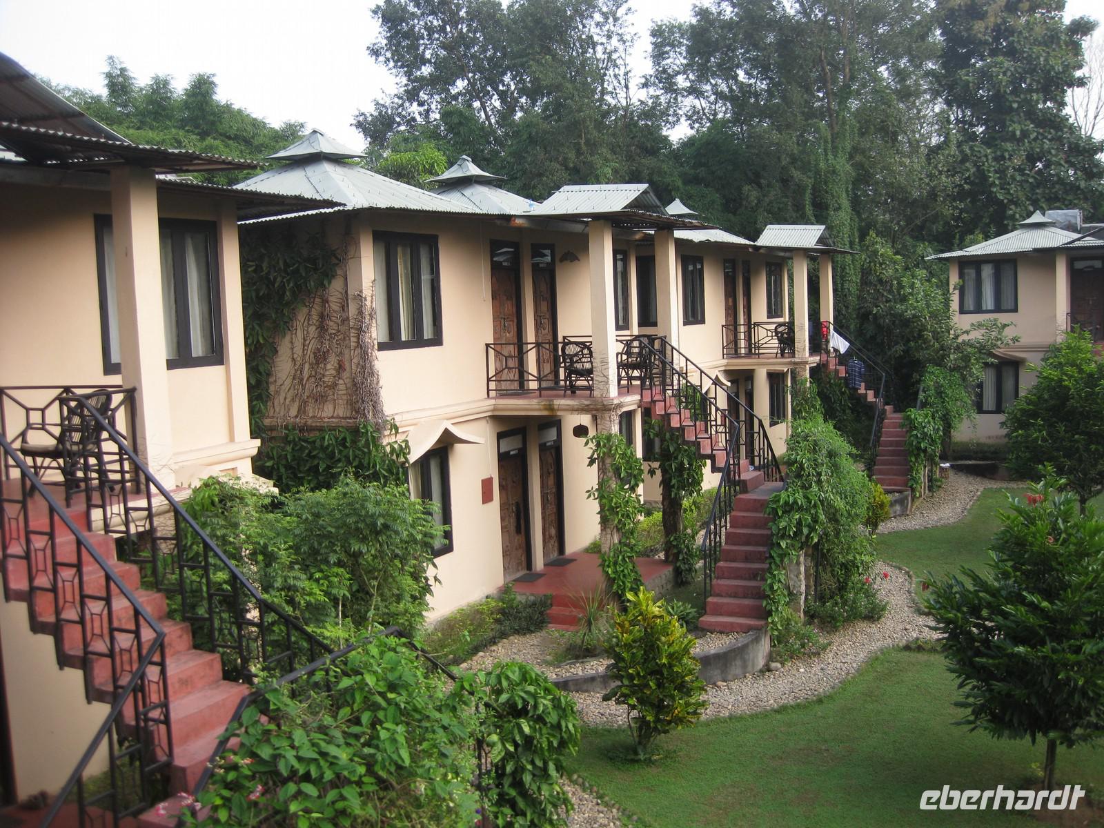Am frühen Nachmittag erreichen wir unser Hotel "Machan Paradise View" im Chitwan Nationalpark. Wir werden schon erwartet und mit Kaffee und Tee empfangen. Wir nehmen schnell unsere Zimmer in Besitz, die sich in Steinbungalows mitten im Grünen befinden und gehen zum Mittagessen.