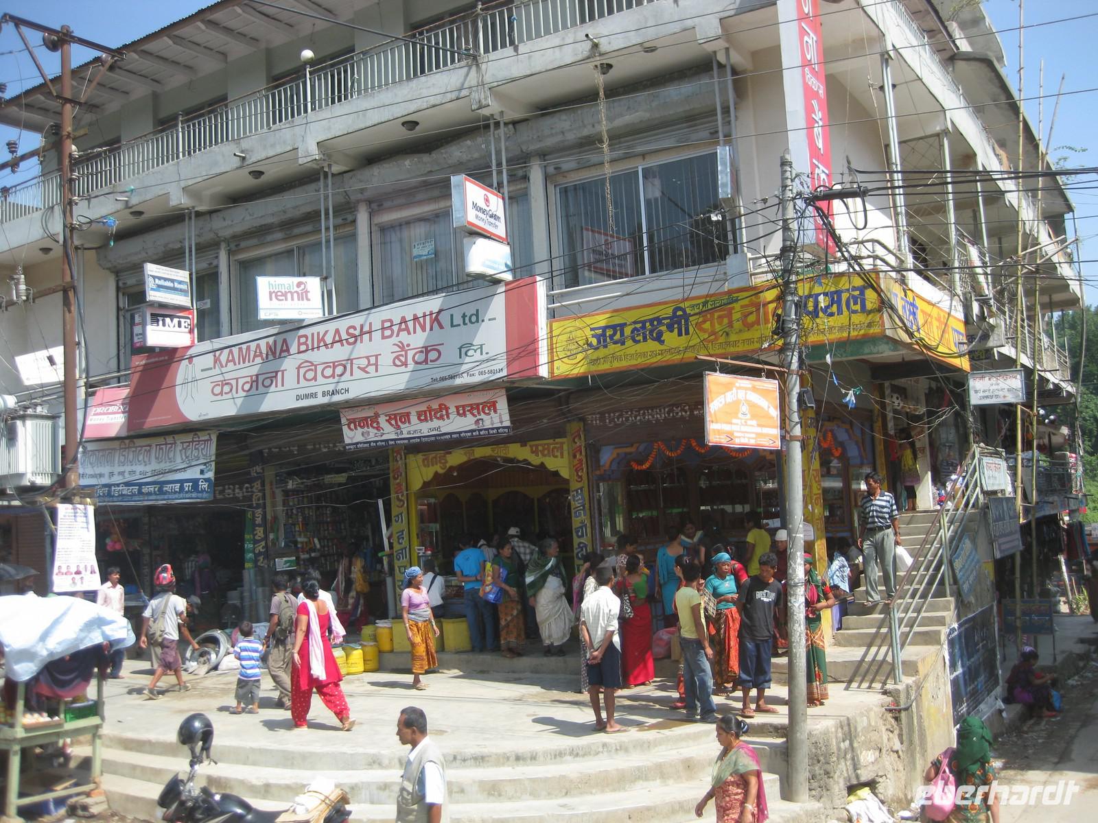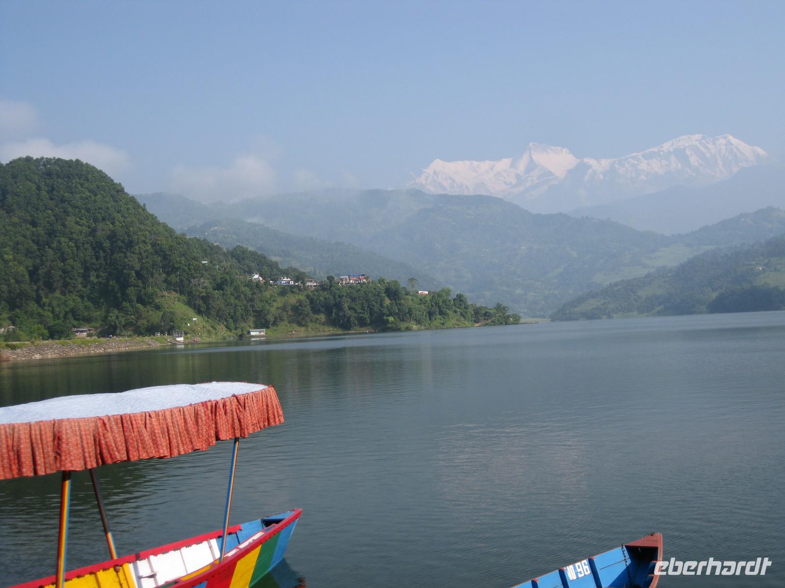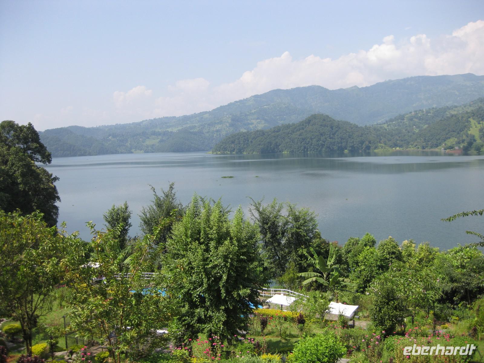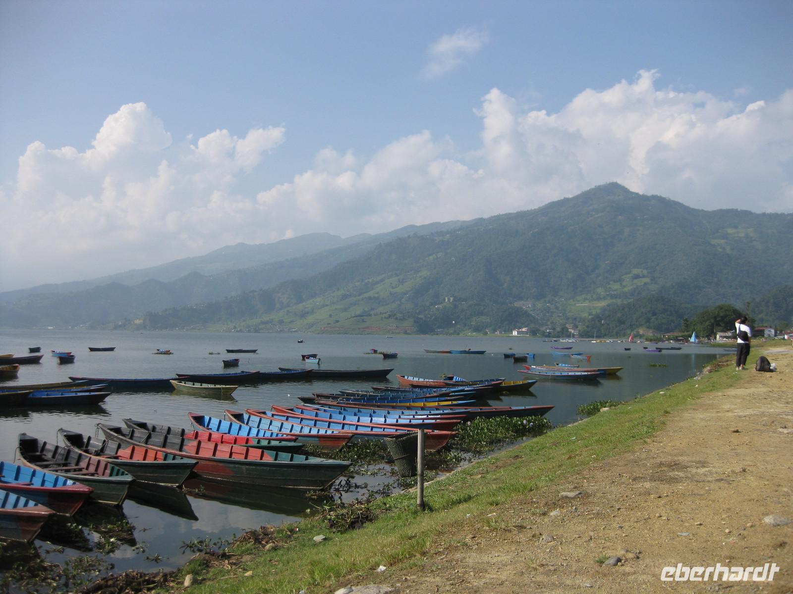 Am Nachmittag erreichen wir Pokhara, eine größere, aber wesentlich ruhigere Stadt. Hier treffen sich Touristen aus aller Welt, die zu ihren Touren von hier aus in die Berge aufbrechen. Hier finden sie alles vor, was sie dafür brauchen, Hotels, einfache Unterkünfte, Restaurants, Trekkingläden, Reisebüros, Souvenirshops .... Wir machen einen kurzen Stopp bevor wir an den Begnas Lake in unser Resort fahren und nehmen etwas vom Flair auf.