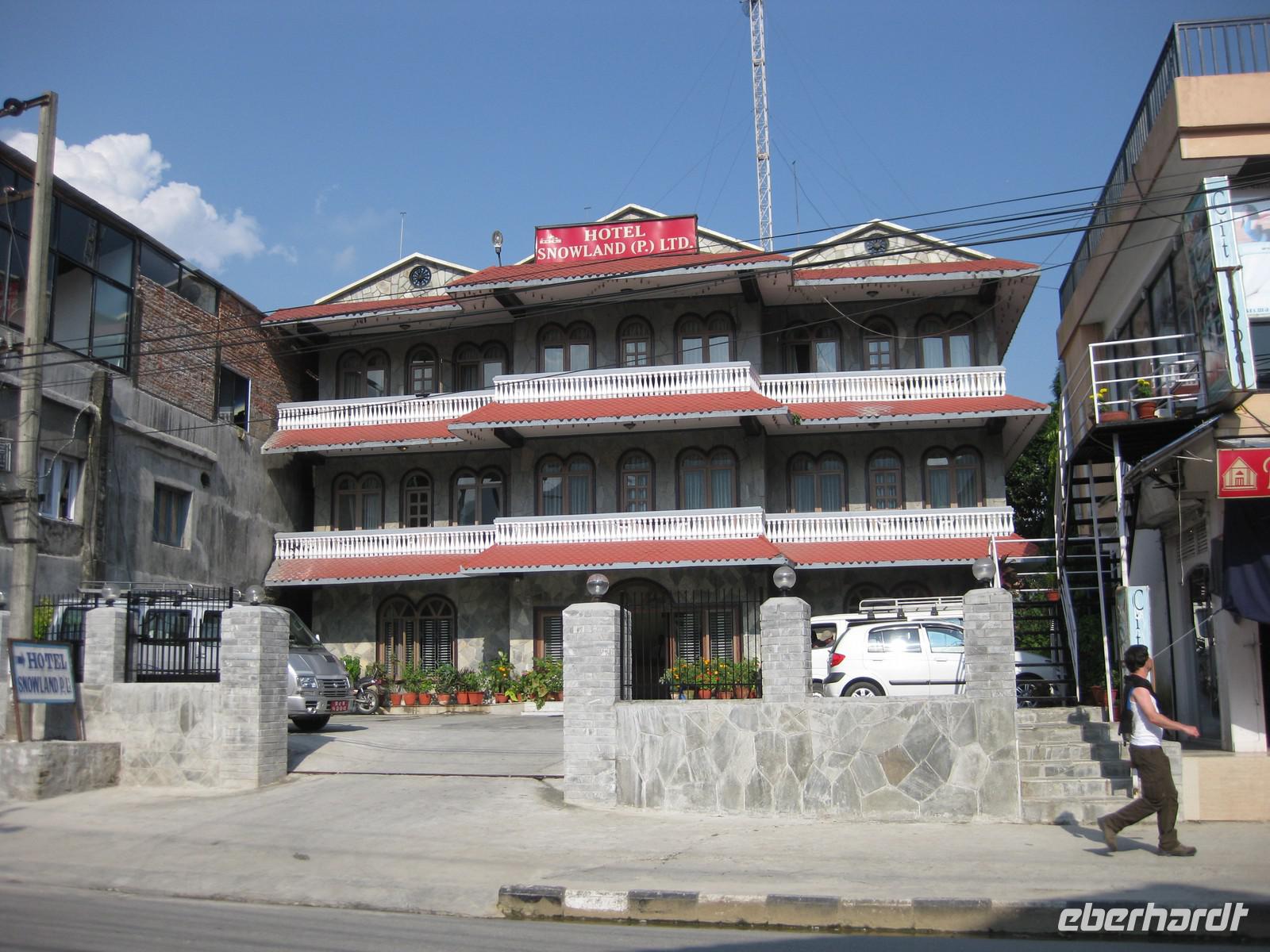 Auf dem Flug können wir den höchsten Berg der Welt, den Mont Everest, sehen. Ein tolles Erlebnis. Die Einreisekarten für Nepal haben wir schon ausgefüllt bevor wir in Kathmandu landen. Trotzdem dauert es bei der Einreise auf dem Flughafen von Kathmandu recht lange. Nach ca. einer Stunde sind wir alle durch die Passkontrolle. Unser Gepäck ist auch da und unser örtlicher Reiseleiter K.C. für Nepal erwartet uns schon. Er begrüßt uns und wir fahren gleich durch die Stadt zum Hotel „Tibet International", ein sehr schönes Haus. Dort fühlen wir uns sehr wohl.