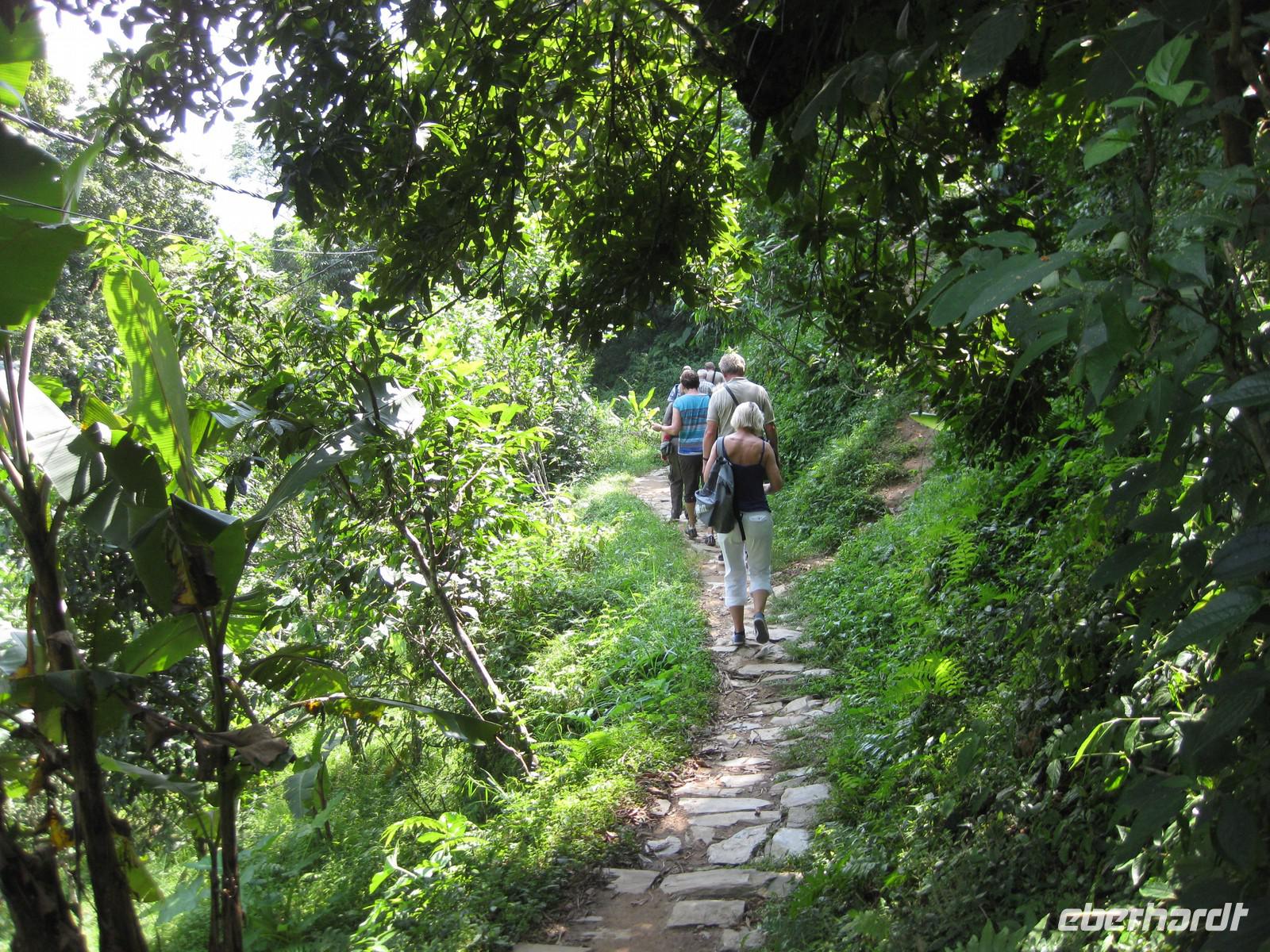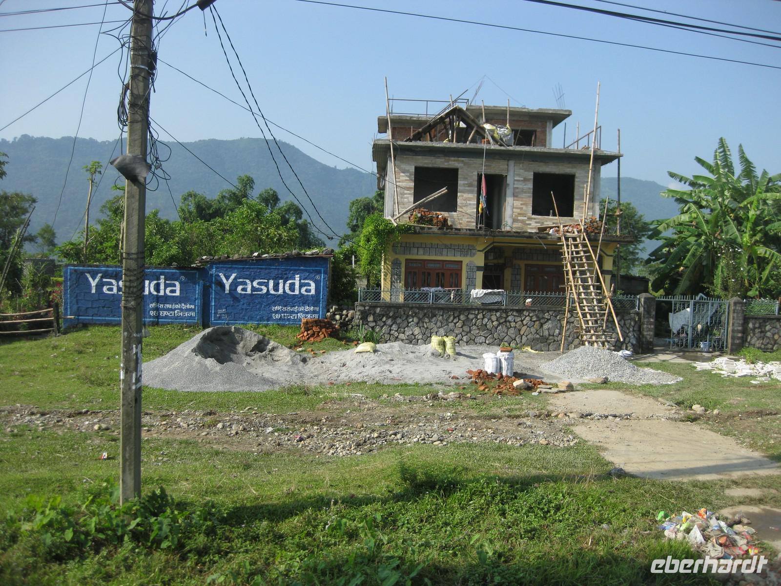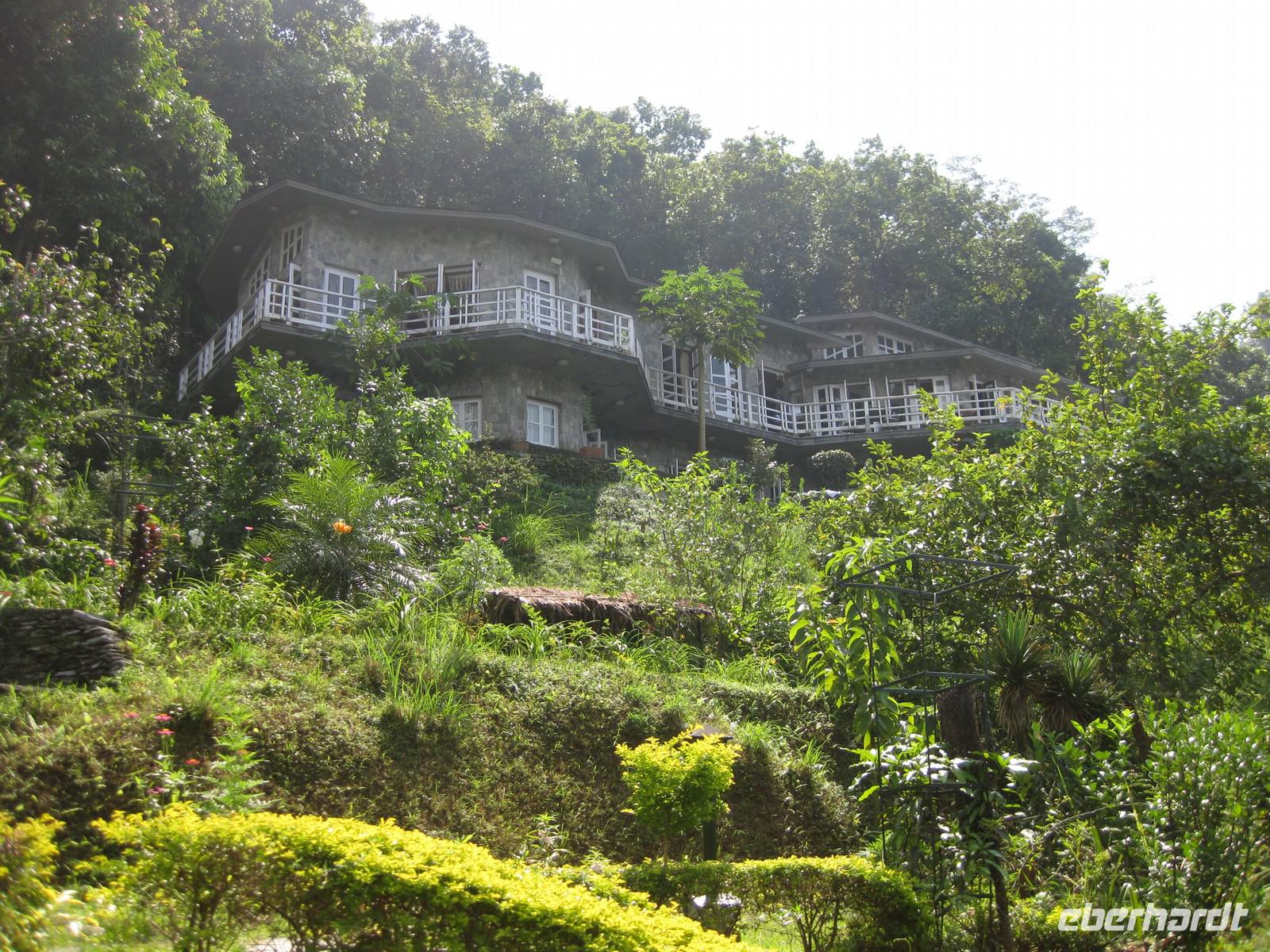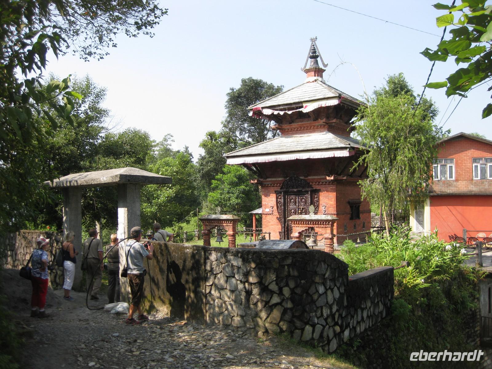 Nach einem tollen Frühstück auf der Terrasse des Restaurants vom „Begnas Lake Resort" starten wir mit K.C. zu einer kleinen Wanderung in die Umgebung des Resorts. Wir bestaunen die Pflanzen und Blumen und wir genießen die immer besser werdende Sicht auf die Berge. Wir spazieren durch kleine Dörfer und können das Leben hier auf dem Land sehen. Wir besuchen einen kleinen Tempel und rasten in einem kleinen Cafe, wo es selbst angebauten Kaffee zu trinken gibt. Und wir können den Kaffee auch als Souvenir mit nach Hause nehmen. Wir besuchen ein kleines Hotel, das uns die Besitzer ganz stolz zeigen. Von da aus haben wir einen herrlichen Rundblick auf die Umgebung. Gegen Mittag sind wir wieder im Hotel zurück. Den Nachmittag verbringen wir im Resort und genießen die Annehmlichkeiten. Der Pool wird auch ausprobiert.