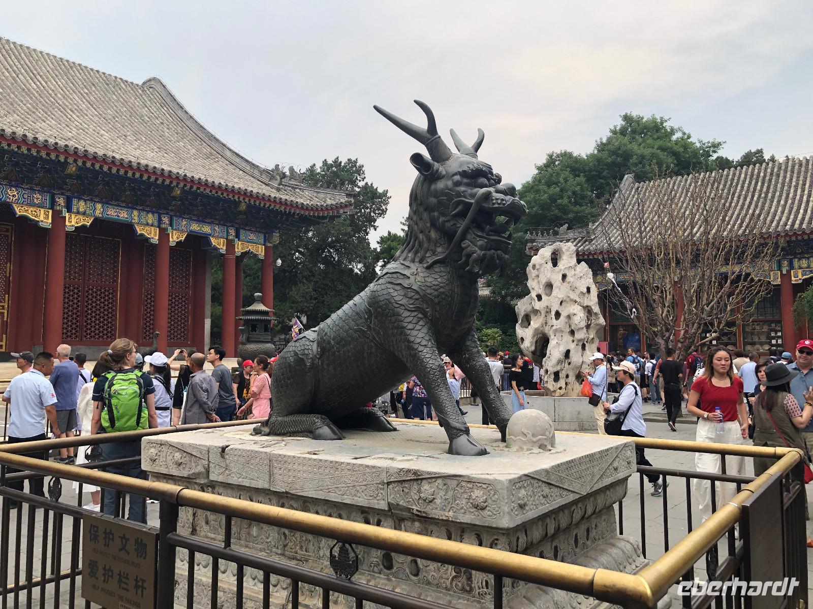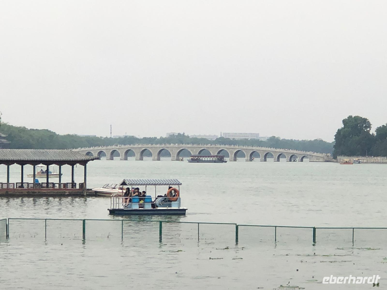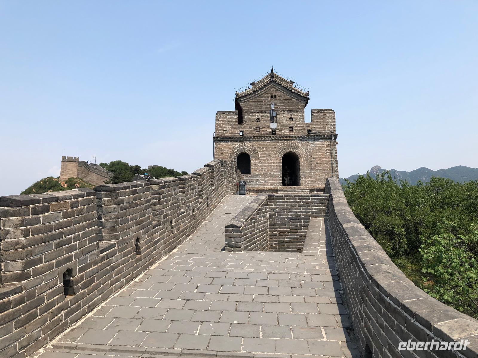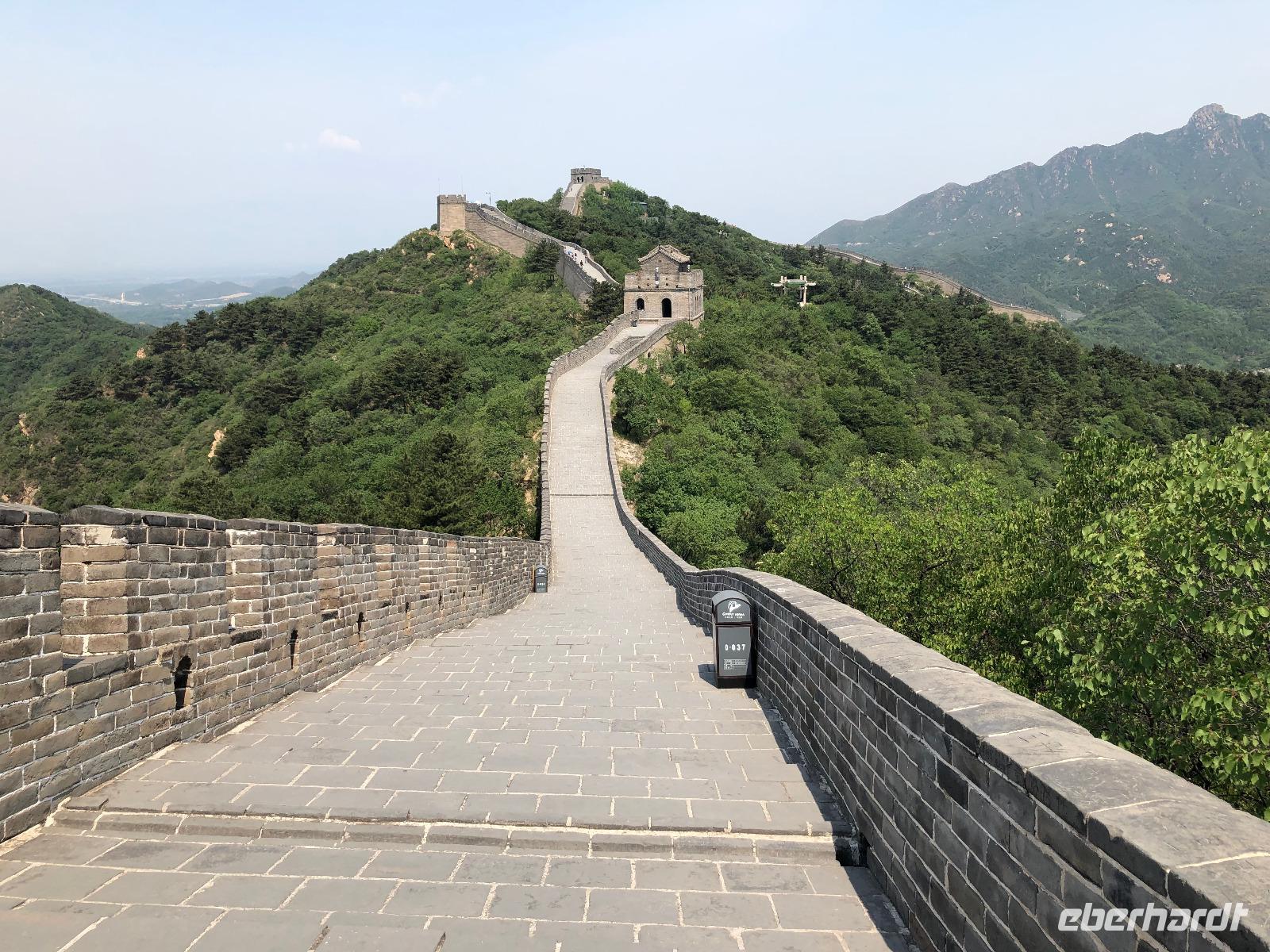 Der heutige Tag führte uns in nordwestliche Richtung aus Peking hinaus. Unser Ziel war ein restauriertes Teilstück der Großen Mauer bei Badaling, etwa 75 Kilometer von unserem Hotel entfernt. Dabei passierten wir die prosperierenden Vorstädte der Metropole Peking und sahen die vielfältigen Bautätigkeiten, welche in Zusammenhang mit der Winterolympiade 2022 standen. Reichlich anderthalb Stunden später erreichten wir den touristisch aufgearbeiteten Abschnitt der Chinesischen Mauer bei Badaling. Es gehört zu einem Teilstück von knapp 600 Kilometer Länge, welches sich in einem guten bis sehr guten Zustand befindet. Über die Gesamtlänge gibt es immer wieder neue Erkenntnisse, aus einstmals 2.500 Kilometern sind neuesten Forschungen zu Folge über 21.000 Kilometer geworden. Je nach Betrachtungswinkel und Einbeziehung natürlicher Barrieren sowie geschichtlicher Epochen. Das Teilstück, was wir besichtigten, gab uns eine gute Vorstellung davon, wie das System aus Mauern, Wachtürmen und Signalfeuern im Altertum vor kriegerischen Überfällen schützen konnte. Trotz der recht hohen Temperaturen, die heute herrschten, erklommen wir die sich den Bergkamm entlang schlängelnde, unendlich scheinende Mauer und wanderten auf ihr ein großes Stück zu Fuß entlang. Es war ein beeindruckendes Erlebnis und ein Zeugnis großen menschlichen Willens, etwas Derartiges in über zweitausendjähriger Bauzeit in die Landschaft zu setzen. Nach dem Mittag begann unsere Rückfahrt nach Peking, wir wollten als nächstes den kaiserlichen Sommerpalast besichtigen. Die sich auf 290 Hektar erstreckenden Palastanlagen, welche mehrfach zerstört und wiederaufgebaut wurden, waren einst ein Geschenk des Kaiser Qianlong an seine Mutter. Spätere Kaisergenerationen haben sich insbesondere in den schwül-heißen Sommermonaten in das Anwesen am Kunming-See zurückgezogen, welches seit 1998 Weltkulturerbe ist und darüber hinaus ein Kleinod chinesischer Architektur und Gartenbaukunst. Wir spazierten vom Osttor am Ufer des Kunming-Sees entlang, besichtigten den über 700 Meter langen Wandelgang und das Mamorboot, bevor wir den Sommerpalast wieder verließen. Letztes Ziel des heutigen Tages war der Olympische Park von 2008, mit dem berühmten „Vogelnest" (Olympiastadion), der olympischen Schwimmhalle und den ersten Neubauten für die Spiele 2022. Nach einem stärkenden Abendessen erreichten wir wieder unser Hotel und ließen den Abend gemütlich ausklingen.
