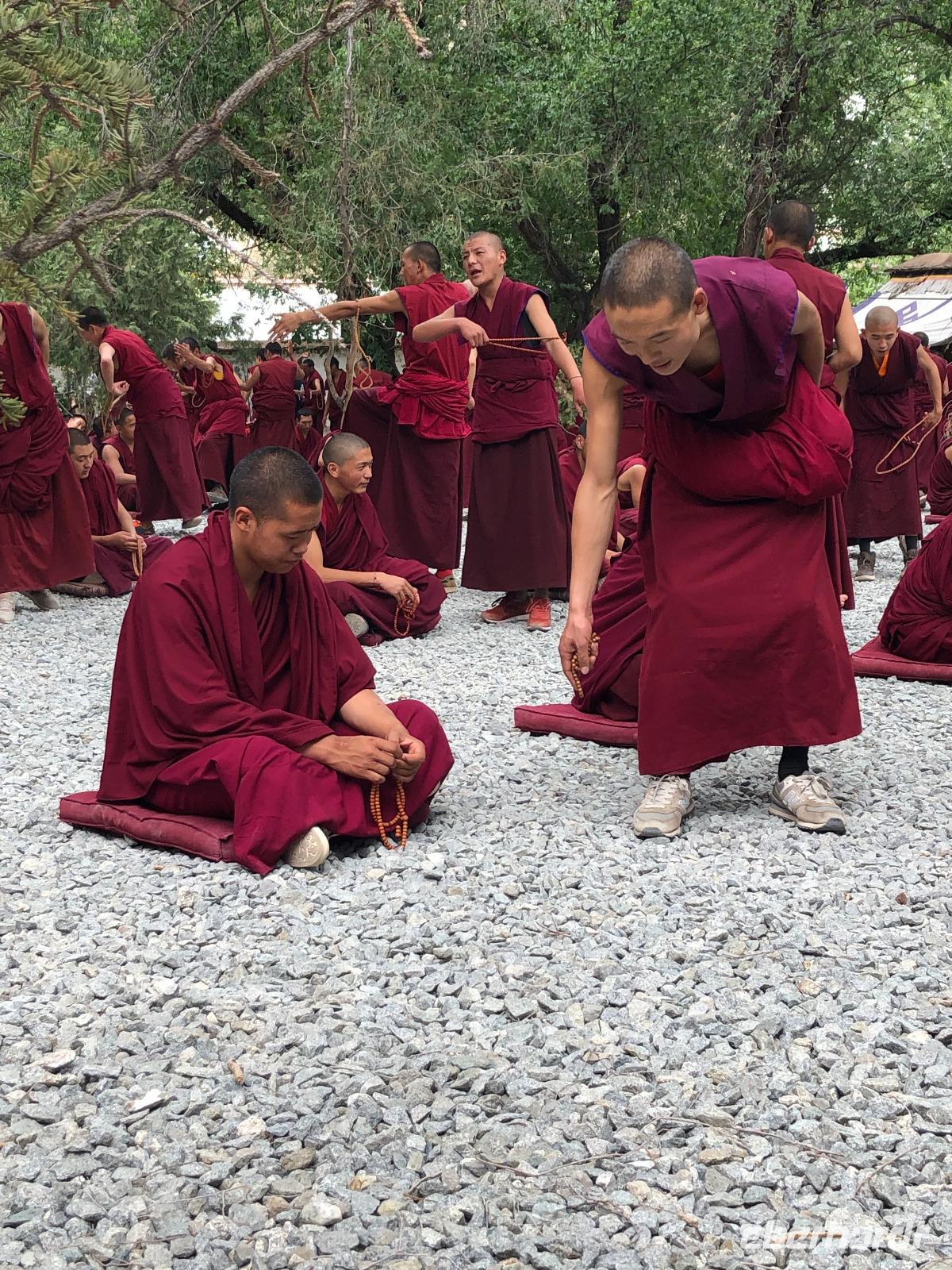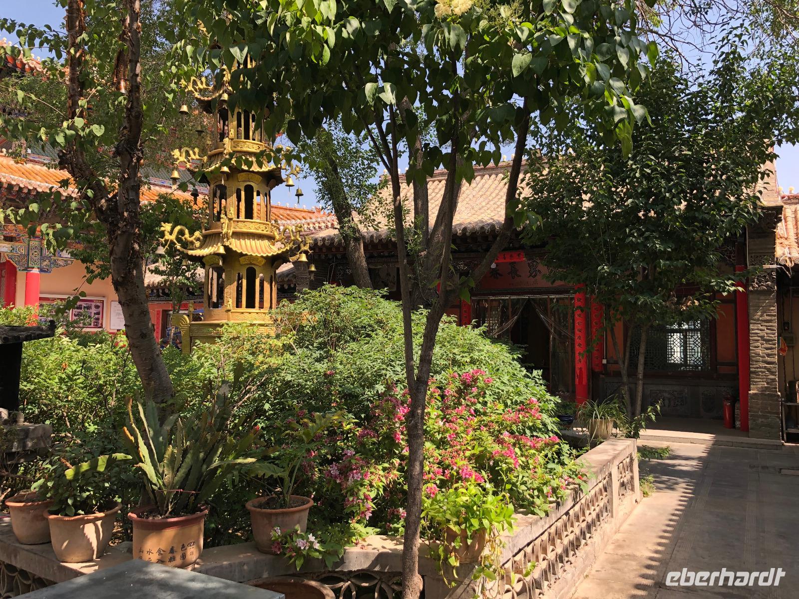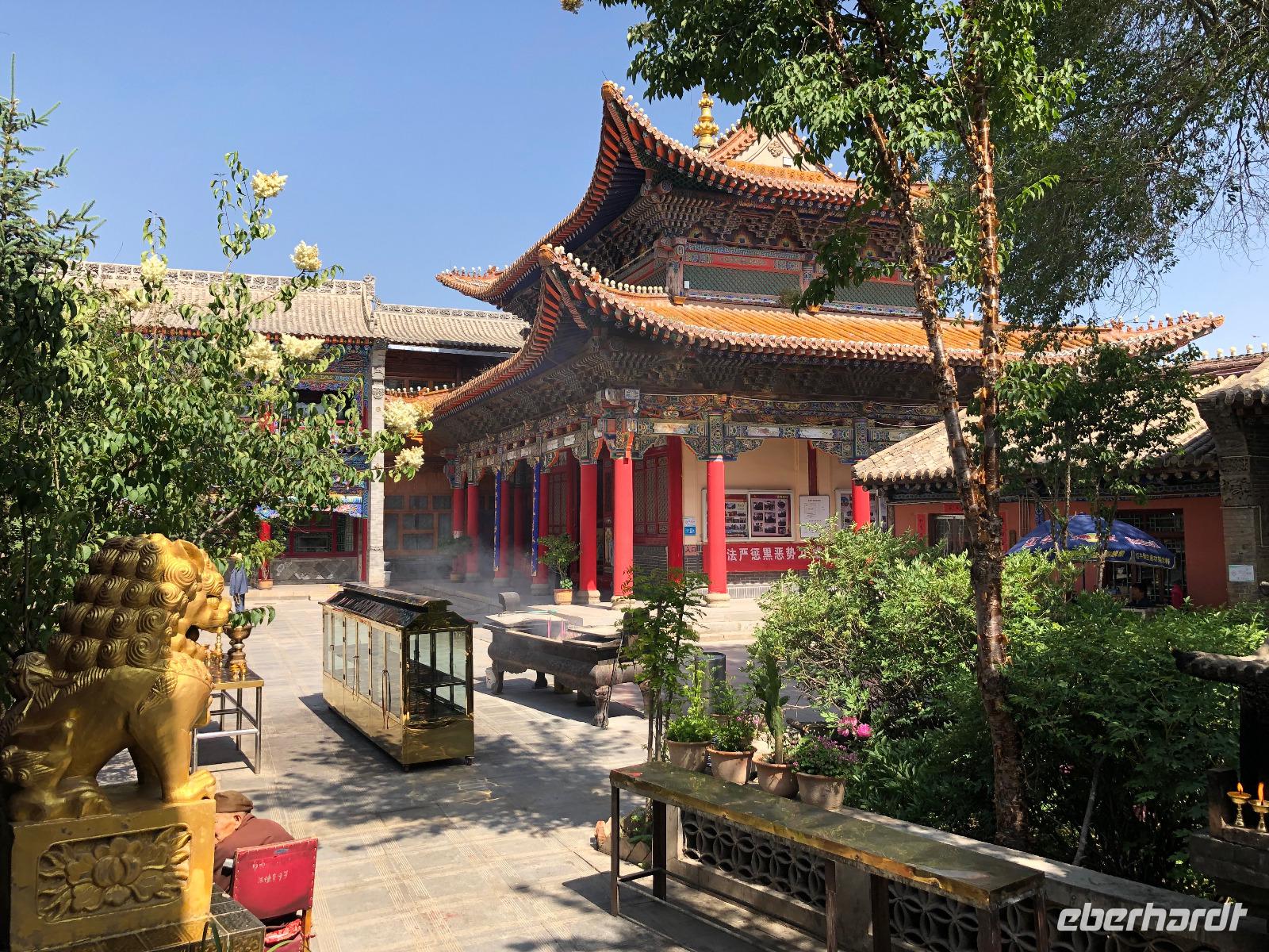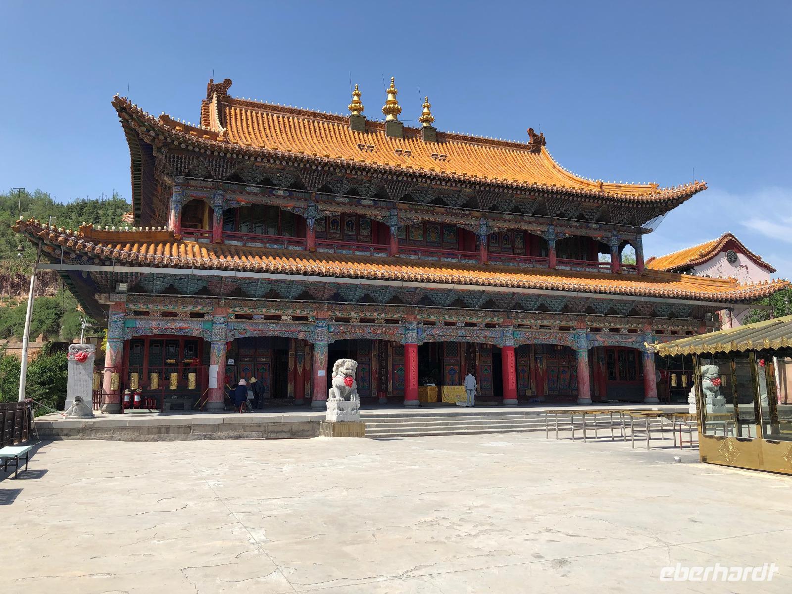 Der heutige Tag stand ganz im Zeichen einiger der berühmtesten buddhistischen Klöster Tibets. Das etwa zehn Kilometer westlich von Lhasa gelegen Kloster Drepung war unsere erste Station an diesem Tag. 1416 gegründet und lange Zeit Sitz des Dalai Lama, bevor dieser in den Potala-Palast zog, hatte es immer eine bedeutende Rolle in der tibetischen Geschichte gespielt. Dabei standen die Drepung-Mönche nicht immer auf Seiten der Tibetischen Regierung, es gab immer wieder Auflehnung gegen die Politik des Dalai Lama. Von den 10.000 Mönchen, die das Kloster einst beherbergte, sind heute nur noch etwa 450 übriggeblieben. Wir erkundeten die weitläufigen Klosteranlagen und ließen uns von „Alex" die religiöse Bedeutung der Statuen, Bilder und Reliquien ausführlich erklären. Auch wenn wir nur einen Bruchteil der Namen, Zahlen und Titel im Gedächtnis behalten konnten, ergab das Gesamtbild einen guten Einblick in die Bedeutung des Klosters. Im angrenzenden Restaurant ließen wir uns tibetische Momos, mit Gemüse gefüllte Teigtaschen, schmecken. Freundliche Tibeter am Nachbartisch hatten sie spendiert. Nach der Mittagspause besuchten wir das nahegelegene Kloster Nechung, welches bis 1959 das Orakel beherbergte, welches in wichtigen Staatsangelegenheiten vom Dalai Lama konsultiert wurde. Den Abschluss unserer Klostertour bildete das Sera-Kloster, welches nur ein paar Kilometer außerhalb Lhasa beheimatet ist. Nach wechselvoller Geschichte, mit teilweise kriegerischen Auseinandersetzungen, wurde das Kloster seit den Achtziger Jahren des letzten Jahrhunderts schrittweise wieder restauriert. Seine ehemalige Bedeutung als Sitz philosophischer Fakultäten erlangte es allerdings nie wieder, auch wenn man heute den jungen Mönchen beim täglichen Debattieren im Klosterhof zuschauen kann. Wer um 15 Uhr vor Ort ist, kann dem Spektakel beiwohnen. Nach einem kurzen Zwischenstopp in unserem Hotel spazierten wir zum Abendessen in die Altstadt. Das Lokal bot uns eine Mischung aus europäischer, tibetischer und nepalesischer Kost, was zu einem bunten Potpourri an Speisen führte. Der anschließende Bummel durch die Altstadt führte uns zu guter Letzt in die Nähe des Potala-Palastes. Da die Dunkelheit bald hereinbrach und wir uns das Schauspiel des illuminierten Palastes nicht entgehen lassen wollten, blieben wir vor Ort. Mit vielen hundert Schaulustigen und Familienausflüglern genossen wir die musikalisch untermalten Wasserspiele auf dem Platz vor dem Palast. Als dann die Lichter an der Außenfassade des Palastes endlich angingen, machte sich eine friedvolle Atmosphäre breit, der sich kaum ein Zuschauer entziehen konnte. Nach etlichen geschossenen Fotos und gedrehten Videos beendeten wir unser abendliches Intermezzo und gelangten mit den allseits verfügbaren Rikschas zum Hotel zurück. In der hell erleuchteten Beijing-Road flanierten die Tibeter und ihre Gäste, genossen den lauen Sommerabend und gaben sich der Wochenend-Zerstreuung hin.