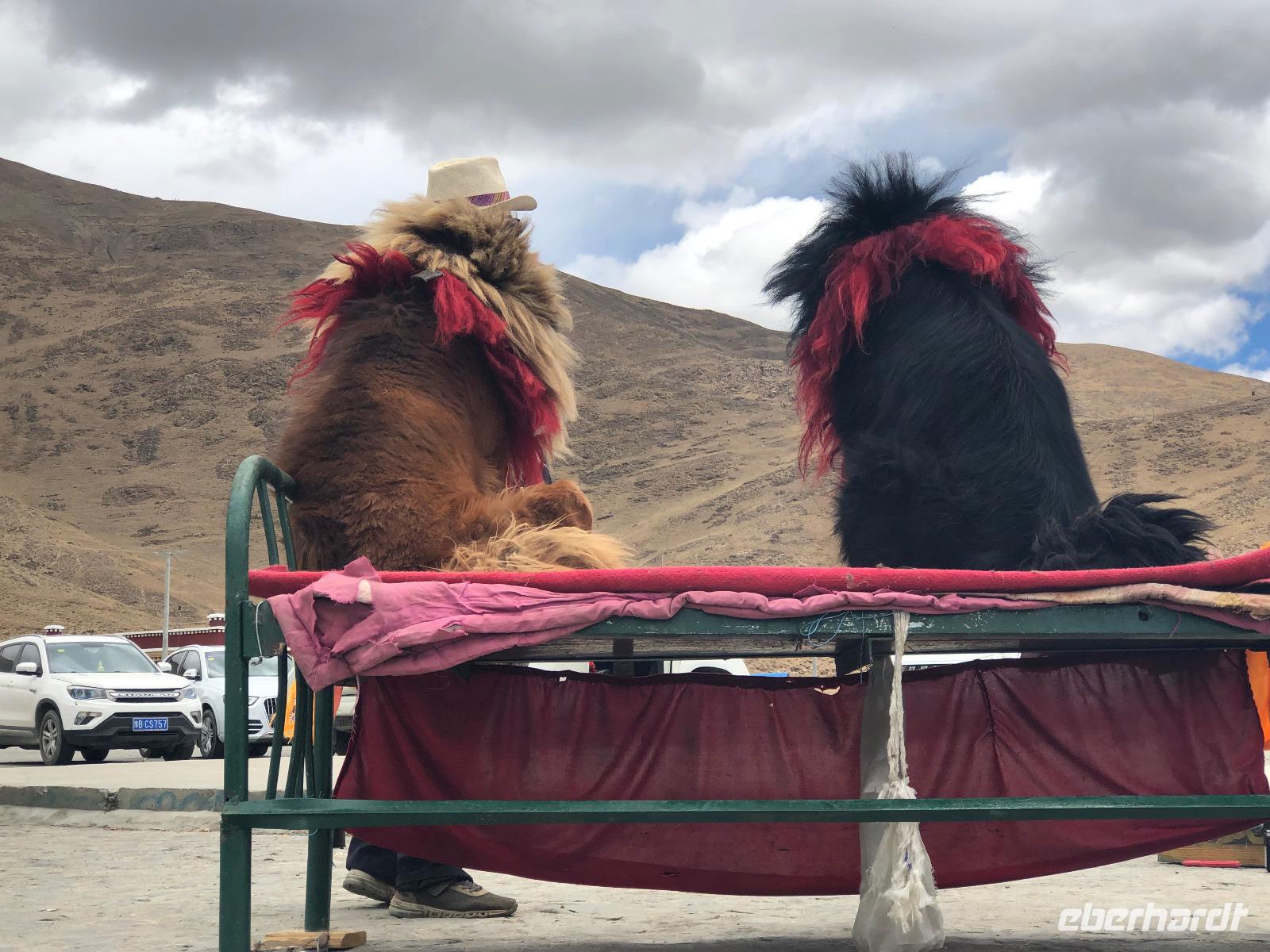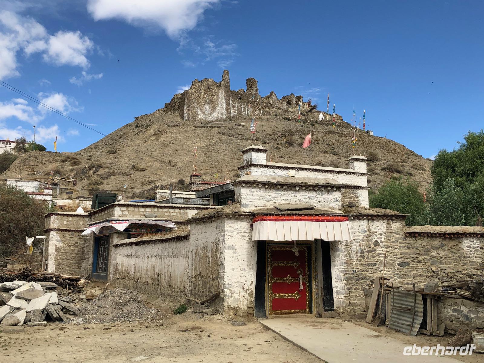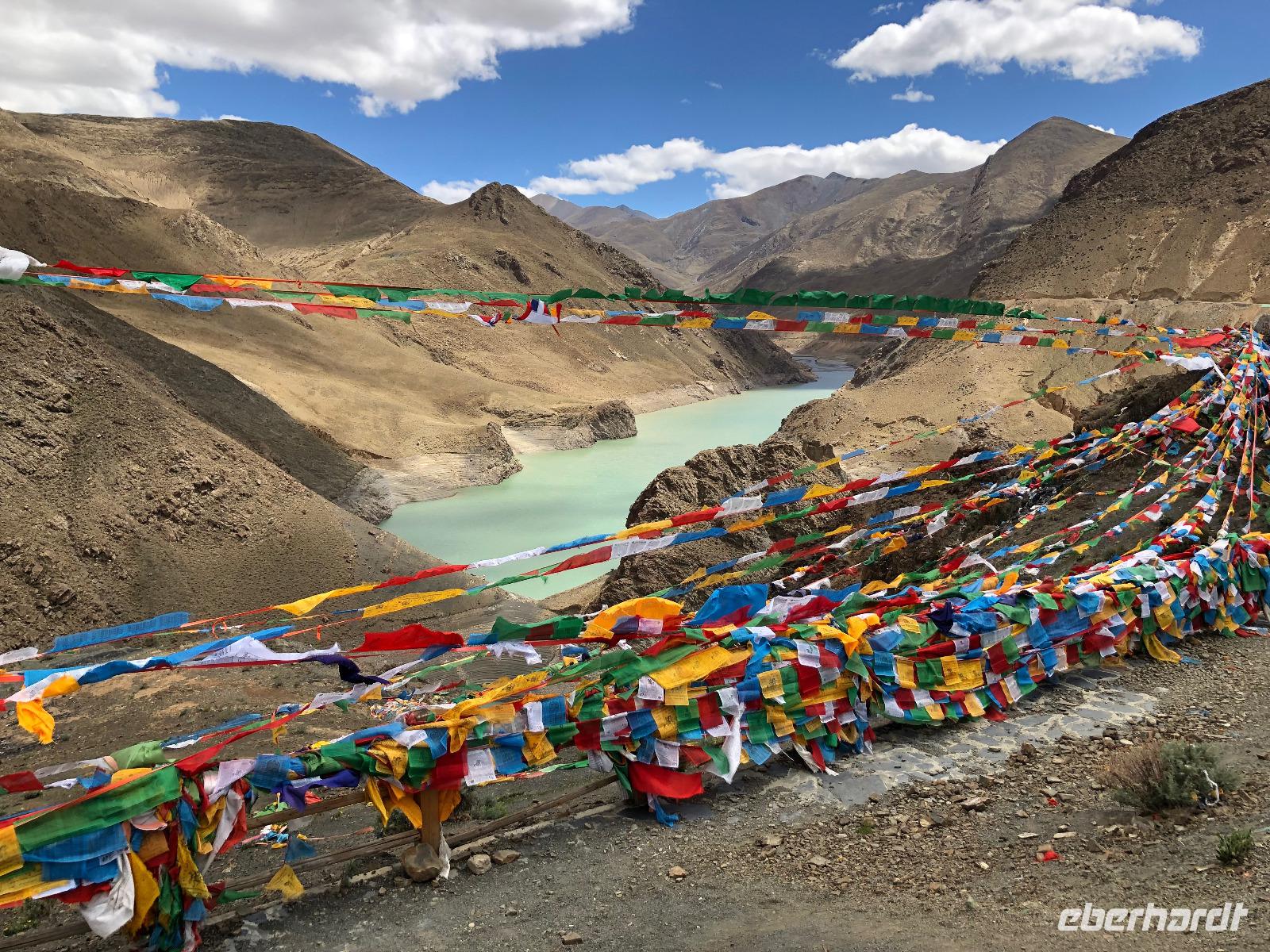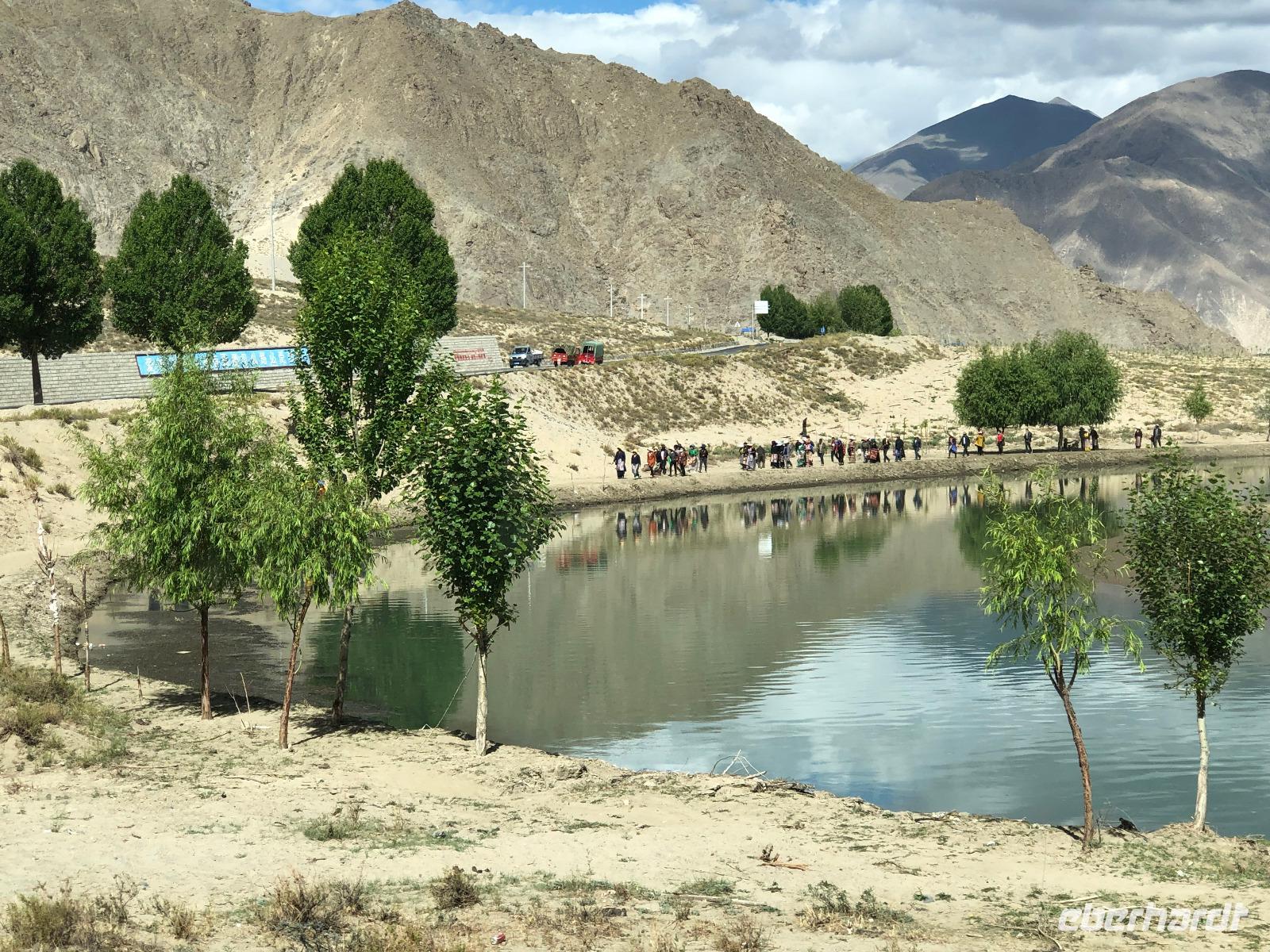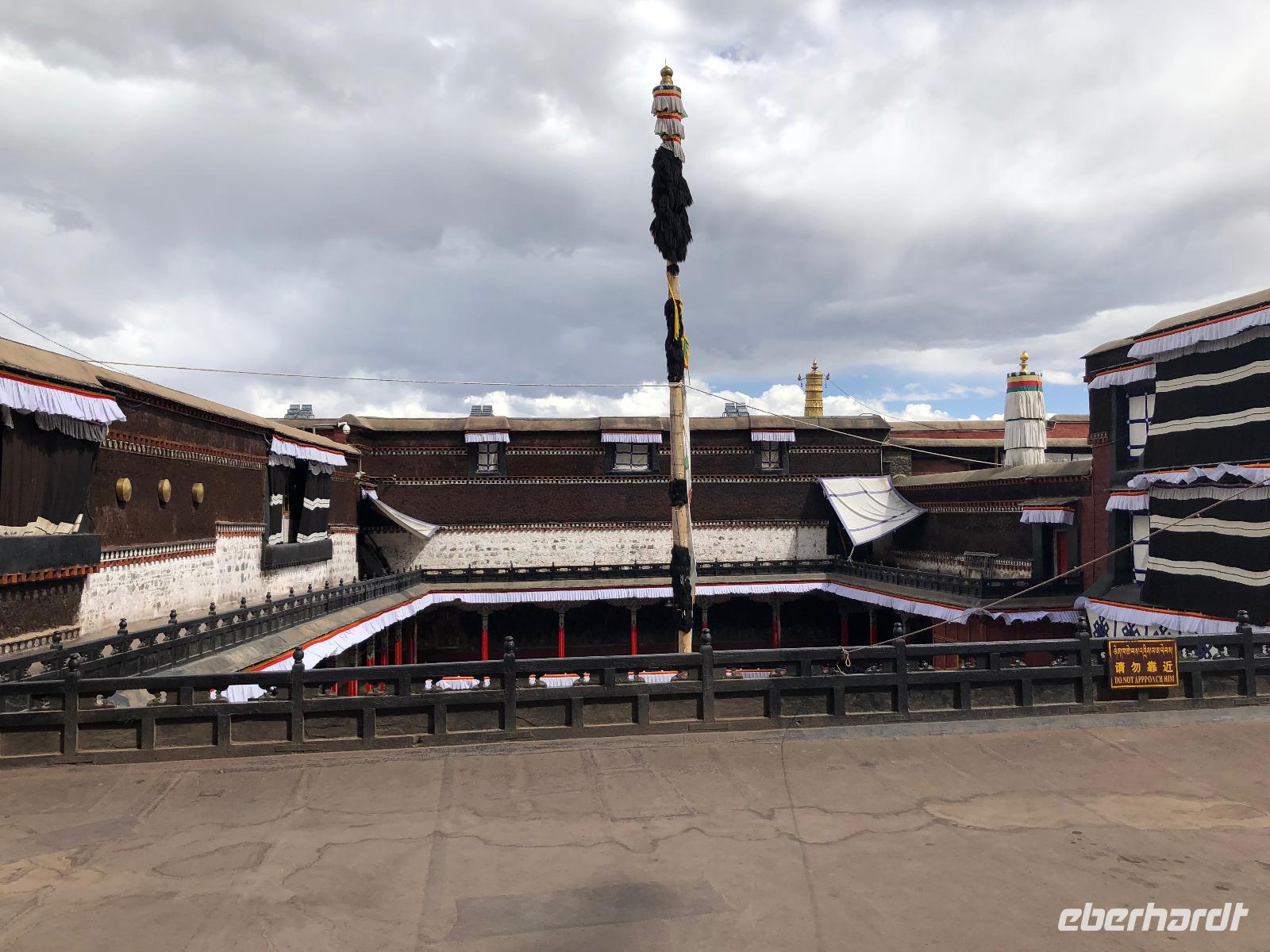 Am heutigen Reisetag sollte die atemberaubende Natur im Mittelpunkt stehen. Wir verabschiedeten uns nach dem Frühstück vorerst von Lhasa und begaben uns tiefer in die tibetische Bergwelt hinein. Nach etwas mehr als anderthalb Stunden Fahrt hielten wir im Dorf Gangdui, wo wir bei einem kleinen Spaziergang und einem Besuch bei einem Bauern das dörfliche Leben kennenlernten. Wir probieren Buttertee, erhielten viele Informationen und konnten dabei einen kleinen Einblick in die Lebensverhältnissen eines typischen tibetischen Dorfes bekommen. Zurück im Bus bekamen wir kurze Zeit später regelrechte Pilgerströme zu Gesicht, die sich an eine fünfstündige Umrundung eines in der Nähe gelegenen heiligen Berges machten. Beeindruckend, aber auch etwas befremdlich. Weiter ging es immer tiefer bzw. höher in das Gebirge hinein. Um die Mittagszeit hielten wir erneut, dieses Mal oberhalb einer Pass-Straße mit schönem Blick auf den Yaluzangbu-Fluss. Das an solchen Plätzen gern auch der eine oder andere Yuan verdient werden will, war nur folgerichtig. Insbesondere das Fotografieren stand hierbei im Vordergrund. Touristen auf/mit ruhig gestellten Yaks oder Tibetischen Mastiffs, die mit Sonnenbrillen verschönert alsbald diverse Instagram-Accounts schmücken würden. Skurril, Makaber, Tierquälerei. Verantwortungsbewusste Reisende wissen, was sie zu tun haben. Kurze Zeit später erreichten wir den 4998 hoch gelegenen Khamba-La-Pass, von wo aus wir einen wunderschönen Blick auf den knapp 500 Meter tieferliegenden türkisfarbenen Yamdrok-See hatten. Da das Wetter wunderbar und die Temperaturen angenehm waren, unternahmen wir kurzerhand einen kleinen Spaziergang am Ufer des Skorpion-Sees, wie sein Name auch übersetzt wird. Für die Tibeter gehört er zu den heiligen Seen und wir konnten uns seiner stillen Faszination ebenfalls nicht entziehen. Wir setzten unsere Fahrt in Richtung Gyantse fort und erreichten am frühen Nachmittag den Karo-La-Pass in einer Höhe von 5020 Metern. Tibetische Gebetsfahnen, eine Stupa und der Karo-Gletscher im Hintergrund waren großartige Fotomotive, auch wenn das Atmen in dieser Höhe schon anstrengend wurde. Am Simila-Stausee, den wir wenig später erreichten, flatterten unzählige bunte Gebetsfahnen, welche mit dem wunderschönen See im Hintergrund ebenfalls ein tolles Fotomotiv abgaben. Den letzten Abschnitt unserer Strecke nach Gyantse absolvierten wir dann in einem Stück, so dass wir die knapp 60.000 Einwohner zählende Kleinstadt am frühen Abend erreichten. Nach dem Zimmerbezug und einem stärkenden Abendessen spazierten wir noch in die Altstadt von Gyantse, wo wir den Einheimischen beim Würfeln zusahen, mit ein paar Kindern Fußball spielten und die ruhige und unaufgeregte Atmosphäre des Ortes und der Menschen um uns herum genossen. Die hoch über der Stadt thronende Festung war darüber hinaus im Licht der untergehenden Sonne ein weiteres schönes Fotomotiv.