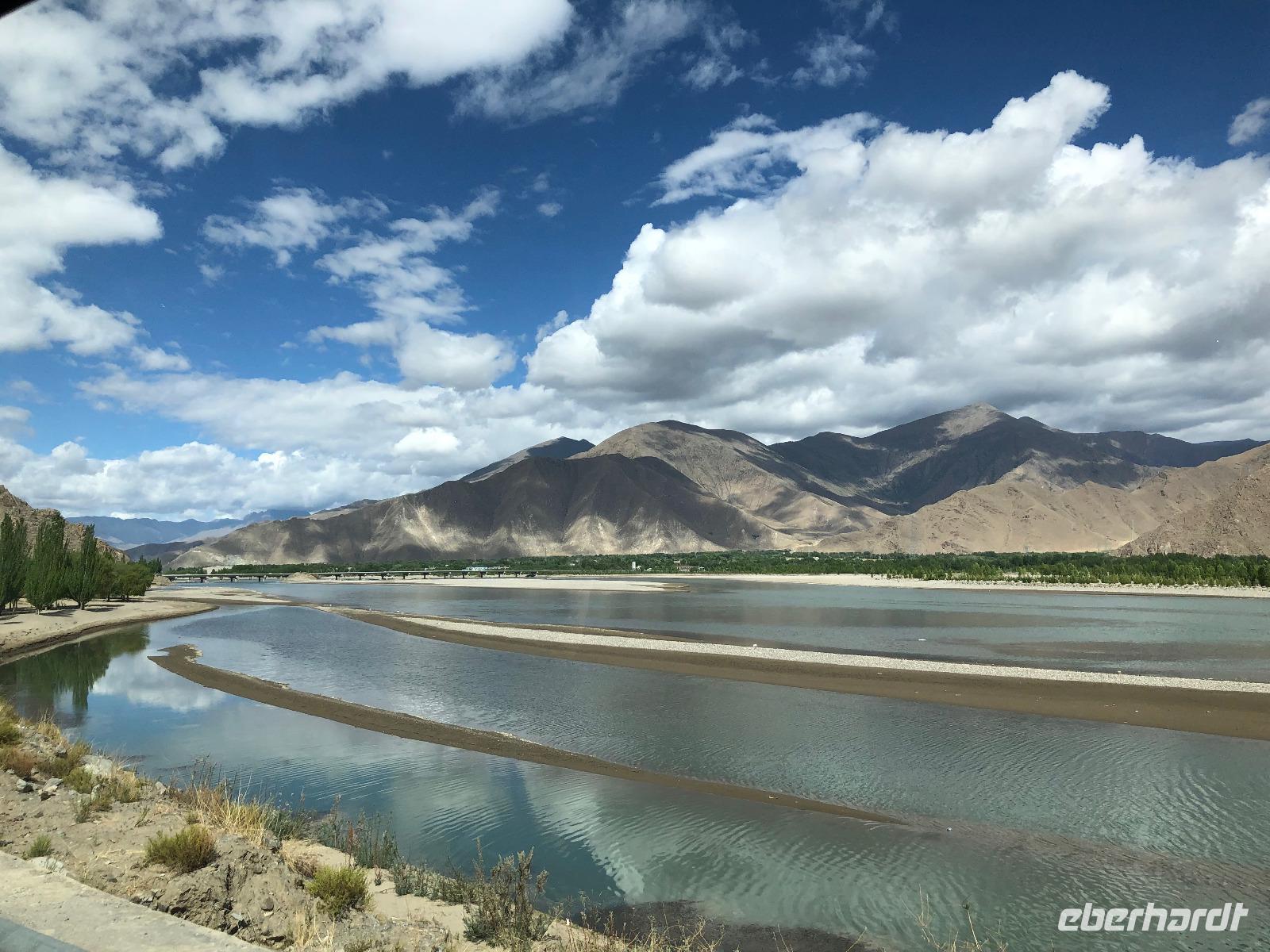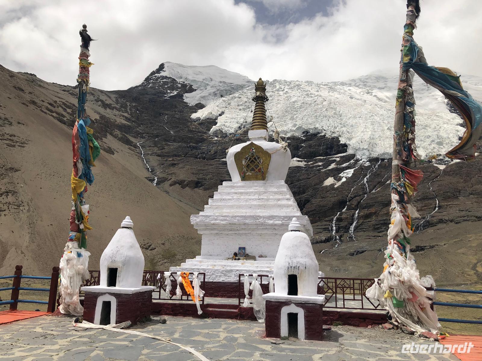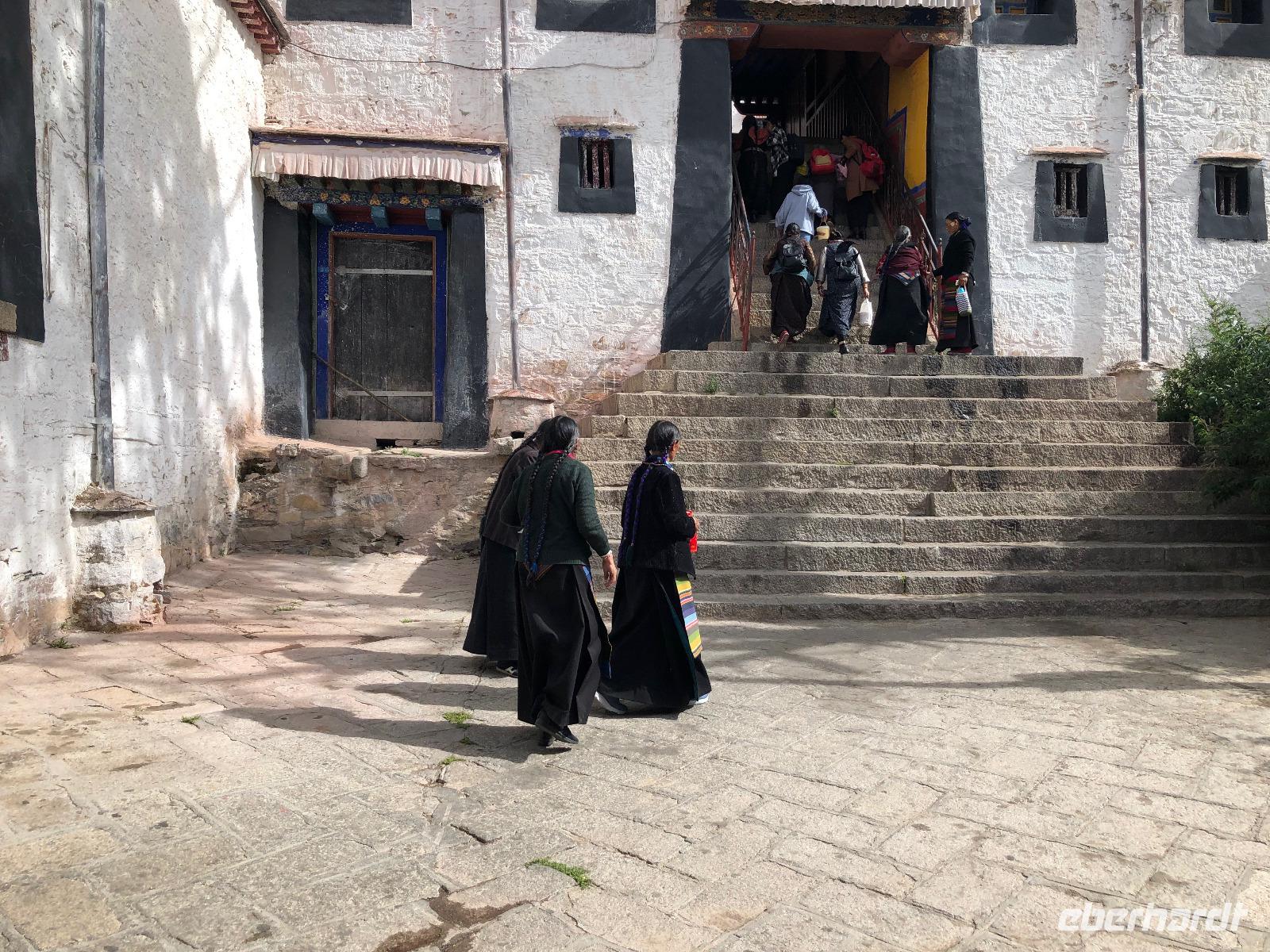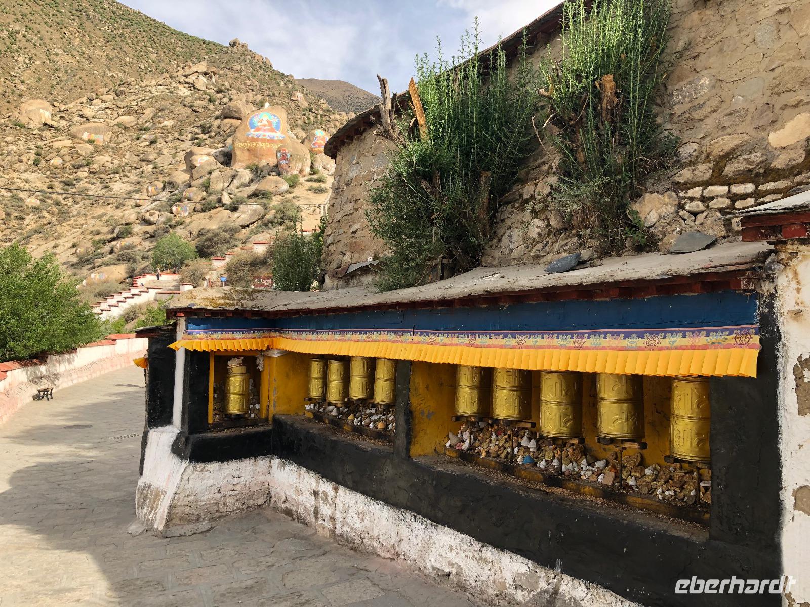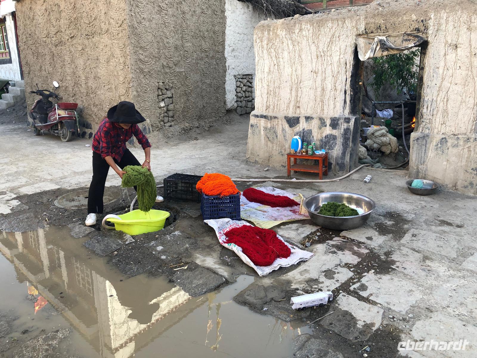 Am heutigen Reisetag sollte die atemberaubende Natur im Mittelpunkt stehen. Wir verabschiedeten uns nach dem Frühstück vorerst von Lhasa und begaben uns tiefer in die tibetische Bergwelt hinein. Nach etwas mehr als anderthalb Stunden Fahrt hielten wir im Dorf Gangdui, wo wir bei einem kleinen Spaziergang und einem Besuch bei einem Bauern das dörfliche Leben kennenlernten. Wir probieren Buttertee, erhielten viele Informationen und konnten dabei einen kleinen Einblick in die Lebensverhältnissen eines typischen tibetischen Dorfes bekommen. Zurück im Bus bekamen wir kurze Zeit später regelrechte Pilgerströme zu Gesicht, die sich an eine fünfstündige Umrundung eines in der Nähe gelegenen heiligen Berges machten. Beeindruckend, aber auch etwas befremdlich. Weiter ging es immer tiefer bzw. höher in das Gebirge hinein. Um die Mittagszeit hielten wir erneut, dieses Mal oberhalb einer Pass-Straße mit schönem Blick auf den Yaluzangbu-Fluss. Das an solchen Plätzen gern auch der eine oder andere Yuan verdient werden will, war nur folgerichtig. Insbesondere das Fotografieren stand hierbei im Vordergrund. Touristen auf/mit ruhig gestellten Yaks oder Tibetischen Mastiffs, die mit Sonnenbrillen verschönert alsbald diverse Instagram-Accounts schmücken würden. Skurril, Makaber, Tierquälerei. Verantwortungsbewusste Reisende wissen, was sie zu tun haben. Kurze Zeit später erreichten wir den 4998 hoch gelegenen Khamba-La-Pass, von wo aus wir einen wunderschönen Blick auf den knapp 500 Meter tieferliegenden türkisfarbenen Yamdrok-See hatten. Da das Wetter wunderbar und die Temperaturen angenehm waren, unternahmen wir kurzerhand einen kleinen Spaziergang am Ufer des Skorpion-Sees, wie sein Name auch übersetzt wird. Für die Tibeter gehört er zu den heiligen Seen und wir konnten uns seiner stillen Faszination ebenfalls nicht entziehen. Wir setzten unsere Fahrt in Richtung Gyantse fort und erreichten am frühen Nachmittag den Karo-La-Pass in einer Höhe von 5020 Metern. Tibetische Gebetsfahnen, eine Stupa und der Karo-Gletscher im Hintergrund waren großartige Fotomotive, auch wenn das Atmen in dieser Höhe schon anstrengend wurde. Am Simila-Stausee, den wir wenig später erreichten, flatterten unzählige bunte Gebetsfahnen, welche mit dem wunderschönen See im Hintergrund ebenfalls ein tolles Fotomotiv abgaben. Den letzten Abschnitt unserer Strecke nach Gyantse absolvierten wir dann in einem Stück, so dass wir die knapp 60.000 Einwohner zählende Kleinstadt am frühen Abend erreichten. Nach dem Zimmerbezug und einem stärkenden Abendessen spazierten wir noch in die Altstadt von Gyantse, wo wir den Einheimischen beim Würfeln zusahen, mit ein paar Kindern Fußball spielten und die ruhige und unaufgeregte Atmosphäre des Ortes und der Menschen um uns herum genossen. Die hoch über der Stadt thronende Festung war darüber hinaus im Licht der untergehenden Sonne ein weiteres schönes Fotomotiv.