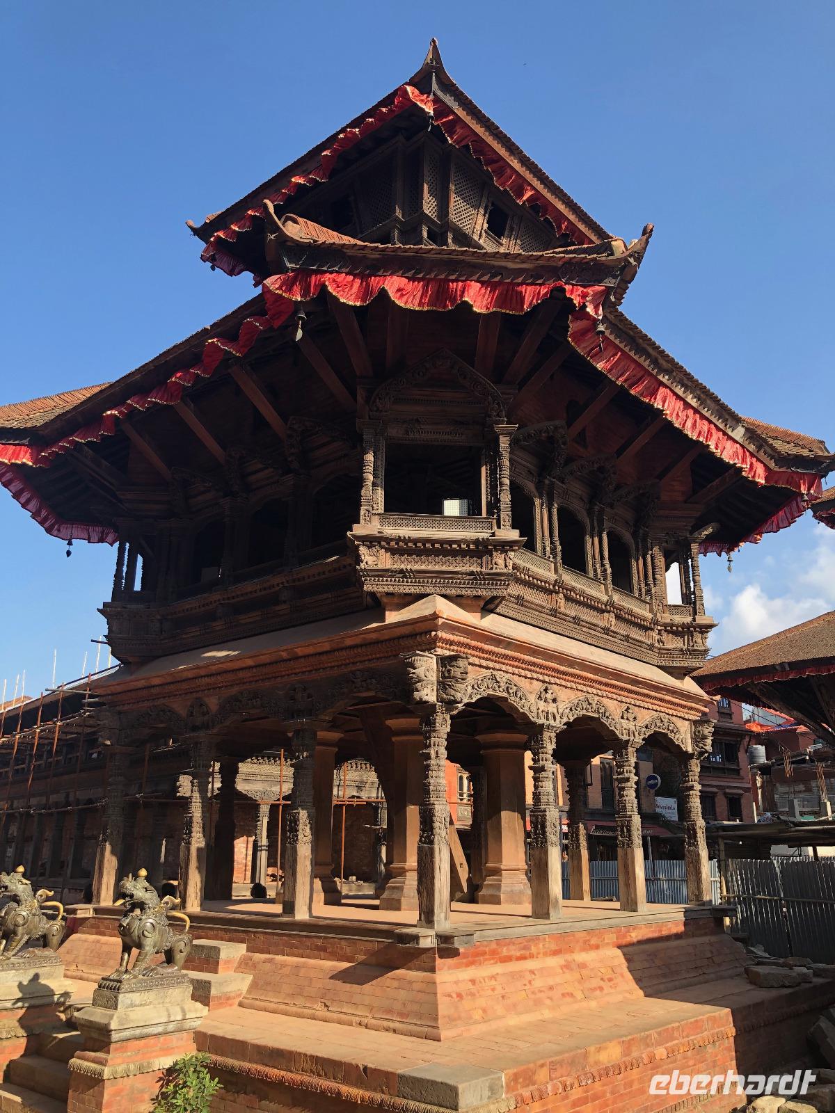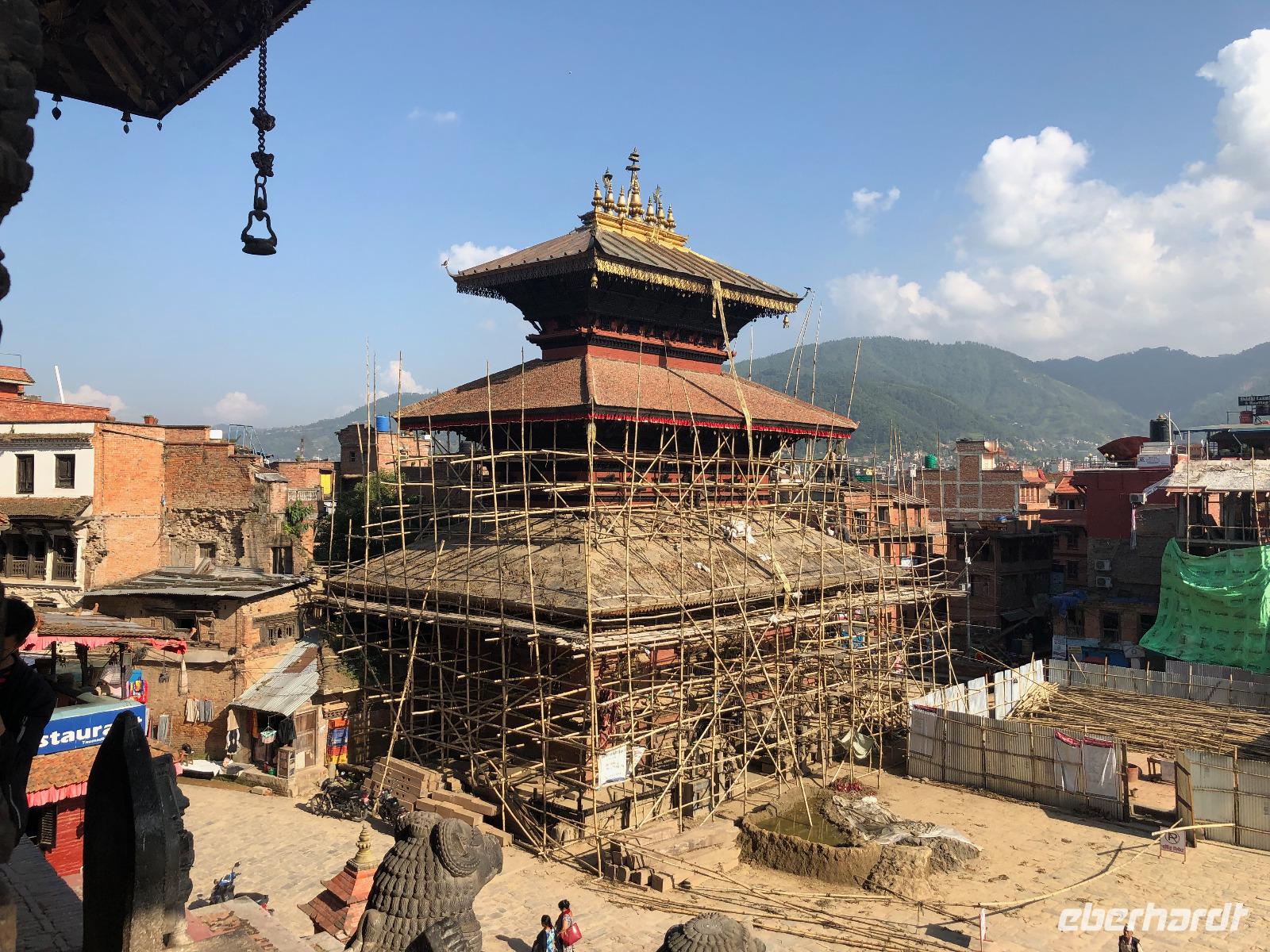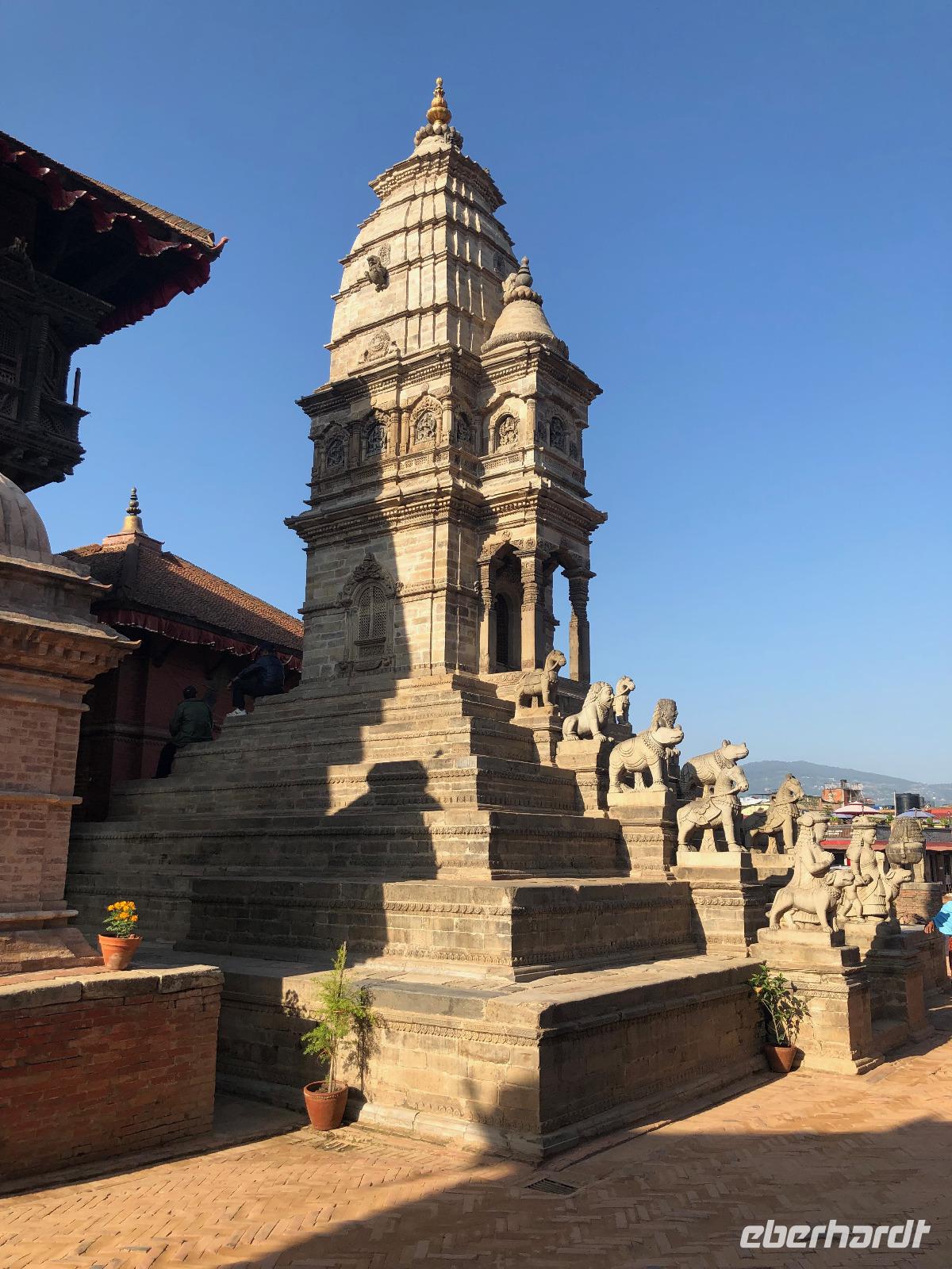 Abschiednehmen ist nie ganz leicht und die Erlebnisse in Tibet und vor allem seine freundlichen, dem Fremden offenherzig gegenüberstehenden Menschen machten es uns umso schwerer. Andererseits begann heute ein neuer Reiseabschnitt, mit neuen Eindrücken und mit einer neuen, weil andersartigen Welt. Nach der knapp einstündigen Fahrt zum Flughafen Lhasa verabschiedeten wir uns ganz herzlich von unserem tibetischen Reiseleiter/Busfahrer-Team, die uns jederzeit sicher befördert und gut informiert durch Tibet gebracht hatten. Die Maschine der Air China, welche uns nach Kathmandu bringen sollte, stand schon bereit und nach dem Durchlaufen der Ausreiseformalitäten, die chinesisch bedingt umfangreich und sehr genau waren, warteten wir am Gate auf das avisierte Boarding. Eine leichte Unruhe machte sich unter den wartenden Fluggästen breit, als immer mehr Servicepersonal am Flieger erschien und die Boardingtime sich in Wohlgefallen auflöste. Da war klar, dass unsere Maschine ein Problem hatte. Wenig später kam dann auch die offizielle Bestätigung, dass es aufgrund technischer Probleme zu einer Verzögerung kommt. Uns schwante Unheil, hatten wir doch noch ein anspruchsvolles Programm auf der Tagesordnung stehen. Eine Stunde und etliche Reparaturversuche später stand fest, dass uns diese Maschine heute nirgendwohin bringen würde. Jetzt war guter Rat teuer. Es gab nur diesen einen internationalen Flug, der Rest ging ins chinesische Kernland. Umbuchen wäre also keine Option gewesen. Wohin auch? Aber man sollte niemals das chinesische Reaktionsvermögen unterschätzen. Innerhalb einer weiteren Stunde stand eine identische Ersatzmaschine bereit, welche schließlich mit knapp zweieinhalbstündiger Verspätung in Richtung Nepal abhob. Wir hatten gute Sicht und konnten die Sieben- und Achttausender des Himalaya durch die Wolkendecke ragen sehen. Nach kurzem, ereignislosen Flug mussten wir leider, bedingt durch die unplanmäßige Verspätung, Schleifen über Kathmandu drehen, so dass wir letztendlich mit dreistündiger Verspätung nepalesischen Boden betraten. Das Einreiseprozedere war erfreulich kurz und schmerzlos, die Höhe in 1300 Metern wunderbar erträglich und die Temperaturen gewohnt warm. (Anmerkung des Verfassers; es gibt weltweit sicherlich wenige internationale Hauptstadtflughäfen, die eine so klägliche Verfassung aufweisen wie der Tribhuvan International Airport, andererseits sind während unserer Zeit alles Starts und Landungen geglückt - was will man also mehr?). Unser nepalesischer Guide Abishek begrüßte uns am Ausgang des Flughafens mit einem Khata, dem traditionellen Begrüßungsschal. Ungeachtet der Tatsache, dass uns drei Stunden für die geplanten Besichtigungen fehlten, schalteten wir unverzüglich auf Entdeckermodus und machten uns auf den Weg nach Bhaktapur, eine der drei ehemaligen Königsstädte im Kathmandutal. Wir spazieren durch die Gassen zum Bhaktapur Durbar Square, wo wir in einem Café einen Latte Macchiato, Espresso und/oder ein Stück Kuchen genossen. Im Anschluss daran besichtigten wir den Königspalast mit dem Goldenen Tor, bevor wir unseren Weg zum Taumahdi-Platz fortsetzten. Wir bestiegen die hier gelegene Nyatapola-Pagode, von deren obersten Sockel man einen guten Überblick über den Platz und die umliegenden Tempelanlagen hatte. Nach weiteren Besichtigungen in Bhaktapur begaben wir uns mit dem Bus ins 12 Kilometer entfernte Lalitpur, ehemals Patan, bis ins 18. Jahrhundert Hauptstadt des gleichnamigen Königreichs. Patan bildet mit Kathmandu eine Doppelstadt, beide werden nur durch den Bagmati-Fluss voneinander getrennt. Hier besichtigten wir den Königspalast am Durbar Square, den Tempel der tausend Buddhas sowie den Kumbeshwar Tempel. Wie auch schon Bhaktapur beeindruckte Patan mit seiner Vielzahl an buddhistischen Klöstern und hinduistischen Tempeln, die insbesondere durch ihr Alter und ihre Architektur einen lebendigen Eindruck dieser mittelalterlichen Königsstädte hinterließen. Randvoll mit neuen Impressionen verließen wir am Abend Patan und erreichten nach dreißigminütiger Fahrzeit unser Hotel im Herzen Kathmandus. Nach einem stärkenden Abendessen unter freiem Himmel begaben wir uns alle voller Vorfreude auf den nächsten Tag zu Bett.