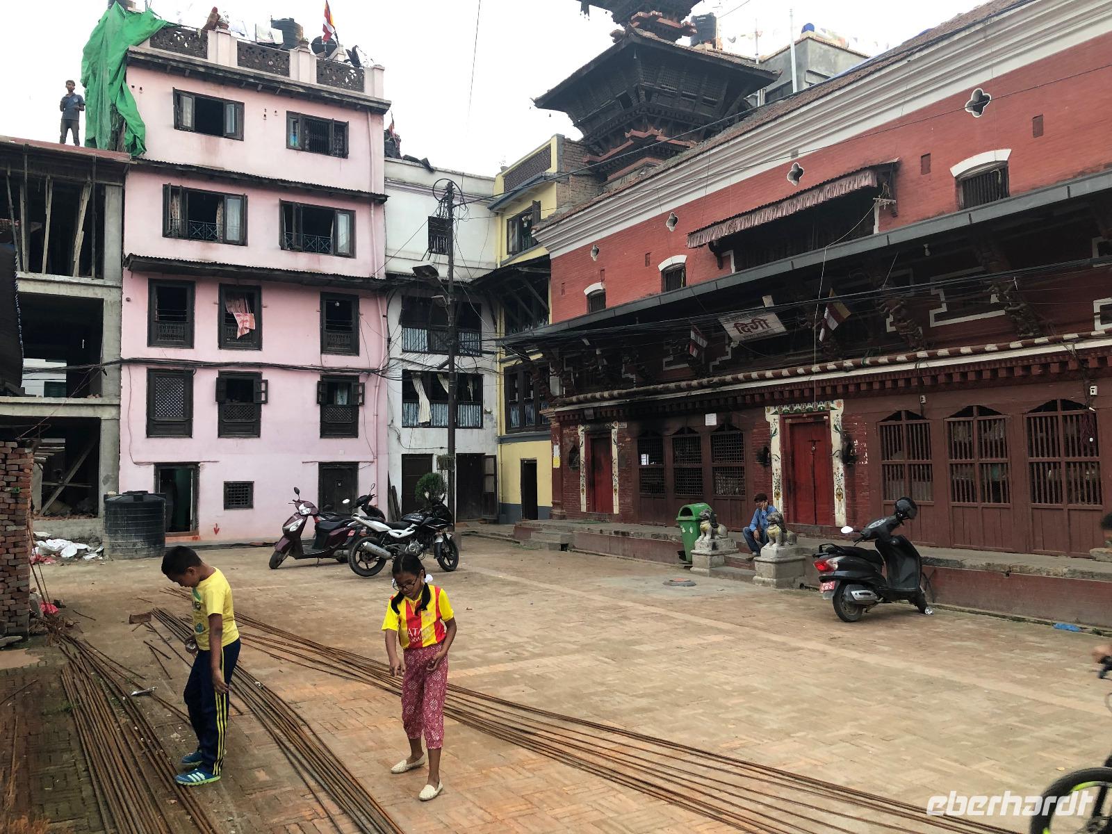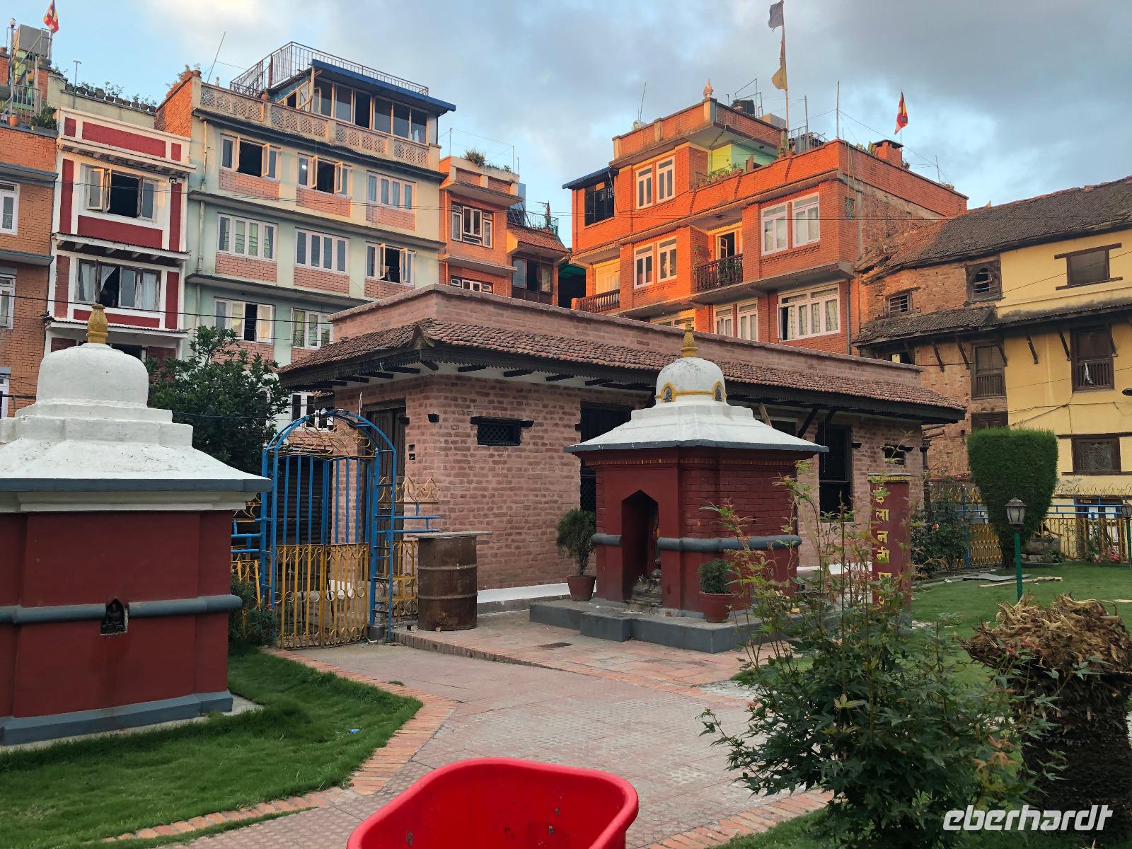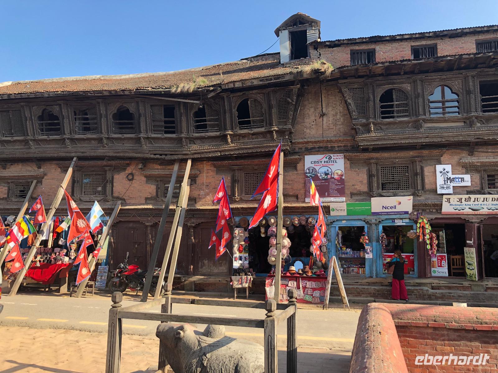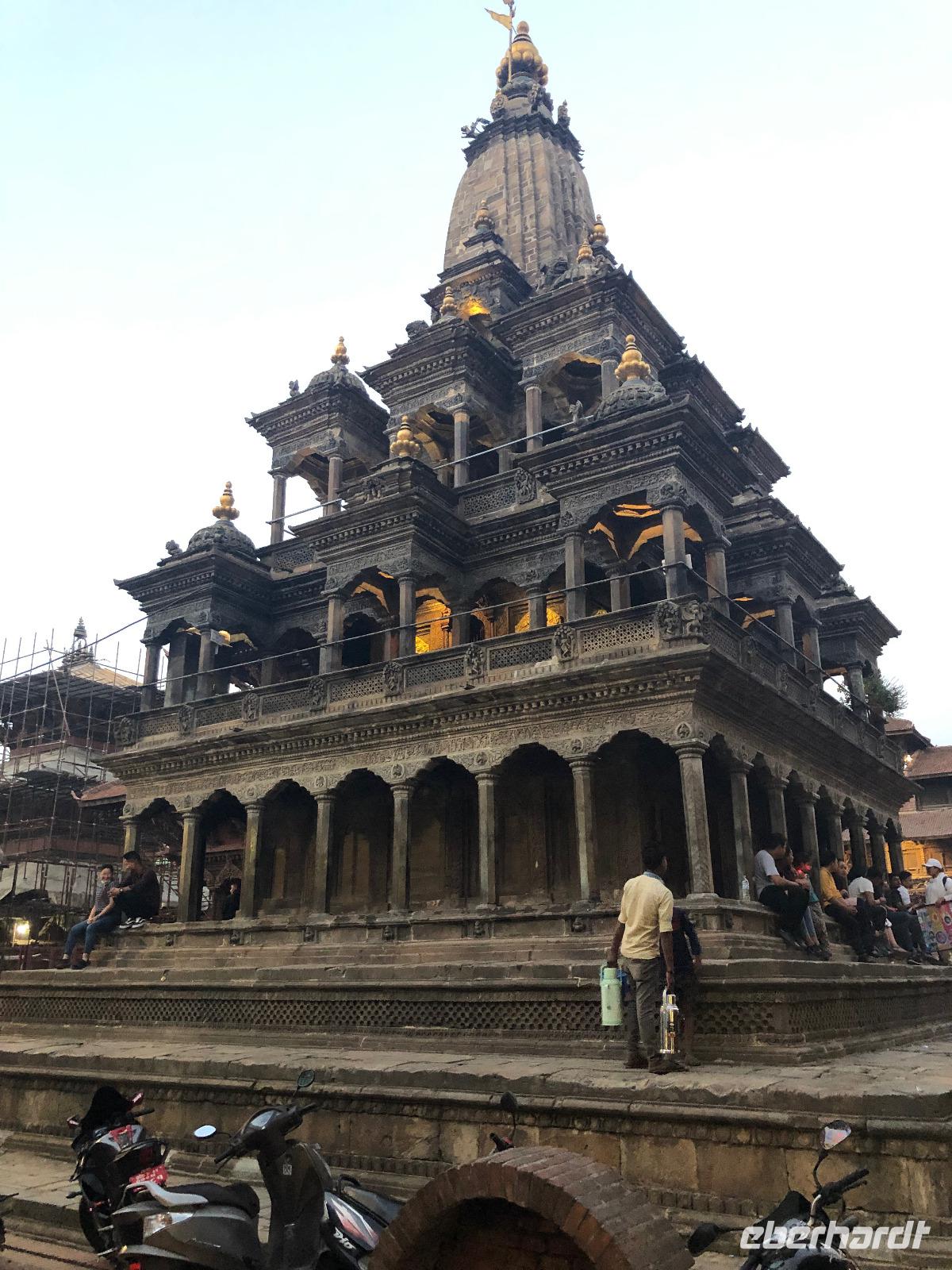 Abschiednehmen ist nie ganz leicht und die Erlebnisse in Tibet und vor allem seine freundlichen, dem Fremden offenherzig gegenüberstehenden Menschen machten es uns umso schwerer. Andererseits begann heute ein neuer Reiseabschnitt, mit neuen Eindrücken und mit einer neuen, weil andersartigen Welt. Nach der knapp einstündigen Fahrt zum Flughafen Lhasa verabschiedeten wir uns ganz herzlich von unserem tibetischen Reiseleiter/Busfahrer-Team, die uns jederzeit sicher befördert und gut informiert durch Tibet gebracht hatten. Die Maschine der Air China, welche uns nach Kathmandu bringen sollte, stand schon bereit und nach dem Durchlaufen der Ausreiseformalitäten, die chinesisch bedingt umfangreich und sehr genau waren, warteten wir am Gate auf das avisierte Boarding. Eine leichte Unruhe machte sich unter den wartenden Fluggästen breit, als immer mehr Servicepersonal am Flieger erschien und die Boardingtime sich in Wohlgefallen auflöste. Da war klar, dass unsere Maschine ein Problem hatte. Wenig später kam dann auch die offizielle Bestätigung, dass es aufgrund technischer Probleme zu einer Verzögerung kommt. Uns schwante Unheil, hatten wir doch noch ein anspruchsvolles Programm auf der Tagesordnung stehen. Eine Stunde und etliche Reparaturversuche später stand fest, dass uns diese Maschine heute nirgendwohin bringen würde. Jetzt war guter Rat teuer. Es gab nur diesen einen internationalen Flug, der Rest ging ins chinesische Kernland. Umbuchen wäre also keine Option gewesen. Wohin auch? Aber man sollte niemals das chinesische Reaktionsvermögen unterschätzen. Innerhalb einer weiteren Stunde stand eine identische Ersatzmaschine bereit, welche schließlich mit knapp zweieinhalbstündiger Verspätung in Richtung Nepal abhob. Wir hatten gute Sicht und konnten die Sieben- und Achttausender des Himalaya durch die Wolkendecke ragen sehen. Nach kurzem, ereignislosen Flug mussten wir leider, bedingt durch die unplanmäßige Verspätung, Schleifen über Kathmandu drehen, so dass wir letztendlich mit dreistündiger Verspätung nepalesischen Boden betraten. Das Einreiseprozedere war erfreulich kurz und schmerzlos, die Höhe in 1300 Metern wunderbar erträglich und die Temperaturen gewohnt warm. (Anmerkung des Verfassers; es gibt weltweit sicherlich wenige internationale Hauptstadtflughäfen, die eine so klägliche Verfassung aufweisen wie der Tribhuvan International Airport, andererseits sind während unserer Zeit alles Starts und Landungen geglückt - was will man also mehr?). Unser nepalesischer Guide Abishek begrüßte uns am Ausgang des Flughafens mit einem Khata, dem traditionellen Begrüßungsschal. Ungeachtet der Tatsache, dass uns drei Stunden für die geplanten Besichtigungen fehlten, schalteten wir unverzüglich auf Entdeckermodus und machten uns auf den Weg nach Bhaktapur, eine der drei ehemaligen Königsstädte im Kathmandutal. Wir spazieren durch die Gassen zum Bhaktapur Durbar Square, wo wir in einem Café einen Latte Macchiato, Espresso und/oder ein Stück Kuchen genossen. Im Anschluss daran besichtigten wir den Königspalast mit dem Goldenen Tor, bevor wir unseren Weg zum Taumahdi-Platz fortsetzten. Wir bestiegen die hier gelegene Nyatapola-Pagode, von deren obersten Sockel man einen guten Überblick über den Platz und die umliegenden Tempelanlagen hatte. Nach weiteren Besichtigungen in Bhaktapur begaben wir uns mit dem Bus ins 12 Kilometer entfernte Lalitpur, ehemals Patan, bis ins 18. Jahrhundert Hauptstadt des gleichnamigen Königreichs. Patan bildet mit Kathmandu eine Doppelstadt, beide werden nur durch den Bagmati-Fluss voneinander getrennt. Hier besichtigten wir den Königspalast am Durbar Square, den Tempel der tausend Buddhas sowie den Kumbeshwar Tempel. Wie auch schon Bhaktapur beeindruckte Patan mit seiner Vielzahl an buddhistischen Klöstern und hinduistischen Tempeln, die insbesondere durch ihr Alter und ihre Architektur einen lebendigen Eindruck dieser mittelalterlichen Königsstädte hinterließen. Randvoll mit neuen Impressionen verließen wir am Abend Patan und erreichten nach dreißigminütiger Fahrzeit unser Hotel im Herzen Kathmandus. Nach einem stärkenden Abendessen unter freiem Himmel begaben wir uns alle voller Vorfreude auf den nächsten Tag zu Bett.
