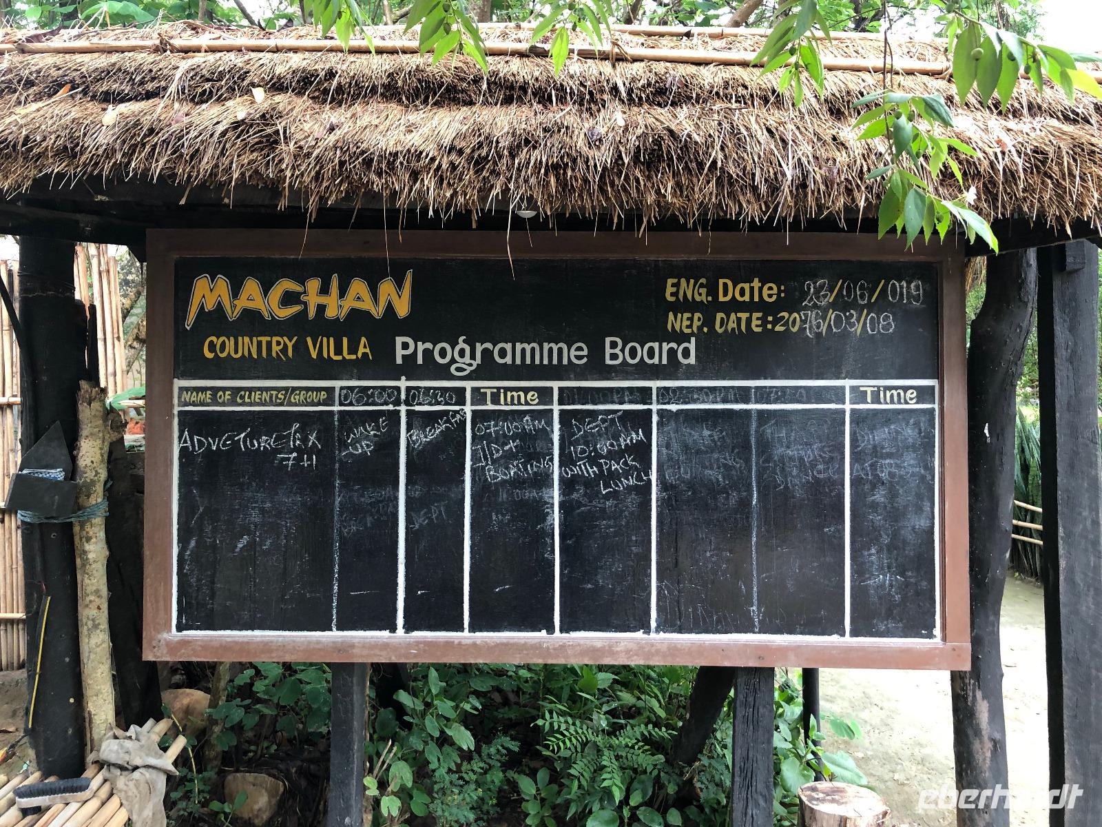 Der heutige Tag hielt gleich zu Beginn eines der Highlights unseres nepalesischen Reiseabschnitts bereit. Vorausgesetzt, das Wetter spielte mit. Tat es auch. Bei strahlendem Sonnenschein und einer leichten Bewölkung am dunstigen Himmel über Kathmandu fuhren wir am frühen Morgen zum Flughafen. Wir hatten einen sogenannten Mountain-Flight gebucht, einen Rundflug über die spektakuläre Bergwelt der nepalesischen Himalaya-Seite. Mit uns saßen insgesamt 16 Personen in der Beechcraft von Buddha Air, die uns innerhalb einer Stunde zu einigen der berühmtesten Berge dieser Erde bringen würde. Alle waren wir gespannt, spielten doch die Sichtverhältnisse eine wesentliche Rolle bei diesem Unterfangen. War der Himmel über Kathmandu noch bedeckt, änderte sich das schlagartig mit dem Verlassen des Kathmandu-Tals in nördliche Richtung. Und dann tauchten Sie unvermittelt auf, die Vieltausender dieser Welt. Langtang Lirung, Shisha Pangma (14.), Cho-Oyu (6.), Gyachung Kang (16.), Nuptse (19.) Makalu (5.) sowie die Überriesen Lohtse (4.) und her Majesty himself, the one and only Chomolungma-Mount Everest (1.), die „Mutter des Universums". Es war ein faszinierender Anblick und gleichzeitig ein Augenblick für die eigene Ewigkeit, dem berühmtesten aller Berge auf Augenhöhe zu begegnen. Durch die Cockpitscheiben gelangen spektakuläre Bilder, da das Wetter und die Sichtverhältnisse an diesem Morgen hervorragend waren. Wir flogen eine Schleife und folgten dem Himalaya-Hauptkamm in westliche Richtung. Nach reichlich 45 Minuten senkte sich unsere Beechcraft wieder dem Erdboden entgegen und weitere zehn Minuten später landeten wir wieder wohlbehalten, aber voller Dopamin und Endorphine am Flughafen Kathmandu. Ein letztes Bild von uns und der Maschine und glücklich taumelten wir dem Ausgang entgegen. Der Tag war einfach großartig, egal was noch kommen sollte. Und es kam im physischen Sinne nicht mehr viel, sah man von einer sechsstündigen Fahrt über 170 Kilometer in den südwestlich gelegenen Chitwan-Nationalpark ab. Dieser liegt im Terai, den südlichen Ausläufern des Himalaya-Gebirges. Die Straßenverhältnisse verdienten den Namensteil Straße in den meisten Fällen nicht, reihte sich doch ein Schlagloch an das andere, so dass man sich auf einer Off-Road-Piste wähnte. Nur die unendliche Anzahl an meist indischen Tata-Lastwagen, die sich Stoßstange an Stoßstange mit uns über den wie verletzt wirkenden Asphalt quälten, zeugten von einem an Überlastung leidenden Straßensystem. Die technische Bezeichnung aller Investitiönchen in das marode Straßennetz hieß „Flick-Schusterei". Dabei durfte allerdings nicht der Blick für die wunderschöne Landschaft links und rechts der gequälten Straßen verloren gehen. Grüne Bergrücken wechselten sich mit wasserführenden Tälern und reisbepflanzten Handtuchfeldern ab. Landwirtschaft war in Nepal noch Familientradition, man produzierte für den Eigenbedarf, oft noch mit hölzerner Pflugschar hinter dem leibeigenen Wasserbüffel. Zur besten Nachmittagszeit erreichten wir das Ziel des heutigen Tages, die Machan Country Villa im Chitwan Nationalpark, wo wir freundliche Aufnahme fanden. Nach dem Zimmerbezug durchstreiften wir mit einem Park-Ranger die Umgebung und das angrenzende Dorf und machten uns mit den Lebensbedingungen der hier ansässigen Bevölkerung vertraut. Bei einem multimedialen Vortrag erfuhren wir hernach viel Wissenswertes über die regionale Flora und Fauna und die Besonderheiten des Nationalparks. Bei tagsüber knapp 35 Grad Wärme und einer relativ hohen Luftfeuchtigkeit, die uns allen mehr oder weniger zusetzte, waren wir froh, nach einem wunderbaren Abendessen in die klimatisierten Bungalows ausweichen zu können. Zumal das Programm des nächsten Tages vielversprechend war und wir eine gute Mütze Schlaf gebrauchen konnten.