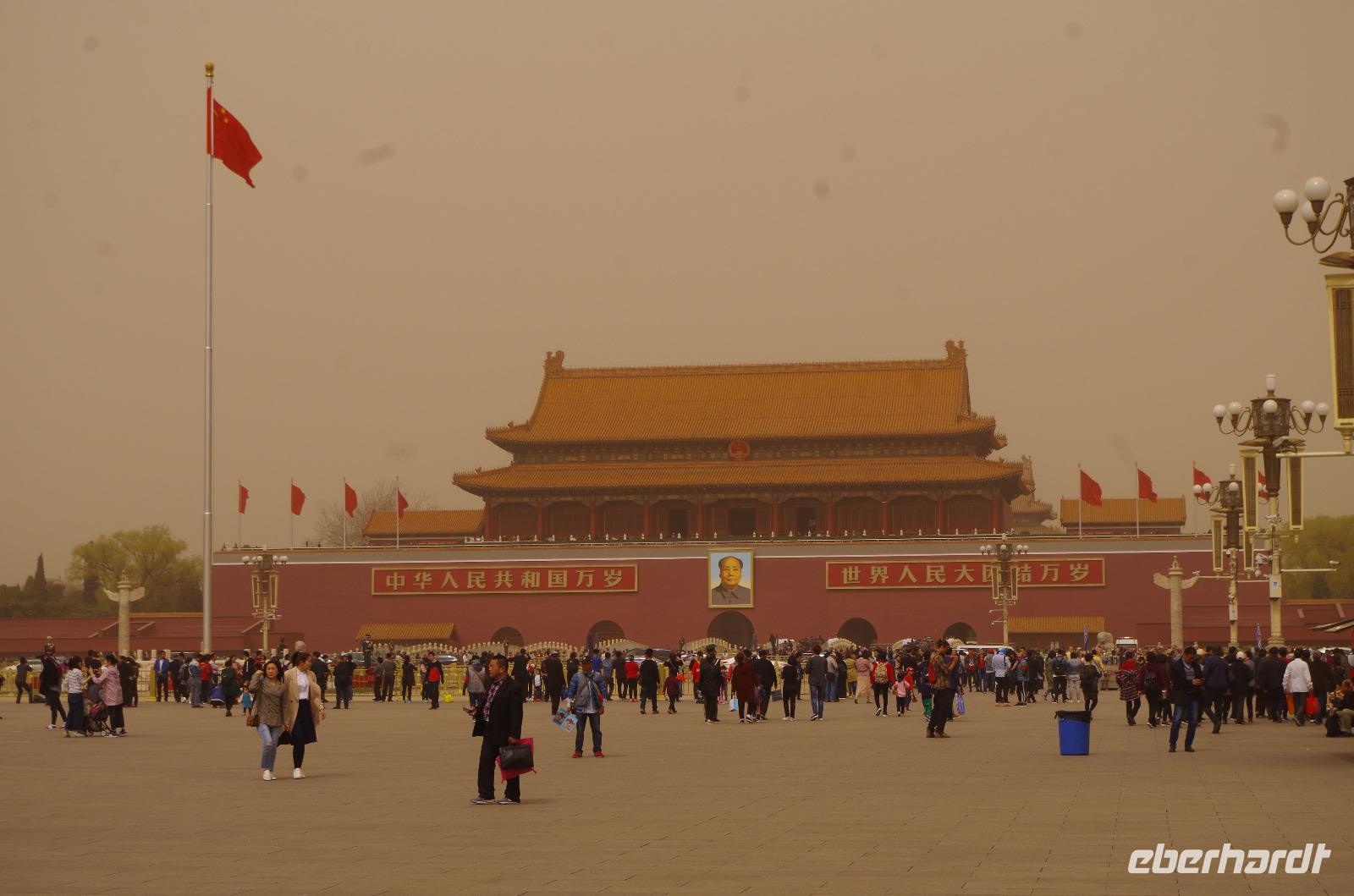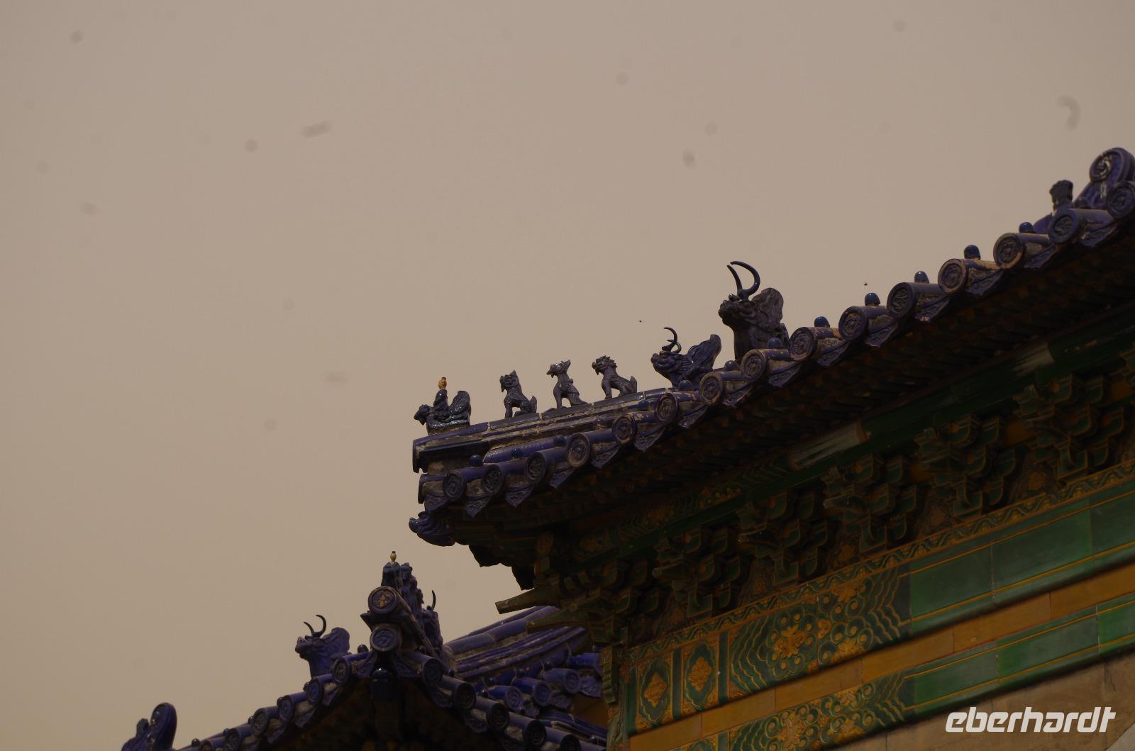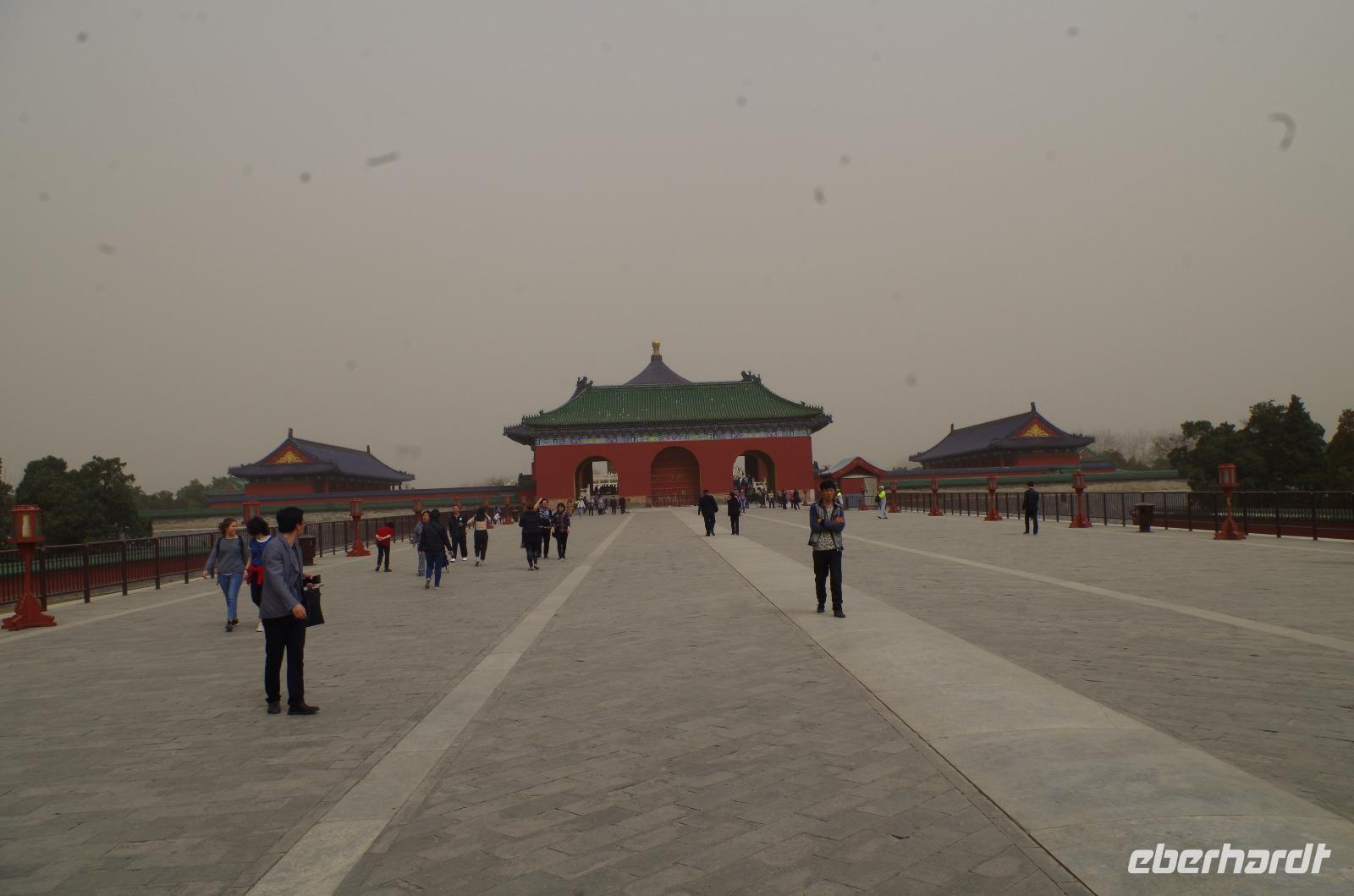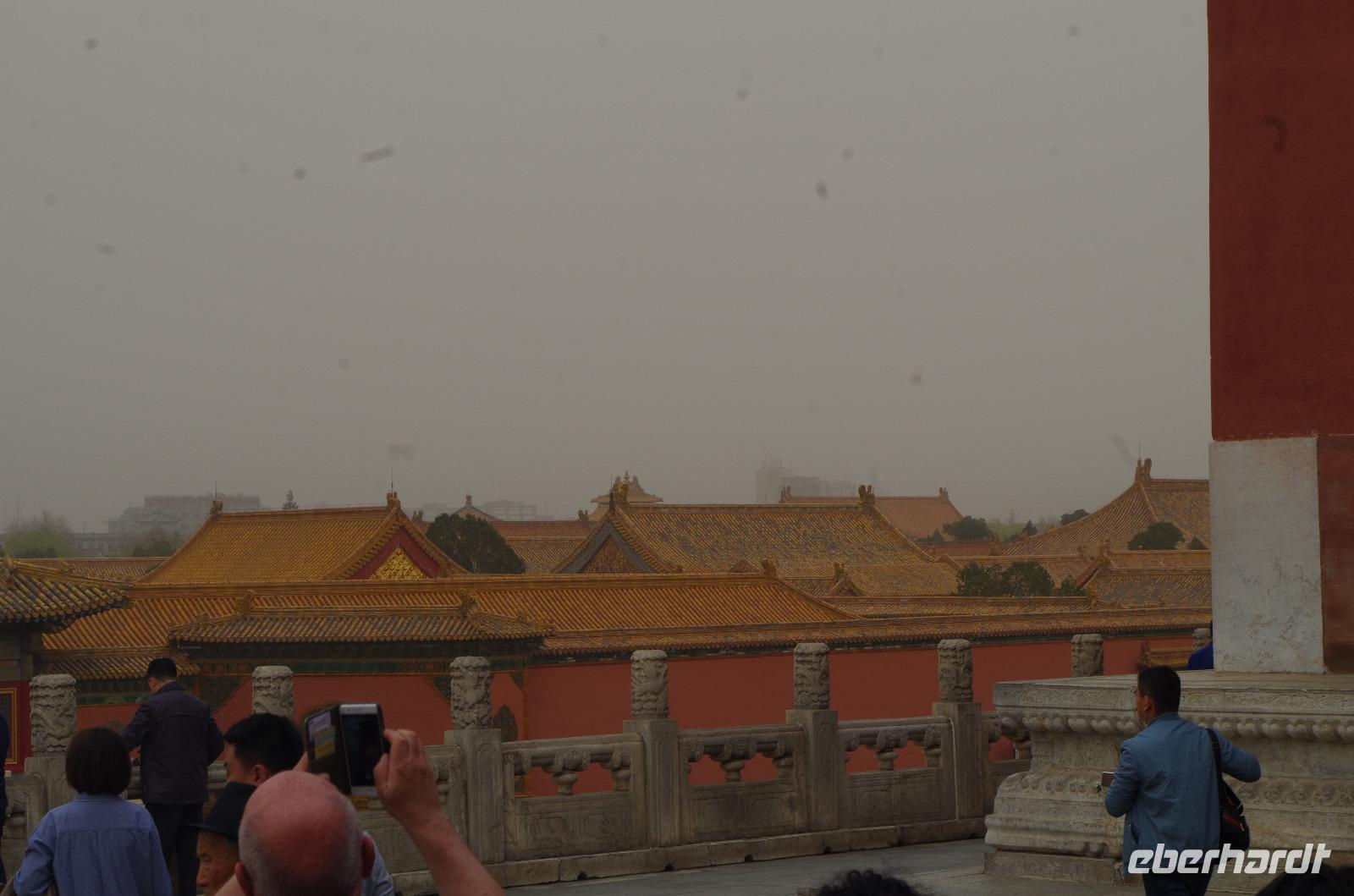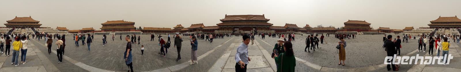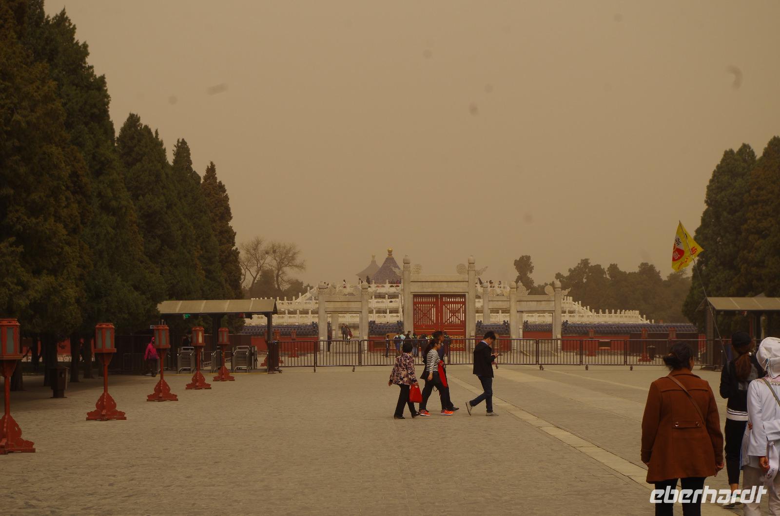 Heute morgen verlassen wir unser Hotel und fahren in Richtung des weltbekannten Himmelstempel. Bevor wir diesen jedoch besichtigen, haben wir einen exklusiven Tai Chi-Kurs mit wahren Meistern dieses Sports. Mit viel Gelächter und komischen Figuren, die für alle zu bewerkstelligen waren und doch sehr erheiternde Endergebnisse ergaben, übten wir uns in diesem Sport. Der Sandsturm machte uns ein wenig zu schaffen, doch angenehme Temperaturen und ohne Regen verspricht der Tag dennoch sehr schön zu sein. Wir betreten die Tempelanlage des Himmelsaltars und sehen die Halle, in welcher die Kaiser der Ming- und Qing-Dynastien jährlich 4 mal für eine gute Ernte beteten. Neben der Halle der Ernteopfer umfasst die Anlage mit Ihren 290 Hektar Fläche auch die Echo-Mauer, vor der wir alle gern einmal geklatscht haben und das Echo bis zu dreimal zu uns zurückhallte, und den Runden Himmelsaltar, auf dem man in der Mitte einmal ein Gebet an die chinesischen Götter senden kann. Wer weiß, ob Sie uns gehört haben. (Meine Lieben, nachdem unsere Reise nun vorbei ist und alle wieder wohlbehalten in heimatlichen Gefilden angekommen sind, kann ich euch meinen Wunsch ja verraten: Ich hatte mir gewünscht, eine tolle Reise mit tollen Menschen zu erleben und dass alle gesund und munter durch die noch bevorstehenden Tage kommen. Das ist uns hervorragend gelungen! Dankeschön.). Im Anschluss sollte uns eine der wohl sagen-umwobensten Bauwerke ganz Chinas seine Tore öffnen. Wir fuhren zum Tiananmen-Platz/ Platz des Himmels, den wir bereits am Vorabend in schönster Beleuchtung gesehen hatten und schlenderten diesmal über den fast 1km langen Platz, vorbei am Mausoleum Mao Tsetungs und dem Denkmal der Helden des Volkes wurde uns erneut die unendliche Größe Chinas bewusst. Josef informierte uns darüber, dass bei Versammlungen auf diesem Platz gut eine Million Menschen zusammenkommen können. Eine schier unvorstellbare Größe. Anschließend spazierten wir durch das Tor des Himmlischen Friedens unter Mao Tsetungs Bildnis hindurch und traten ein in die Verbotene Stadt. Seit der Fertigstellung im Jahre 1420, nach einer nur 14-jährigen Bauzeit, war diese Anlage Sitz der Kaiser der Ming- und Qing-Dynastie bis 1911. Auf einer Gesamtfläche von 720.000 km² stehen 890 Paläste und zahlreiche Pavillons mit insgesamt 8.886 Räumen. Harmonie wurde in der Anlage sehr groß geschrieben, denn so folgt man dem Hauptpfad entlang der geraden Achse von der Halle der erhaltenen Harmonie zur Halle der zentralen Harmonie weiter zur Halle der erhabenen Harmonie, in welcher letztlich der Drachenthron stand, auf welchem die chinesischen Kaiser saßen, und worin die wichtigsten Zeremonien wie Krönungen, Trauungen und Verleihung von Titeln an hohe Beamte stattfanden. Nach einer wohlverdienten Stärkung in einem nahegelegenen Café, ging es anschließend zu einer Akrobatik-Show, die uns alle in Staunen versetzt. Junge Damen, die mit Schirmen und Diabolos und waghalsige Akrobaten, die in schwindelerregenden Höhen Sprünge und Klettereien vollziehen, die uns teils um das Wohlergehen der Herren bangen lässt, lassen uns das ein oder andere „Oh" oder „Ah" entfleuchen. Höhepunkt der Show sind 7 Akrobaten, die auf Motorrädern in einem Kugel-Stahlkäfig rundherum und kopfüber aneinander vorbeirauschen. Welch beeindruckendes Schauspiel! Kulinarisch werden wir am heutigen Abend mit der berühmten Peking-Ente verwöhnt, bevor wir geschafft aber tief beeindruckt auf unsere Kissen sinken.