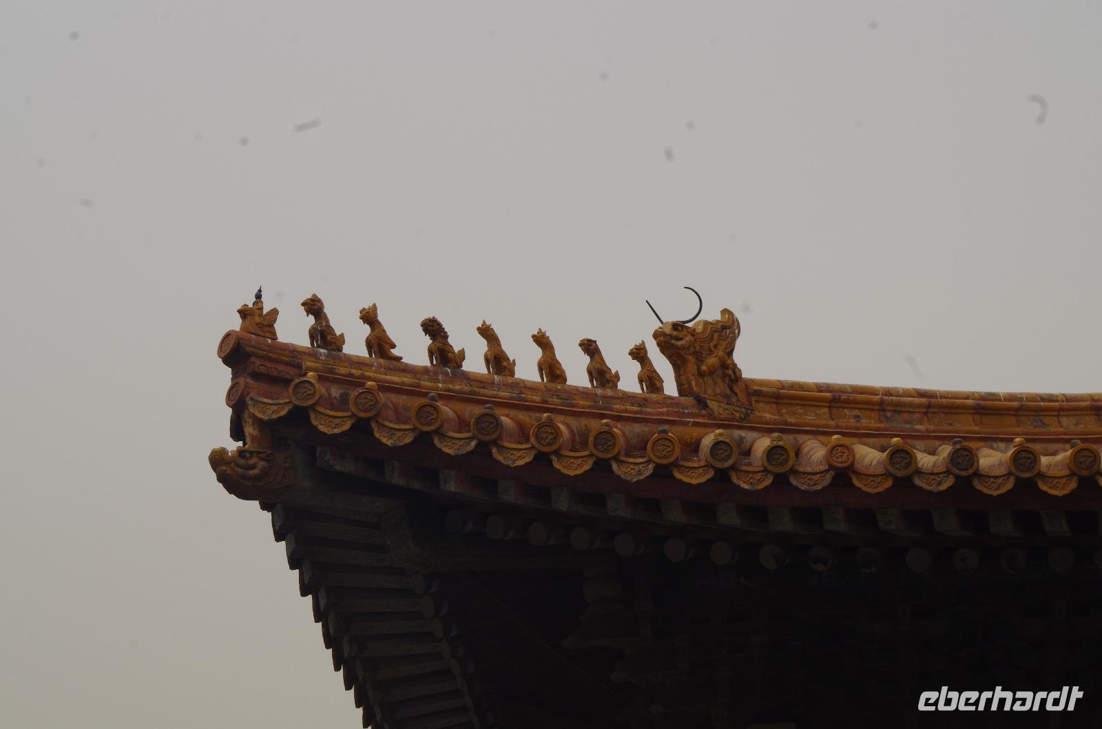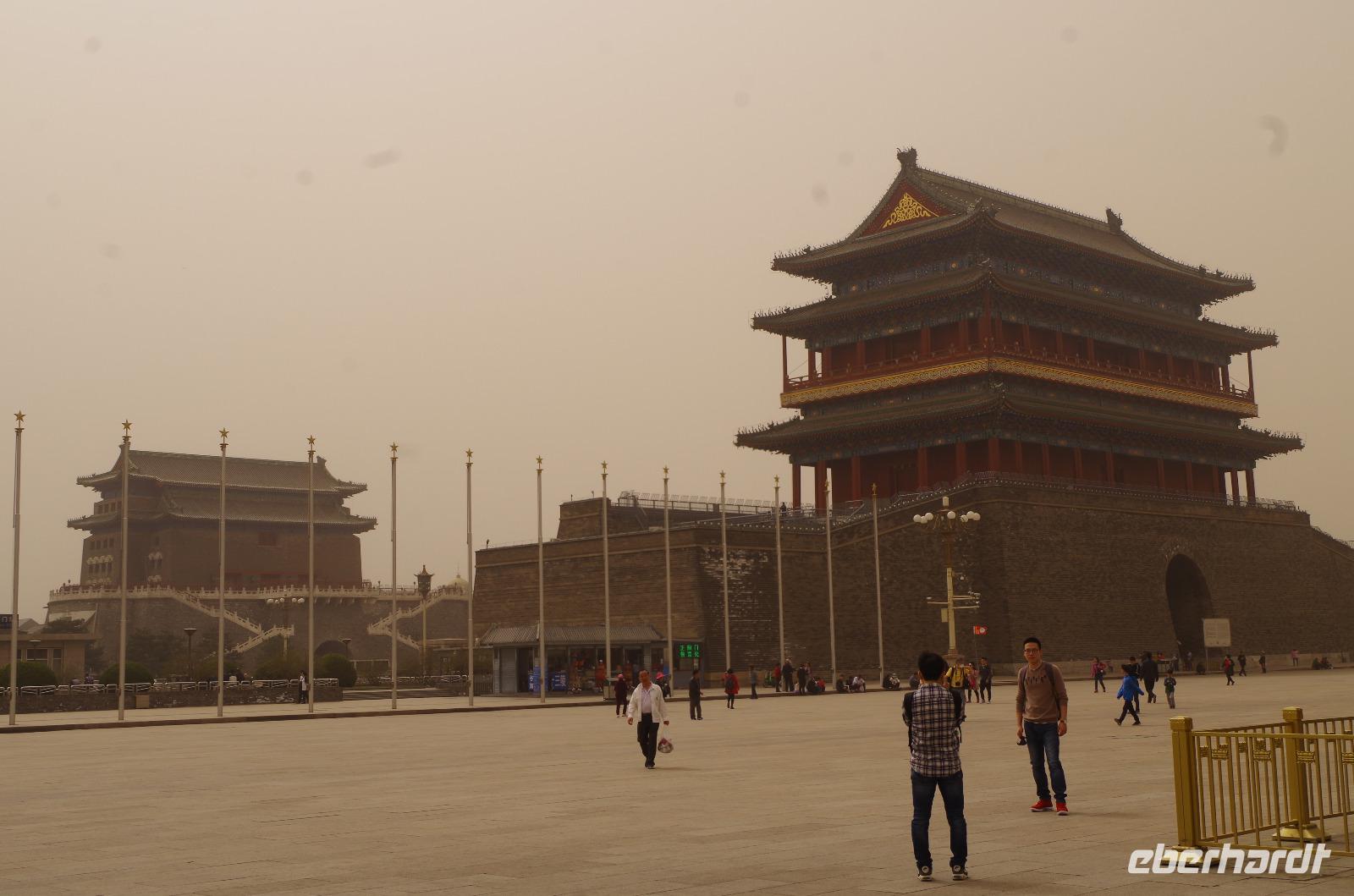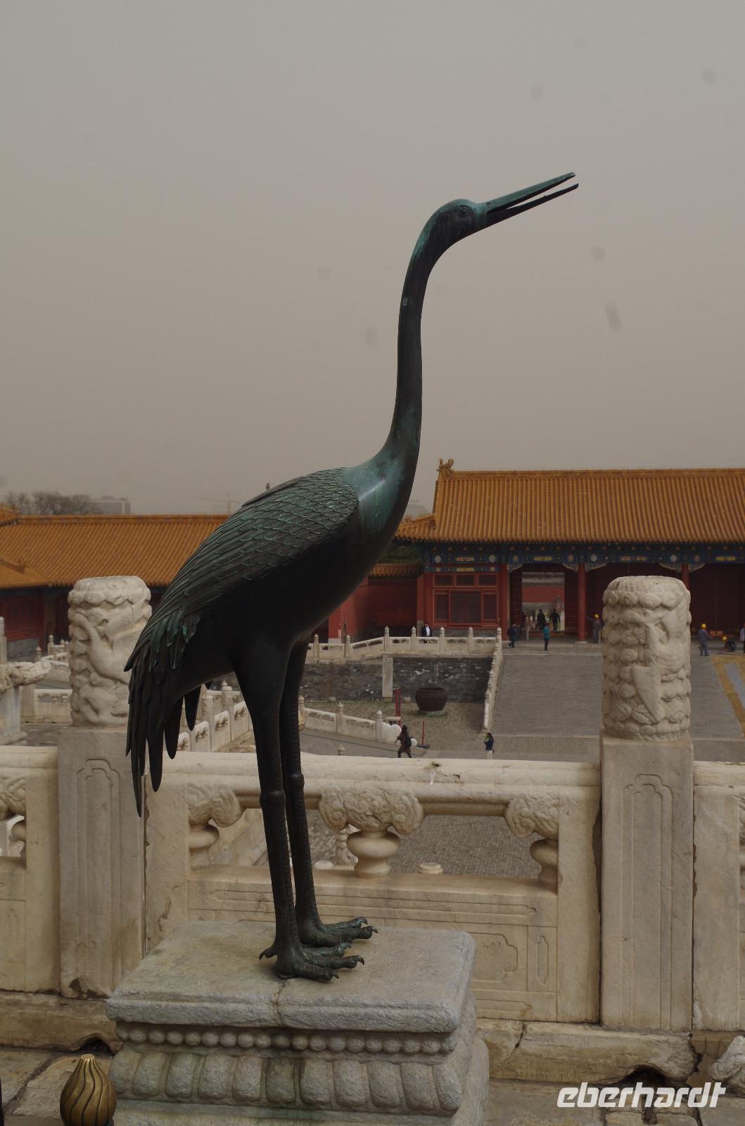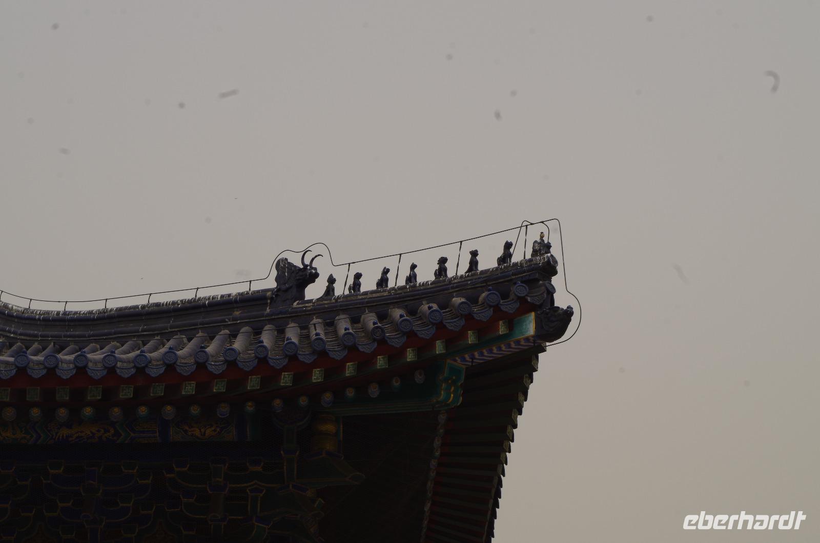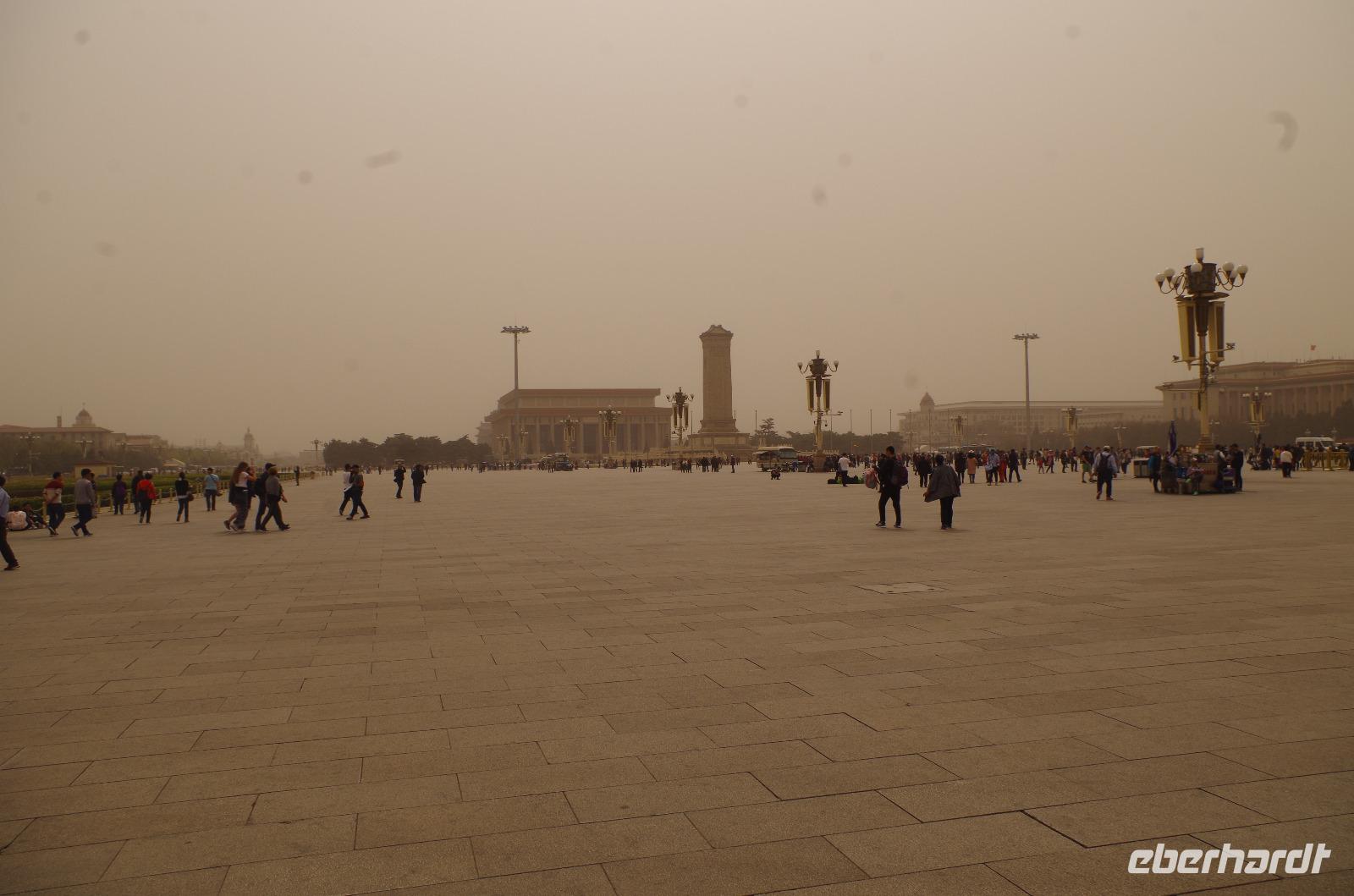 Heute morgen verlassen wir unser Hotel und fahren in Richtung des weltbekannten Himmelstempel. Bevor wir diesen jedoch besichtigen, haben wir einen exklusiven Tai Chi-Kurs mit wahren Meistern dieses Sports. Mit viel Gelächter und komischen Figuren, die für alle zu bewerkstelligen waren und doch sehr erheiternde Endergebnisse ergaben, übten wir uns in diesem Sport. Der Sandsturm machte uns ein wenig zu schaffen, doch angenehme Temperaturen und ohne Regen verspricht der Tag dennoch sehr schön zu sein. Wir betreten die Tempelanlage des Himmelsaltars und sehen die Halle, in welcher die Kaiser der Ming- und Qing-Dynastien jährlich 4 mal für eine gute Ernte beteten. Neben der Halle der Ernteopfer umfasst die Anlage mit Ihren 290 Hektar Fläche auch die Echo-Mauer, vor der wir alle gern einmal geklatscht haben und das Echo bis zu dreimal zu uns zurückhallte, und den Runden Himmelsaltar, auf dem man in der Mitte einmal ein Gebet an die chinesischen Götter senden kann. Wer weiß, ob Sie uns gehört haben. (Meine Lieben, nachdem unsere Reise nun vorbei ist und alle wieder wohlbehalten in heimatlichen Gefilden angekommen sind, kann ich euch meinen Wunsch ja verraten: Ich hatte mir gewünscht, eine tolle Reise mit tollen Menschen zu erleben und dass alle gesund und munter durch die noch bevorstehenden Tage kommen. Das ist uns hervorragend gelungen! Dankeschön.). Im Anschluss sollte uns eine der wohl sagen-umwobensten Bauwerke ganz Chinas seine Tore öffnen. Wir fuhren zum Tiananmen-Platz/ Platz des Himmels, den wir bereits am Vorabend in schönster Beleuchtung gesehen hatten und schlenderten diesmal über den fast 1km langen Platz, vorbei am Mausoleum Mao Tsetungs und dem Denkmal der Helden des Volkes wurde uns erneut die unendliche Größe Chinas bewusst. Josef informierte uns darüber, dass bei Versammlungen auf diesem Platz gut eine Million Menschen zusammenkommen können. Eine schier unvorstellbare Größe. Anschließend spazierten wir durch das Tor des Himmlischen Friedens unter Mao Tsetungs Bildnis hindurch und traten ein in die Verbotene Stadt. Seit der Fertigstellung im Jahre 1420, nach einer nur 14-jährigen Bauzeit, war diese Anlage Sitz der Kaiser der Ming- und Qing-Dynastie bis 1911. Auf einer Gesamtfläche von 720.000 km² stehen 890 Paläste und zahlreiche Pavillons mit insgesamt 8.886 Räumen. Harmonie wurde in der Anlage sehr groß geschrieben, denn so folgt man dem Hauptpfad entlang der geraden Achse von der Halle der erhaltenen Harmonie zur Halle der zentralen Harmonie weiter zur Halle der erhabenen Harmonie, in welcher letztlich der Drachenthron stand, auf welchem die chinesischen Kaiser saßen, und worin die wichtigsten Zeremonien wie Krönungen, Trauungen und Verleihung von Titeln an hohe Beamte stattfanden. Nach einer wohlverdienten Stärkung in einem nahegelegenen Café, ging es anschließend zu einer Akrobatik-Show, die uns alle in Staunen versetzt. Junge Damen, die mit Schirmen und Diabolos und waghalsige Akrobaten, die in schwindelerregenden Höhen Sprünge und Klettereien vollziehen, die uns teils um das Wohlergehen der Herren bangen lässt, lassen uns das ein oder andere „Oh" oder „Ah" entfleuchen. Höhepunkt der Show sind 7 Akrobaten, die auf Motorrädern in einem Kugel-Stahlkäfig rundherum und kopfüber aneinander vorbeirauschen. Welch beeindruckendes Schauspiel! Kulinarisch werden wir am heutigen Abend mit der berühmten Peking-Ente verwöhnt, bevor wir geschafft aber tief beeindruckt auf unsere Kissen sinken.