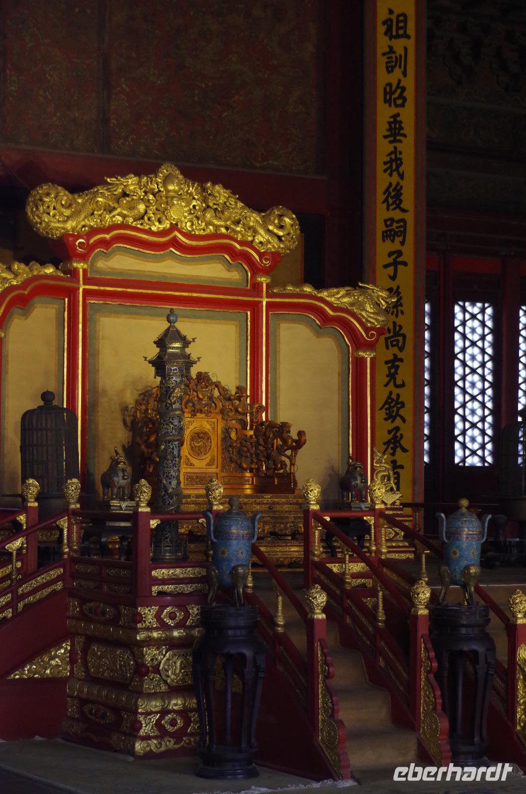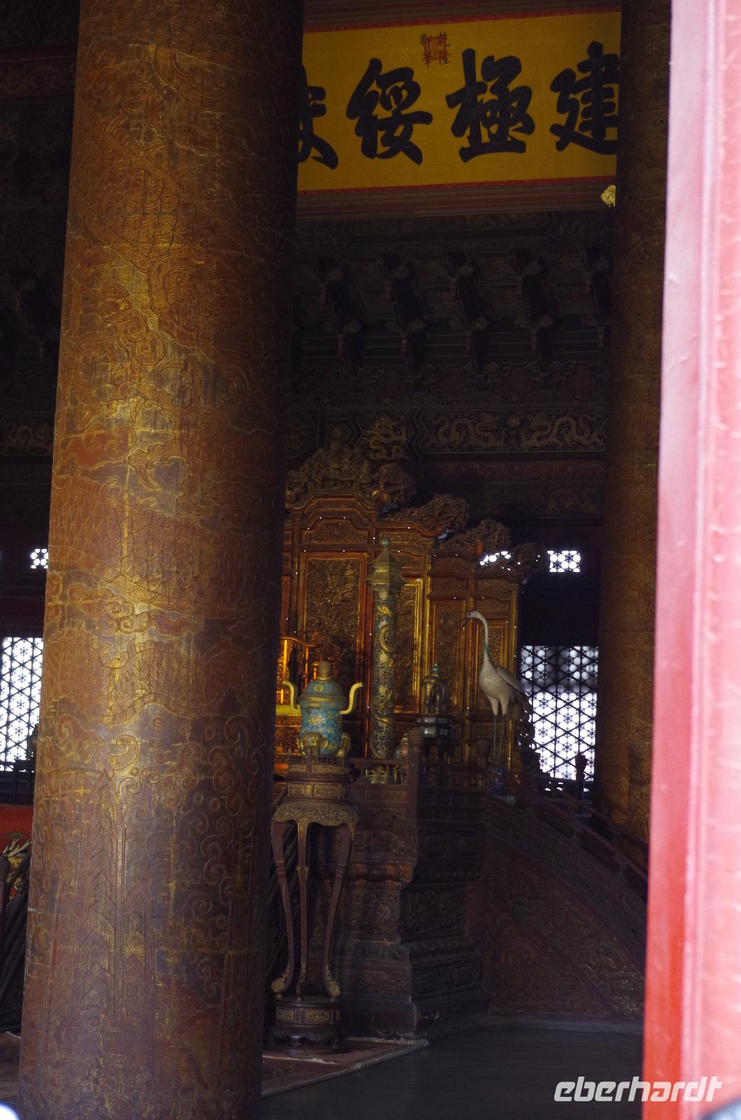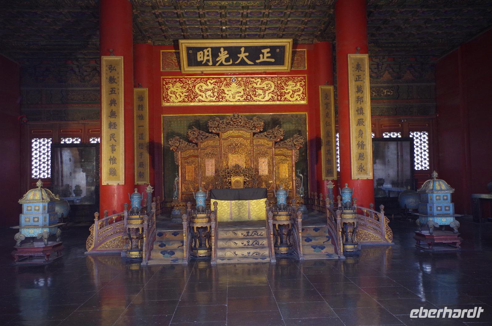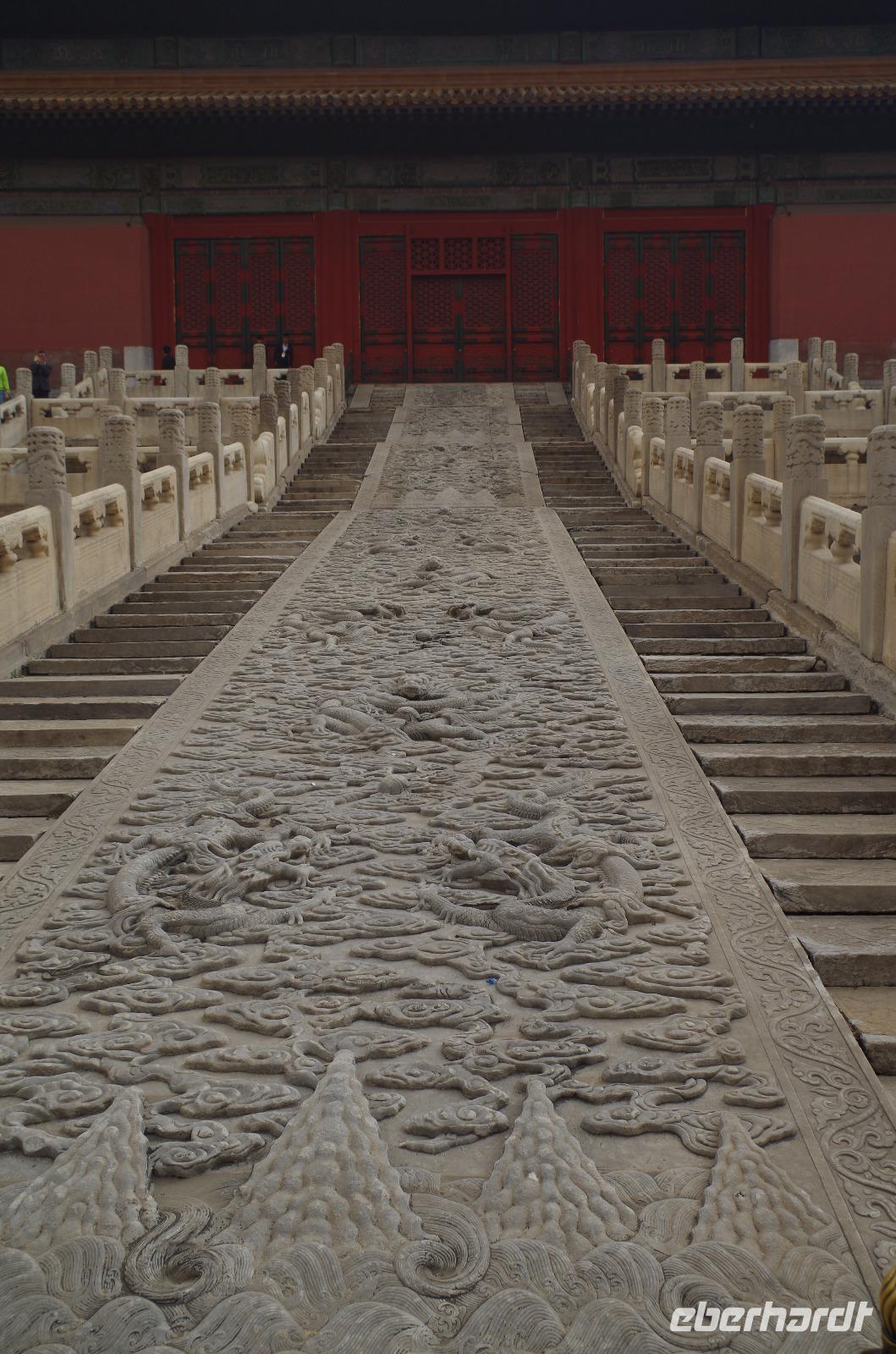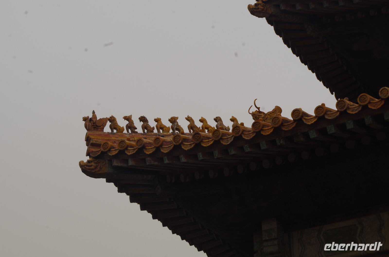 Heute morgen verlassen wir unser Hotel und fahren in Richtung des weltbekannten Himmelstempel. Bevor wir diesen jedoch besichtigen, haben wir einen exklusiven Tai Chi-Kurs mit wahren Meistern dieses Sports. Mit viel Gelächter und komischen Figuren, die für alle zu bewerkstelligen waren und doch sehr erheiternde Endergebnisse ergaben, übten wir uns in diesem Sport. Der Sandsturm machte uns ein wenig zu schaffen, doch angenehme Temperaturen und ohne Regen verspricht der Tag dennoch sehr schön zu sein. Wir betreten die Tempelanlage des Himmelsaltars und sehen die Halle, in welcher die Kaiser der Ming- und Qing-Dynastien jährlich 4 mal für eine gute Ernte beteten. Neben der Halle der Ernteopfer umfasst die Anlage mit Ihren 290 Hektar Fläche auch die Echo-Mauer, vor der wir alle gern einmal geklatscht haben und das Echo bis zu dreimal zu uns zurückhallte, und den Runden Himmelsaltar, auf dem man in der Mitte einmal ein Gebet an die chinesischen Götter senden kann. Wer weiß, ob Sie uns gehört haben. (Meine Lieben, nachdem unsere Reise nun vorbei ist und alle wieder wohlbehalten in heimatlichen Gefilden angekommen sind, kann ich euch meinen Wunsch ja verraten: Ich hatte mir gewünscht, eine tolle Reise mit tollen Menschen zu erleben und dass alle gesund und munter durch die noch bevorstehenden Tage kommen. Das ist uns hervorragend gelungen! Dankeschön.). Im Anschluss sollte uns eine der wohl sagen-umwobensten Bauwerke ganz Chinas seine Tore öffnen. Wir fuhren zum Tiananmen-Platz/ Platz des Himmels, den wir bereits am Vorabend in schönster Beleuchtung gesehen hatten und schlenderten diesmal über den fast 1km langen Platz, vorbei am Mausoleum Mao Tsetungs und dem Denkmal der Helden des Volkes wurde uns erneut die unendliche Größe Chinas bewusst. Josef informierte uns darüber, dass bei Versammlungen auf diesem Platz gut eine Million Menschen zusammenkommen können. Eine schier unvorstellbare Größe. Anschließend spazierten wir durch das Tor des Himmlischen Friedens unter Mao Tsetungs Bildnis hindurch und traten ein in die Verbotene Stadt. Seit der Fertigstellung im Jahre 1420, nach einer nur 14-jährigen Bauzeit, war diese Anlage Sitz der Kaiser der Ming- und Qing-Dynastie bis 1911. Auf einer Gesamtfläche von 720.000 km² stehen 890 Paläste und zahlreiche Pavillons mit insgesamt 8.886 Räumen. Harmonie wurde in der Anlage sehr groß geschrieben, denn so folgt man dem Hauptpfad entlang der geraden Achse von der Halle der erhaltenen Harmonie zur Halle der zentralen Harmonie weiter zur Halle der erhabenen Harmonie, in welcher letztlich der Drachenthron stand, auf welchem die chinesischen Kaiser saßen, und worin die wichtigsten Zeremonien wie Krönungen, Trauungen und Verleihung von Titeln an hohe Beamte stattfanden. Nach einer wohlverdienten Stärkung in einem nahegelegenen Café, ging es anschließend zu einer Akrobatik-Show, die uns alle in Staunen versetzt. Junge Damen, die mit Schirmen und Diabolos und waghalsige Akrobaten, die in schwindelerregenden Höhen Sprünge und Klettereien vollziehen, die uns teils um das Wohlergehen der Herren bangen lässt, lassen uns das ein oder andere „Oh" oder „Ah" entfleuchen. Höhepunkt der Show sind 7 Akrobaten, die auf Motorrädern in einem Kugel-Stahlkäfig rundherum und kopfüber aneinander vorbeirauschen. Welch beeindruckendes Schauspiel! Kulinarisch werden wir am heutigen Abend mit der berühmten Peking-Ente verwöhnt, bevor wir geschafft aber tief beeindruckt auf unsere Kissen sinken.