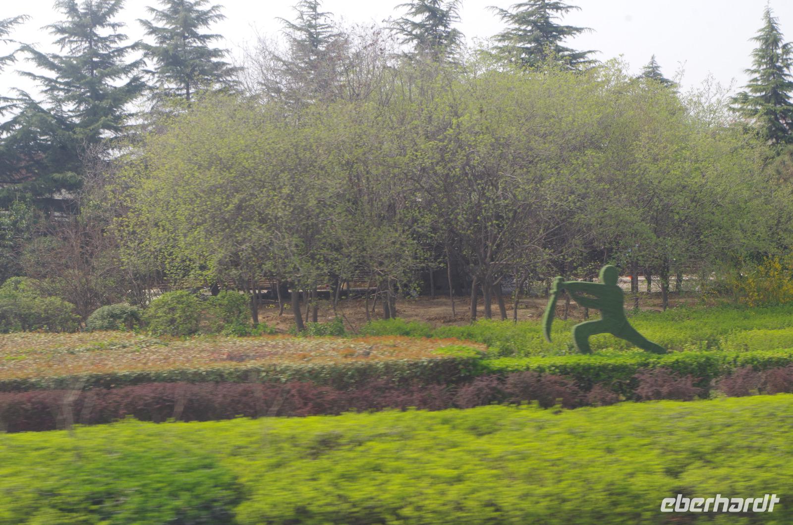 Wir verlassen Peking, verabschieden uns von dieser Weltmetropole und besteigen den Schnellzug nach Zhengzhou. Mit über 300 km/h rauschen wir dahin und staunen erneut über die Entwicklung, die dieses Land in den letzten Jahren und Jahrzehnten vollzogen hat. Während der Fahrt sehen wir unendliche Weiten an Ackerland, dass hier noch von Hand gepflügt, bepflanzt und geerntet wird. Angekommen in Zhengzhou treffen wir unsere örtliche Reiseleiterin „Lisa" - die Erste und fahren gemeinsam in den beschaulichen Ort Zhengzhou, der besonders für seine zahlreichen Kung Fu-Schulen bekannt ist. In einem Shaolin-Kloster werden wir zeugen einer solchen Kung Fu-Vorführung. Junge Männer die durch jahrelanges Training ihre Körper so gestählt haben, dass selbst eine Speerspitze am Kehlkopf ihnen nichts auszumachen scheint. Die zahlreichen Kinder im Publikum sind von der Darbietung ebenso angetan wie wir und nach der Vorstellung werden wir hier doch glatt zur Lokalattraktion und schlagen der Reihe nach mit den Kindern ein und werden unter fröhlichen „Hello"s und „Hi"s angewunken und angelächelt. Im Geistertempel, nur wenige Meter entfernt, lässt uns anschließend die Abenddämmerung malerische Aufnahmen des Buddhismus machen und auch einen Eindruck in die 1.500 Jahre lange Tradition gewinnen. Schüler haben bereits vor hunderten Jahren ihre Kräfte an den hiesigen Bäumen getestet und die Spuren davon sind noch heute in den Rinden zu erkennen. 248 Stupas sind in der Anlage errichtet, die zu Ehren der verstorbenen Shaolin-Meister von deren Schülern errichtet wurden. Erst vor wenigen Jahren ist einer der letzten Mönche verstorben und auf dessen Stupa sind zahlreiche Blumen und Geschenke hinterlegt. Nach Abendessen und Fahrt in unser Hotel lassen wir den Abend ganz individuell ausklingen.