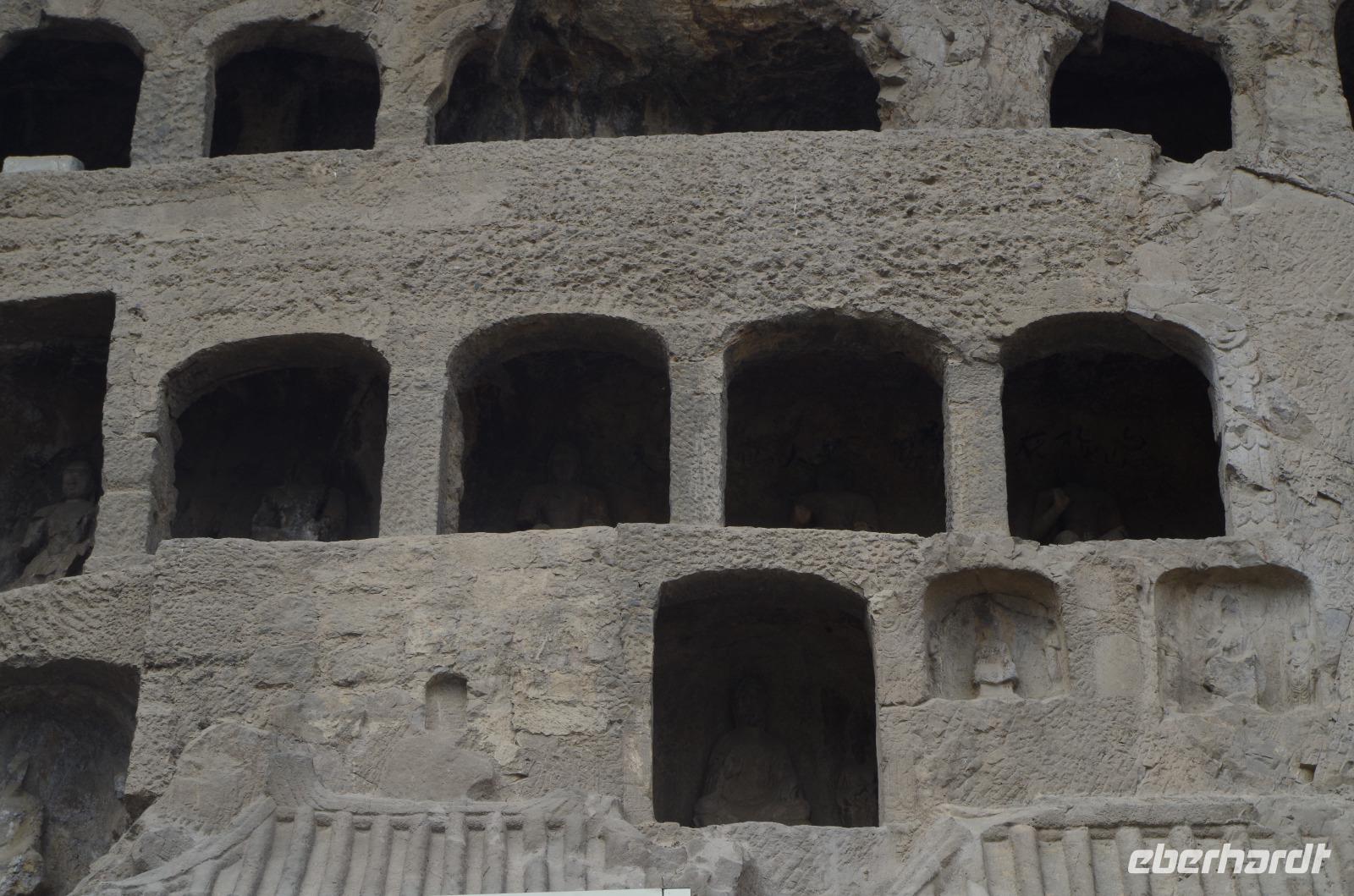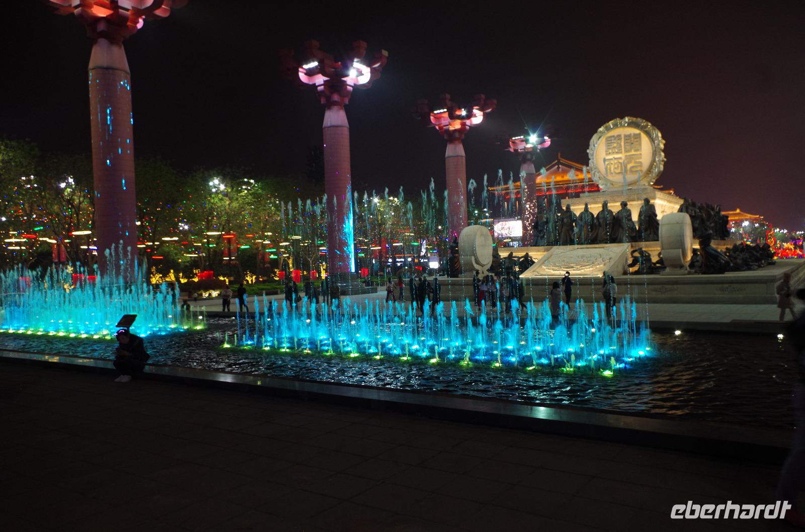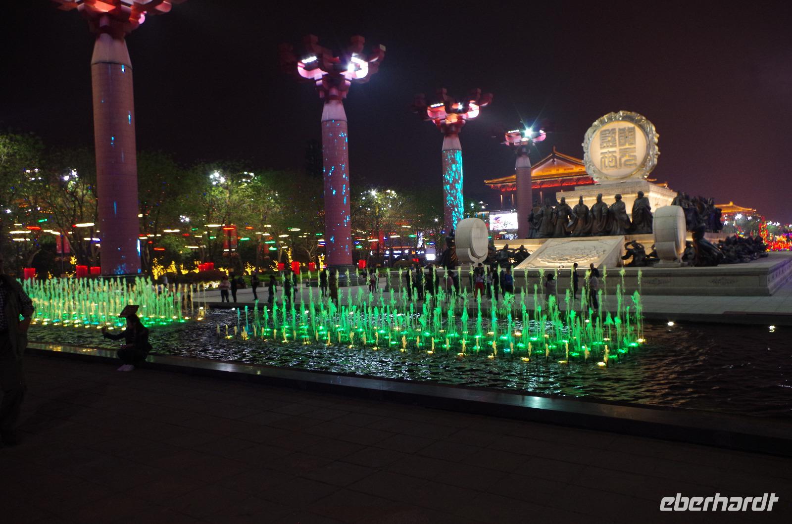 Wer einmal nach China reist, sollte unbedingt nach Luoyang und die Longmen-Grotten besichtigen. Wir haben es getan und wurden belohnt. Bei blauem Himmel, etwas, was wir in Peking durch die doch starke Luftverschmutzung nicht sehen konnten, bestaunten wir die unzähligen Buddha- und Bodhisattwa-Statuen, die am Ufer des Yi-Flusses in insgesamt 2345 Grotten eingemeißelt und errichtet sind. Die Kulturrevolution von Mao Tsetung und auch Raub durch europäische Armeen haben viele der Statuen ihren Kopf gekostet; und doch konnte der Vandalismus der Schönheit der Anlage kaum etwas anhaben. Größte und wohl auch beeindruckendste Buddha-Statue ist die der einstigen Kaiserin Wu. Sie wird auch die Mona Lisa in China genannt, denn ihr Lächeln verbirgt ein Geheimnis. Die Geschichte um Kaiserin Wu ist gleichfalls eine bewegte, gilt sie doch als harsche und kalkulierende Regentin, die durch das Liebesspiel mit gleich zwei Kaisern Ihre Position erlangte. So sagt man über die Statue, die Sie selbst in Auftrag gab, dass Sie von rechts aussähe, als schaue sie böse, von vorn als schaue sie freundlich und von links als schaue sie verrückt. Nach eingängiger Studie haben wir in der Gruppe festgestellt, dass es hier wohl wirklich im Auge des Betrachters liegt. Nachdem wir auf der gegenüberliegenden Uferseite zum Ausgangspunkt zurückgegangen sind, verabschiedeten wir uns von „Lisa" und fuhren, erneut per Schnellzug, nach Xi'an. Wir treffen hier unseren örtlichen Reiseleiter „Herr Wang", der uns sofort mit seiner fröhlichen Art für sich einnimmt. Auf der Fahrt vom Bahnhof in die Stadt erzählt uns Herr Wang bereits viel über die bewegte Geschichte Xi'ans. Die fast 3.000 Jahre alte Stadt zählt zu den sechs altertümlichen Residenzstädten und war durch 11 Dynastien hindurch und letztlich die Tang-Dynastie (600-900 n.Chr.) Kaiserstadt. Schachbrettartig ist sie angelegt diese schöne Stadt und der Stadtkern ist von einer alten Stadtmauer umgeben, die noch heute durchgehend erhalten ist. Nach dem Abendessen begeben wir uns mit Herr Wang auf die zubuchbare Lichterfahrt. Zu Beginn herrschte doch etwas Skepsis, ob sie wirklich so toll ist, wie uns berichtet wurde und letztlich wurden wir nicht enttäuscht. Sie war sogar noch beeindruckender, als wir uns hätten vorstellen können. Der Springbrunnen vor der Großen Wildganspagode erstrahlte in dutzenden Farben und die Wasserspiele waren abgestimmt auf die musikalische Untermalung und hunderte Düsen sprühen und sprengen Wasser in allen Formen umher. Anschließend spazieren wir entlang der hell erleuchteten Hauptstraße und kommen aus dem Staunen gar nicht mehr heraus. Gebäude, Bäume, Statuen - alles hat seine ganz eigenen Lichteffekte und ergänzt die Umgebung. Ein wahres Farbschauspiel bietet sich unseren Augen und niemand wusste so recht, was man zuerst fotografieren sollte. Mit bunt schillernden Lichtern noch immer vor den Augen fuhren wir zum Hotel zurück.
