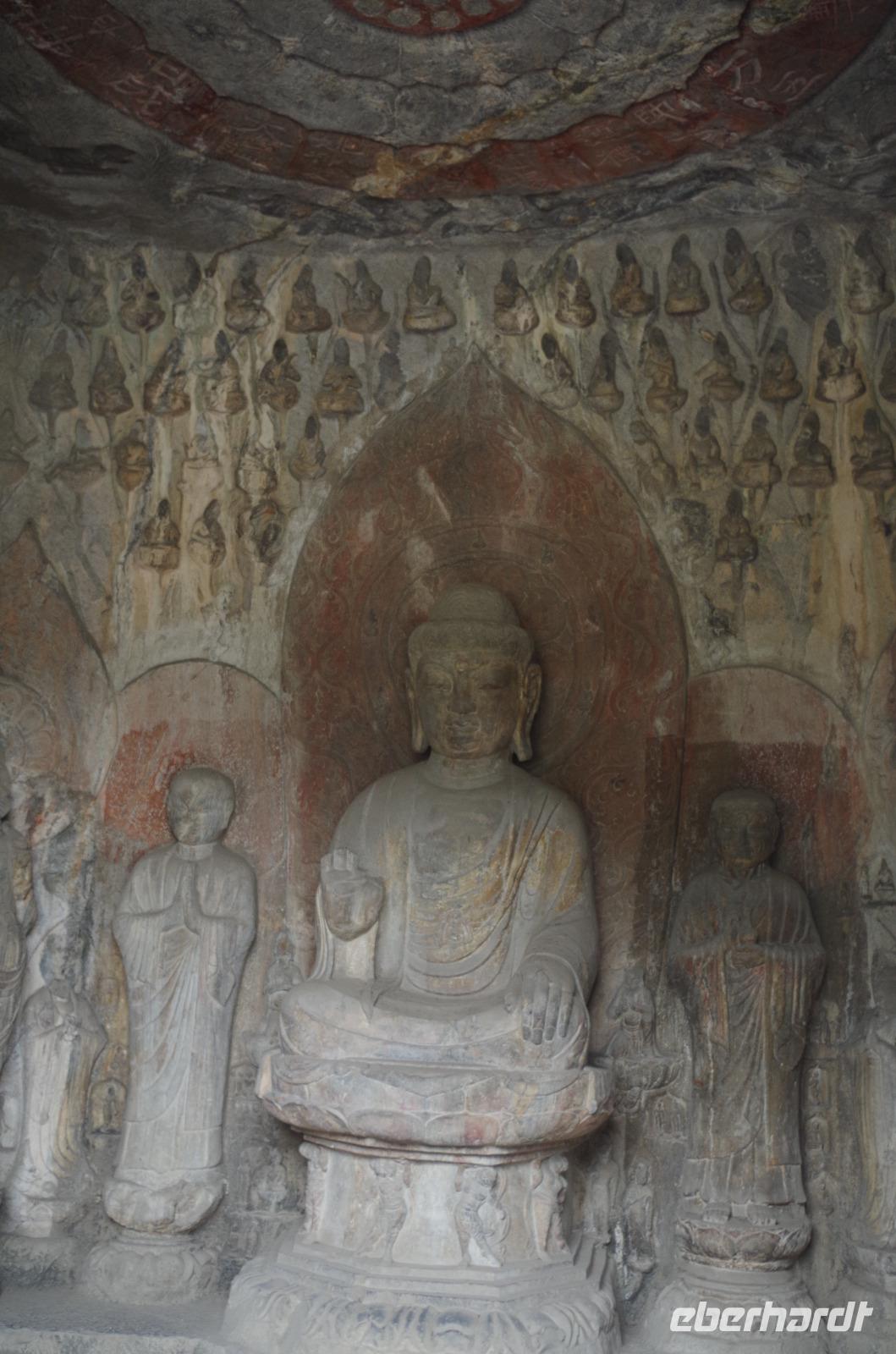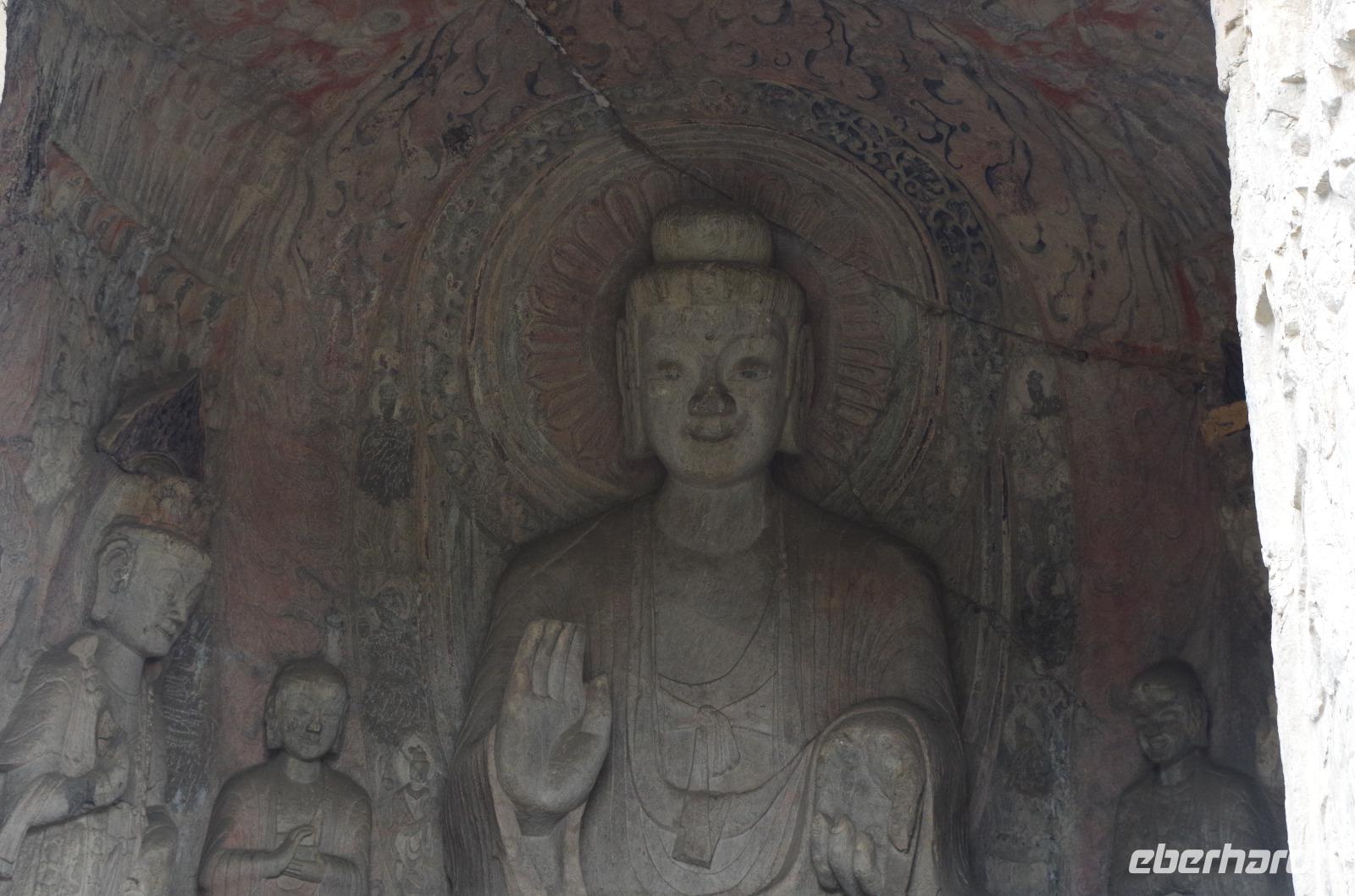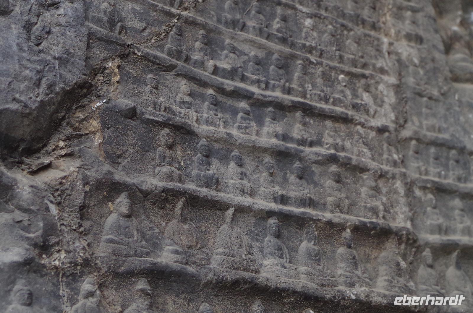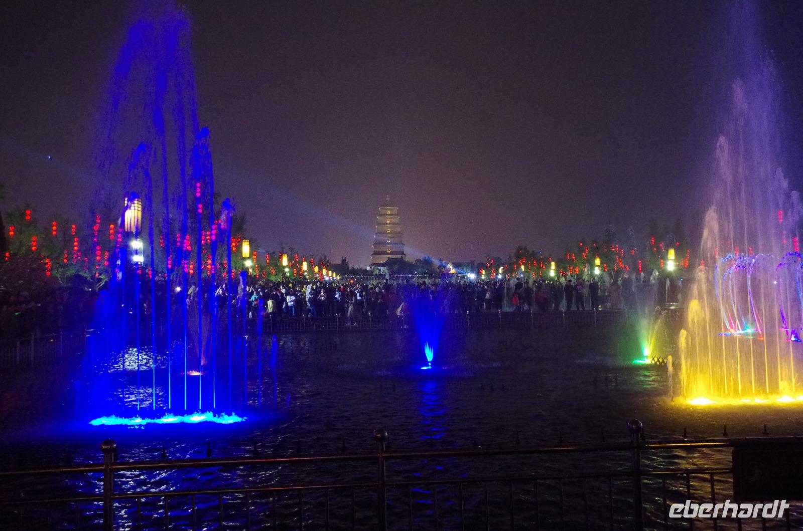 Wer einmal nach China reist, sollte unbedingt nach Luoyang und die Longmen-Grotten besichtigen. Wir haben es getan und wurden belohnt. Bei blauem Himmel, etwas, was wir in Peking durch die doch starke Luftverschmutzung nicht sehen konnten, bestaunten wir die unzähligen Buddha- und Bodhisattwa-Statuen, die am Ufer des Yi-Flusses in insgesamt 2345 Grotten eingemeißelt und errichtet sind. Die Kulturrevolution von Mao Tsetung und auch Raub durch europäische Armeen haben viele der Statuen ihren Kopf gekostet; und doch konnte der Vandalismus der Schönheit der Anlage kaum etwas anhaben. Größte und wohl auch beeindruckendste Buddha-Statue ist die der einstigen Kaiserin Wu. Sie wird auch die Mona Lisa in China genannt, denn ihr Lächeln verbirgt ein Geheimnis. Die Geschichte um Kaiserin Wu ist gleichfalls eine bewegte, gilt sie doch als harsche und kalkulierende Regentin, die durch das Liebesspiel mit gleich zwei Kaisern Ihre Position erlangte. So sagt man über die Statue, die Sie selbst in Auftrag gab, dass Sie von rechts aussähe, als schaue sie böse, von vorn als schaue sie freundlich und von links als schaue sie verrückt. Nach eingängiger Studie haben wir in der Gruppe festgestellt, dass es hier wohl wirklich im Auge des Betrachters liegt. Nachdem wir auf der gegenüberliegenden Uferseite zum Ausgangspunkt zurückgegangen sind, verabschiedeten wir uns von „Lisa" und fuhren, erneut per Schnellzug, nach Xi'an. Wir treffen hier unseren örtlichen Reiseleiter „Herr Wang", der uns sofort mit seiner fröhlichen Art für sich einnimmt. Auf der Fahrt vom Bahnhof in die Stadt erzählt uns Herr Wang bereits viel über die bewegte Geschichte Xi'ans. Die fast 3.000 Jahre alte Stadt zählt zu den sechs altertümlichen Residenzstädten und war durch 11 Dynastien hindurch und letztlich die Tang-Dynastie (600-900 n.Chr.) Kaiserstadt. Schachbrettartig ist sie angelegt diese schöne Stadt und der Stadtkern ist von einer alten Stadtmauer umgeben, die noch heute durchgehend erhalten ist. Nach dem Abendessen begeben wir uns mit Herr Wang auf die zubuchbare Lichterfahrt. Zu Beginn herrschte doch etwas Skepsis, ob sie wirklich so toll ist, wie uns berichtet wurde und letztlich wurden wir nicht enttäuscht. Sie war sogar noch beeindruckender, als wir uns hätten vorstellen können. Der Springbrunnen vor der Großen Wildganspagode erstrahlte in dutzenden Farben und die Wasserspiele waren abgestimmt auf die musikalische Untermalung und hunderte Düsen sprühen und sprengen Wasser in allen Formen umher. Anschließend spazieren wir entlang der hell erleuchteten Hauptstraße und kommen aus dem Staunen gar nicht mehr heraus. Gebäude, Bäume, Statuen - alles hat seine ganz eigenen Lichteffekte und ergänzt die Umgebung. Ein wahres Farbschauspiel bietet sich unseren Augen und niemand wusste so recht, was man zuerst fotografieren sollte. Mit bunt schillernden Lichtern noch immer vor den Augen fuhren wir zum Hotel zurück.