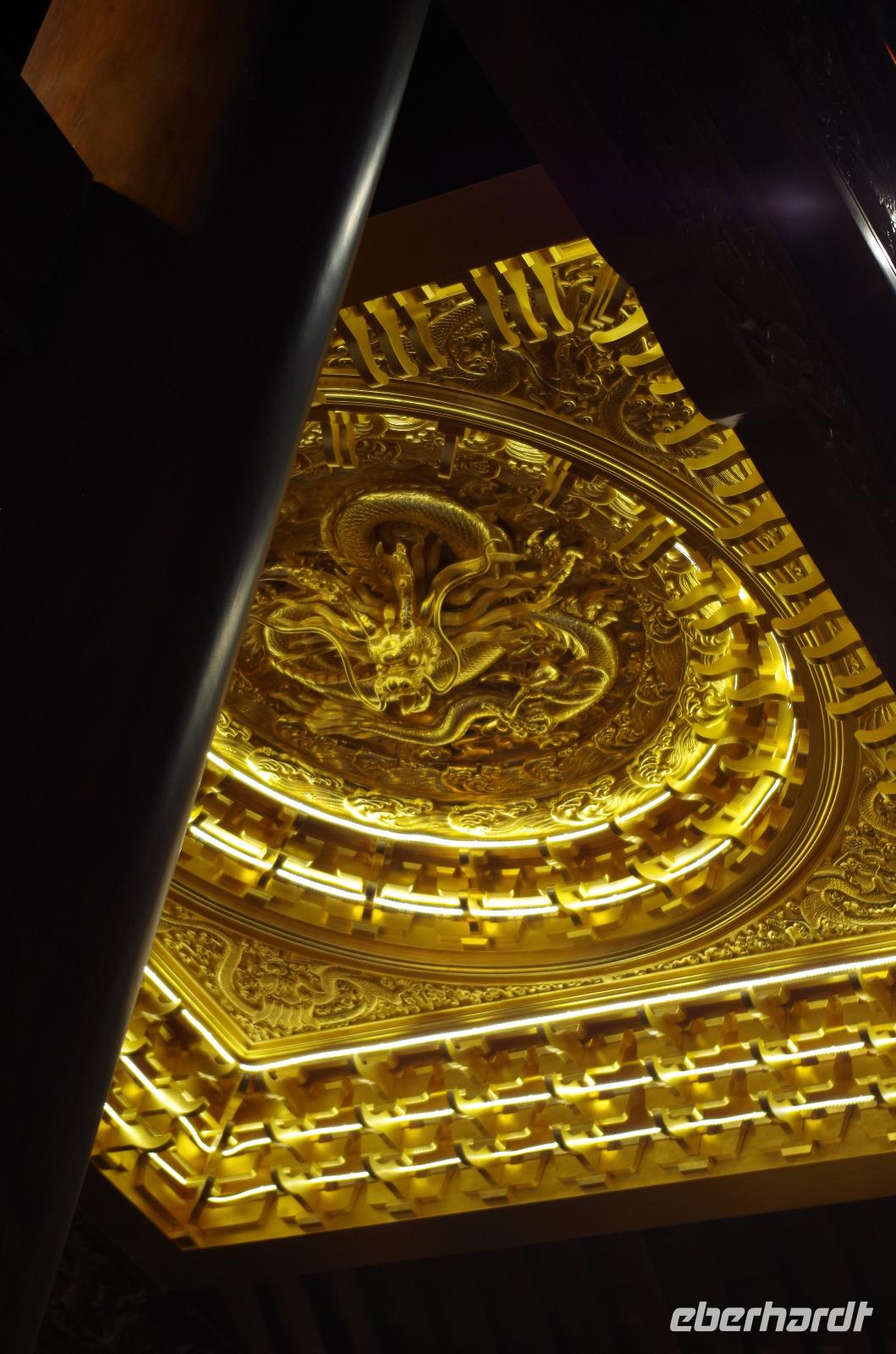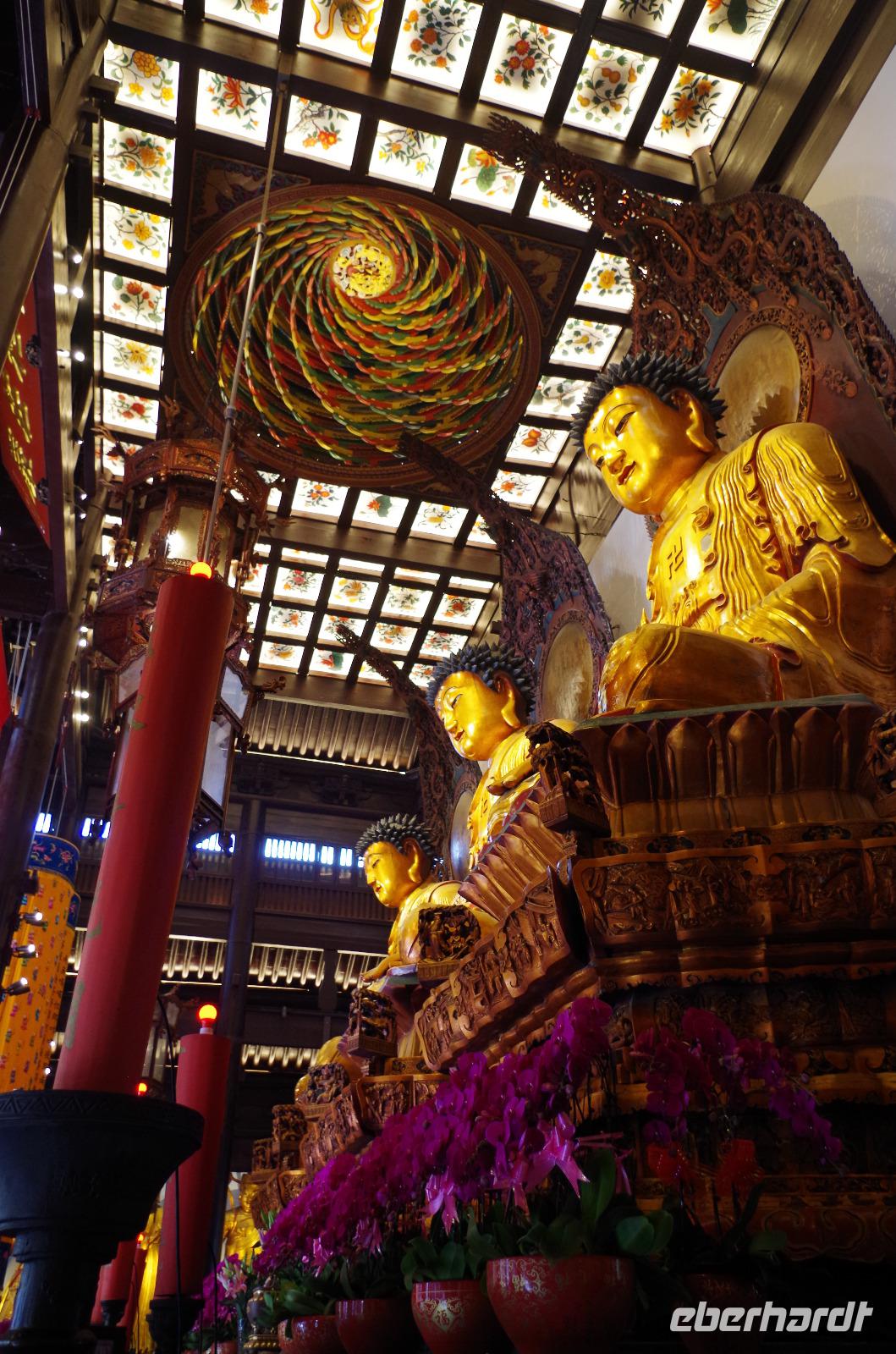 Shanghai verheist uns mit milden Temperaturen und Sonnenschein noch zwei schöne letzte Tage in China. Den heutigen Tag beginnen wir beim Jade-Buddha-Tempel. Der im späten 19. Jahrhundert errichtete Tempel beherbergt zwei Jade-Buddha-Statuen, die der Mönch Huigen während der Qing-Dynastie aus Burma mitbrachte. Besonders eindrucksvoll ist die Leistung der Chinesen, den Haupttempel der Anlage im September 2017 zu verschieben. Dabei wurde die gesamte Halle verrückt, ohne sie zu dekonstruieren oder zu teilen, um den Platz zu vergrößern und eine Halle für eine weitere Bodhisattwa-Statue errichten zu können. In der Haupthalle sehen wir zunächst drei große goldene Buddha-Statuen, von denen der mittlere „Shakyamuni", der linke „Amitabha" und der rechte „Bhaisajyaguru" heißt. An den Seiten reihen sich insgesamt 18 Arhats auf, die die ersten Anhänger von Gautama Buddha waren und gleichsam Erleuchtung erreichten. Sie sind damit beauftragt auf die prophezeite Ankunft von Maitreya, ein weiterer erleuchteter Buddha, zu warten. Auf der Nordseite ist eine große Guanyin-Statue mit Sudhana und 53 seiner Lehrer angebracht. Ein wahrlich eindrucksvolles Bild unter der bunt-gestalteten und verdrehten Deckenkonstruktion. In weiteren Hallen des Tempels sind die zwei Jade-Buddha-Statuen beherbergt, von denen die Eine eine sitzende und die Andere eine liegende Haltung eingenommen haben. In der Halle des sitzenden Jade-Buddha haben wir zudem weitere 688 Buddha-Figuren stehen sehen. Anschließend machten wir uns auf den Weg zum Yu-Garten. Um den berühmten Garten sind zahlreiche Geschäfte in den umliegenden Straßen und Gassen ansässig und so schlägt das Shopper-Herz gleich wieder etwas höher. Wir schließen uns den vielen Menschen an und schlängeln uns über die berühmte Zickzack-Brücke. Der Yu-Garten mit seinen heute noch etwa 2,2 Hektar Größe war bei seiner ursprünglichen Errichtung etwa 5 Hektar groß. Durch Missgeschäfte jedoch, hat die Pan-Familie, nach und nach Teile verkaufen müssen. Die Halle der drei Ehren und den Garten sehen wir uns intensiv an und Josef weist auf die Besonderheiten der Anlage und Wissenswertes zu bekannten Chinesischen Denkern hin, die hier verweilten. Anschließend können wir etwas freie Zeit nutzen und die Geschäfte um den Yu-Garten herum besuchen und auch eine Kleinigkeit zu Mittag essen. Daraufhin fahren wir weiter ins französische Viertel und zum Bund - der Uferpromenade von Shanghai, von welcher aus man einen phantastischen Blick auf die gegenüberliegende Skyline genießen kann. Zahlreiche Paare machen hier ihre Hochzeitsphotos und auch die Chinesen selbst nutzen diesen Ort für Treffen mit Freunden und zum abendlichen Beisammensein. Wir verbringen unseren Abend bei einem gemeinsamen Essen und die letzte Nacht im Hotel.