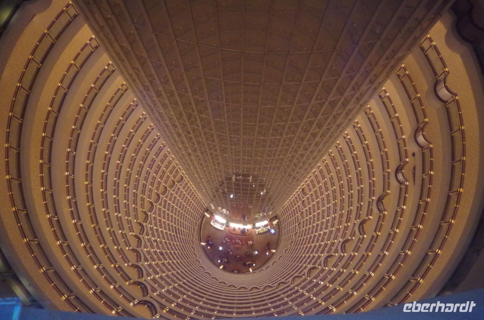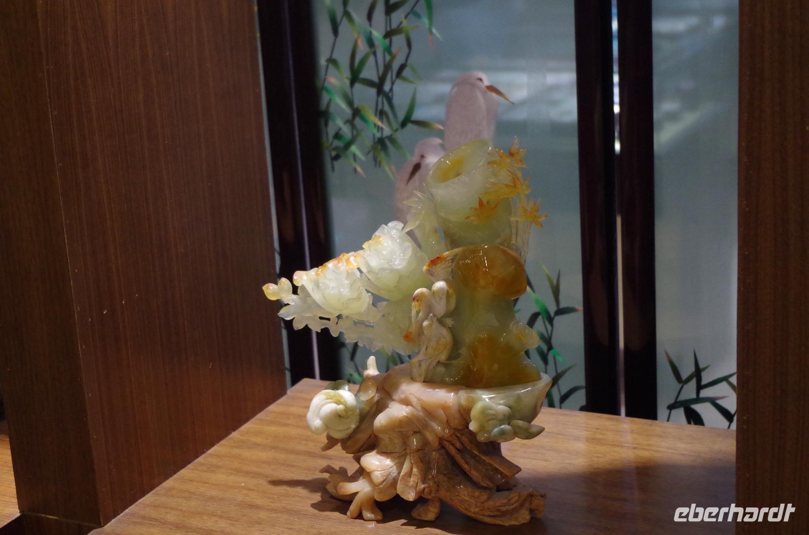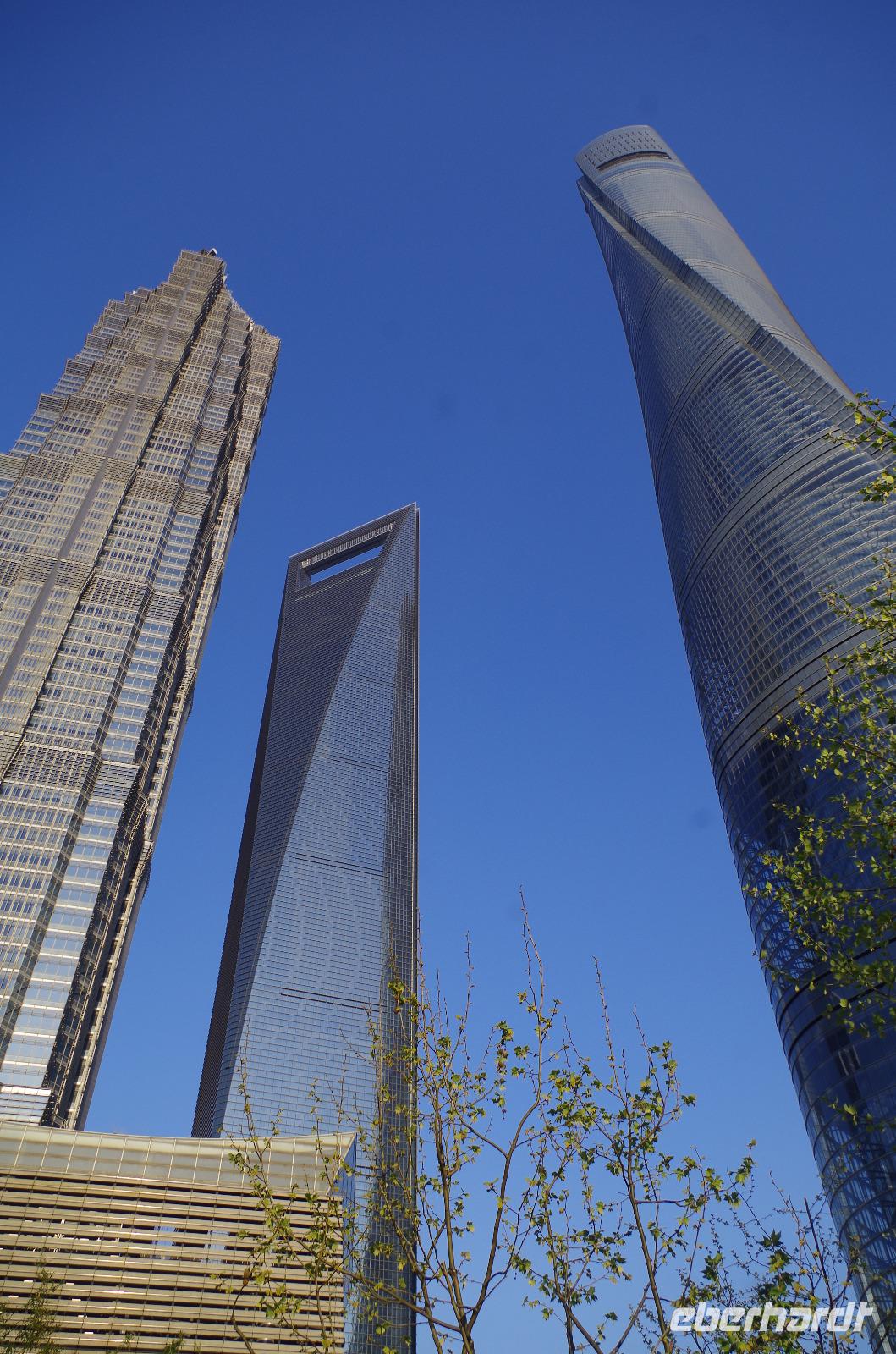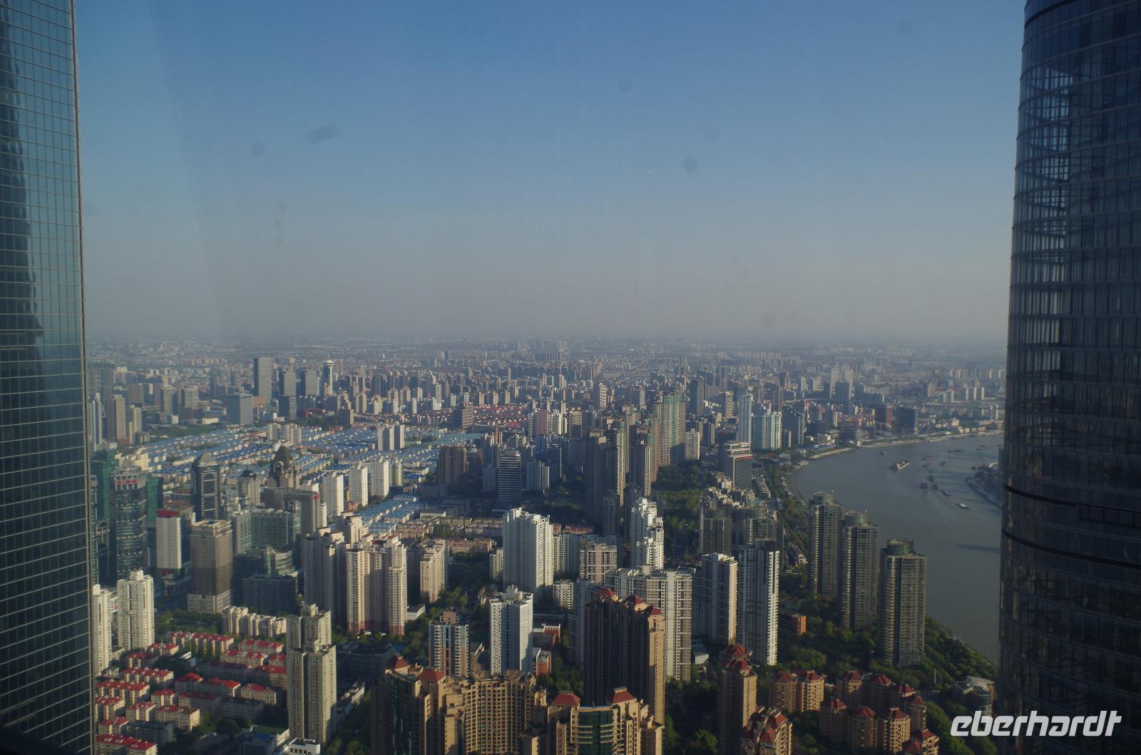 Der letzte Morgen auf chinesischem Boden und so heißt es nach Frühstück und Kofferpacken zum letzten Mal Check-out aus dem Hotel und beladen der Koffer im Bus. Mit zwei weiteren Reiselustigen, die sich heute unserer Gruppe anschlossen spazieren wir zunächst durch das direkt hinter unserem Hotel liegende japanische Viertel und gewinnen so ein Bild von China abseits touristischer Pfade. Besonders das angelegte Charlie Chaplin-Haus mit einer Statue des Schauspielers davor ist eine schöne Kleinigkeit, die uns alle schmunzeln lässt. Anschließend fahren wir ins Shanghai-Museum, welches die Geschichte der Region in Schrift, Bild und Plastik erzählt. Über Mittag verbringen wir etwas Zeit auf der Nanjing-Geschäftsstraße. Hier reihen sich noble Boutiquen an weltweit verbreitete Markenketten und in den Nebengässchen finden sich kleine Händler, die Ihre Waren feilbieten. Letztlich soll es noch hoch hinaus gehen. Wir fahren mit einem der schnellsten Fahrstühle auf den Jin Mao-Turm inmitten Shanghais hinauf, der mit seinen 420,5m Höhe zu den höchsten Bauwerken der Welt zählt. Im 88 Stockwerk haben wir auf der Aussichtsplattform eine tolle Aussicht und auch unser Eberhardt-Reisebärchen entpuppt sich als schwindelfrei. Inmitten des Turms kann man in die Lobby des Grand Hyatt Shanghai-Hotels hinabschauen, welches mit seinen 555 Räumen auf 35 Stockwerken einst das höchstgelegene Hotel der Welt war. Zum Abend müssen wir den Turm natürlich wieder verlassen und laufen vom Turm noch einmal zum Bund. Gerade bei Sonnenuntergang haben wir einen phantastischen Blick auf die Skyline von Shanghai mit Blick auf das französische Viertel. Ein letztes gemeinsames Abendessen verwöhnt uns noch einmal mit zahlreichen chinesischen Spezialitäten und Chris hat für uns eine kleine Überraschung vorbereitet. So können wir einmal mit typisch chinesischem Reisschnaps mit 55 Vol.% anstoßen und eine kleine Süßigkeit aus Wallnuss und Erdnuss kosten. Ein letztes Mal steigen wir zu Herr Zhu in den Bus, der uns zum Transrapid-Zug bringt. Mit dem Transrapid fahren wir anschließend zum Flughafen von Shanghai und verabschieden uns nach dem Check-In unter vielen „Danke" und „Toll gemacht!" von Josef, der uns die letzten Tage und rund um die Uhr in allen Situationen umsorgt hat. Die letzten Yuan werden am Flughafen noch ausgegeben und um Mitternacht heben wir ab in Richtung Deutschland. In Frankfurt heißt es dann auch Abschied nehmen von Chris und den anderen Reisenden. Diese Reise werden wir so schnell nicht vergessen und mit vielen Eindrücken vom Milliarden-Menschen-Land China und mit den Koffern voll Andenken erreichen wir unseren Heimathafen.