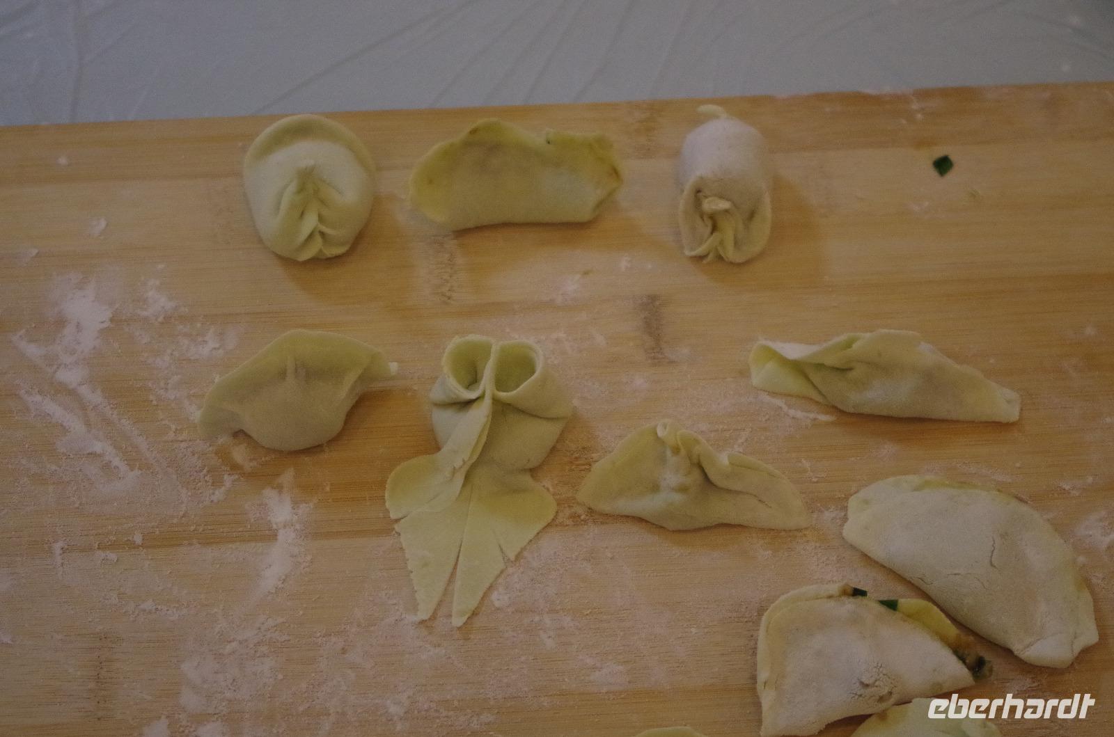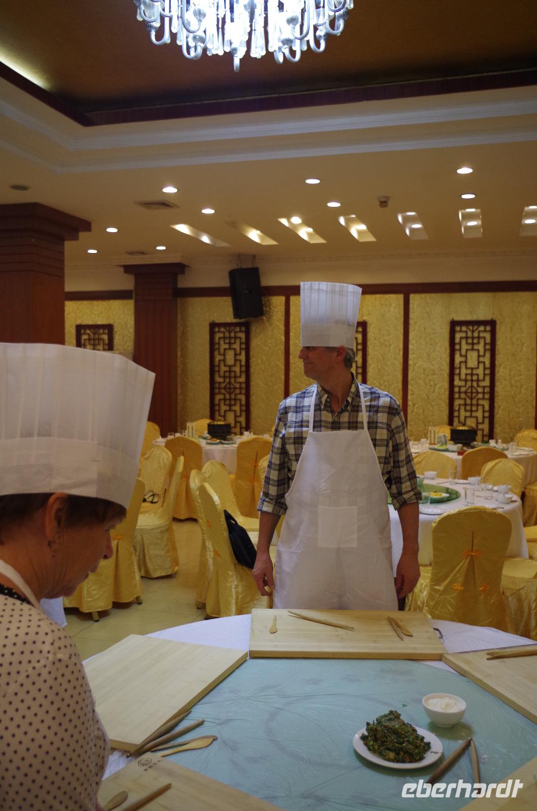 Der nächste Reisetag verheißt erneut schönes Wetter, angenehme Temperaturen und ein ganz besonderes Highlight. Am Morgen fahren wir zur Großen Wildganspagode und scheinen beim Eintritt in die Anlage in einen Bienenstock gestiegen zu sein. Zahlreiche Mönche und Gläubige singen-summen im Einklang ihre Gebete und die Stimmen vibrieren noch lange nach deren Verstummen in uns nach. Die Anlage als Geschenk des 3. Tang-Kaisers an seine Mutter ist mit seinen sieben Stockwerken noch in Ihrem originalen Zustand aus dem Jahre 652 n. Chr. erhalten. Die Tempelanlage ist mit ihren zugehörigen Gebäuden und vielen Buddha- und Bodhisattwa-Darstellungen ausgesprochen eindrucksvoll und besonders die Schüler des Mönchs Xuanzang, der hier viele buddhistische Schriften übersetzte, füllten die umliegenden Hallen mit zahlreichen Kostbarkeiten. Wir fahren weiter und besuchen eine Jadeschleiferei. Hier werden uns die Besonderheiten von Jade und besonders der unterschiedlichen Qualitäten erklärt und auch, dass Jade nicht immer grün sein muss. Wunderbar gestaltete Statuen, Schmuck und sogar Tischuntersetzer und Brunnen sind aus dem kostbaren Stein gehauen und wir nutzen die Möglichkeit um einige Kleinigkeiten für die Daheimgebliebenen oder doch uns selbst zu erwerben. Wir fahren weiter zu der wohl beeindruckendsten archäologischen Entdeckung in ganz China - die Terrakotta-Armee. Eingebettet zwischen Berg und Fluss liegt die zum größten Teil noch nicht ausgehobene Grabanlage unweit von Xi'an und ist Grablege des ersten Kaisers der Chin-Dynastie (*259- † 210 v. Chr.). Bevor wir jedoch die Ausgrabungsstätten betreten, stärken wir uns bei einer Teezeremonie mit ausgefallenen und sehr leckeren chinesischen Tee-Zeremonien, die von Chrysantheme-, über Grünen- bis zu Konkubinen-Tee reicht. Chris durfte hier wieder übersetzen und wir alle probierten die verschiedenen Teesorten, die teils mild, teils fruchtig schmeckten. Direkt im Anschluss machten wir uns auf durch die prächtig angelegte Gartenanlage und hinein in die überdachten Ausgrabungshallen, die über den Grabungsstellen errichtet wurden. Neben der großen ersten Halle, welche die menschengroßen Statuen beinhaltet sind zwei weitere Hallen teilweise ausgegraben. Die eigentliche Grablege des ersten Kaisers ist bisher noch nicht geöffnet worden, da die Überreste der darin enthaltenen Stücke und des Kaisers nicht lange überdauern würden, setze man sie frei. So bestaunten wir neben tausend anderer Schaulustiger die riesigen Ausmaße besonders der ersten Halle und können uns nur über die eigentliche Größe der gesamten Anlage wundern, während wir die vollkommen unterschiedlichen Gesichter der aufgereihten Soldaten betrachten. Nach der ausgiebigen Besichtigung fahren wir zurück nach Xi'an und versuchen uns selbst einmal an der Zubereitung von Maultaschen. Eine professionelle Köchin führt uns das Ausrollen, befüllen und Zusammenfalten der Taschen vor und unter ihren Händen entstehen gar lustige kleine Kreationen wie Schweine, Schwäne und Blüten. Die Unseren stehen diesen natürlich in nichts nach! Doch zum Verzehr taugen sie letztlich doch nichts und wir greifen lieber auf die faszinierenden Variationen aus der Küche zurück. Wenigstens sahen wir alle toll aus in unseren Schürzen und den Kochmützen!