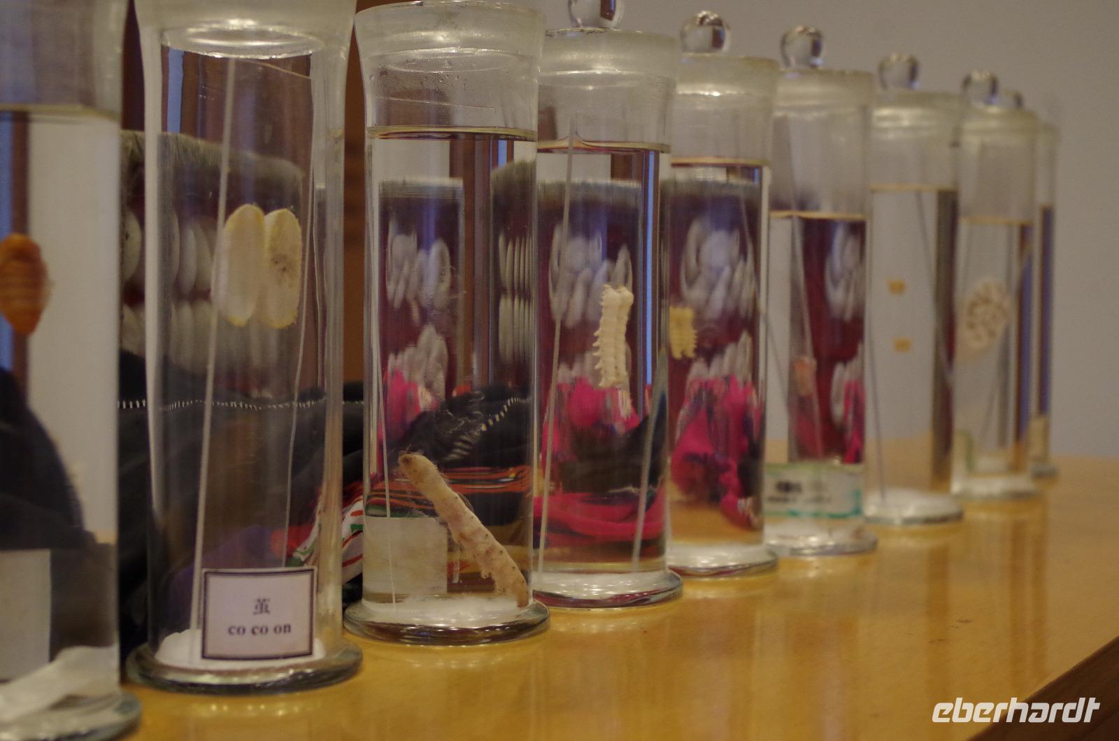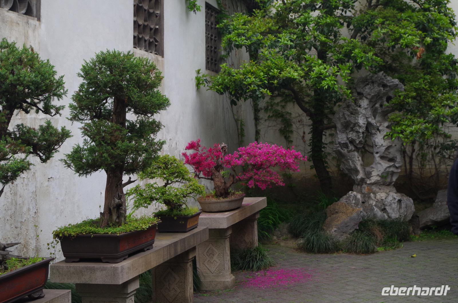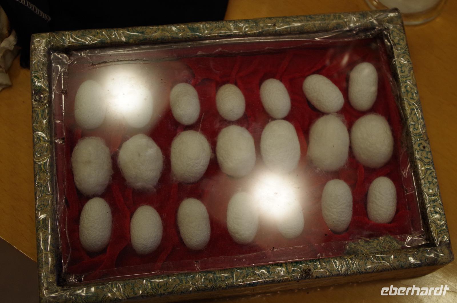 Nach einer erholsamen Nacht und einem guten Frühstück fahren wir vom Hotel ab und zunächst zum Kaiserkanal und zur Anlegestelle in der Nähe der Marco Polo-Brücke. Bei einer Bootsfahrt auf dem Kaiserkanal sehen wir links und rechts zahlreiche schöne Bauten. Suzhou besitzt durch sein weitverzweigtes Kanalsystem über 1.000 Brücken und vom Wasser aus sieht man eine Stadt doch wieder aus ganz anderen Augen. Anschließend fahren wir zum Garten des Meisters der Fischernetze, der seit seiner Errichtung 6-mal den Besitz wechselte. Der verhältnismäßig kleine Garten mit „nur" 0,8 Hektar ist zu 447m² als Wasserfläche angelegt und ein vorbildhaftes Beispiel für chinesische Gartenbaukunst. Die angrenzenden Räume mit den großen Steinstatuen, der hölzerne Pavillon und besonders die „Drei-Schritte-Brücke" stehen in einem tollen Zusammenspiel und spiegeln sich neben blühendem Flieder im Wasser des angelegten Sees. Wir schlendern durch die zahlreichen „Häuser" und lassen uns durch Josef in die Zeit der großen chinesischen Denker zurückversetzen, die ihre Zeit hier zum Schreiben, Arbeiten und auch Entspannen nutzten. Nach unserem Spaziergang durch den Garten fahren wir zu einer Seidenmanufaktur in welcher wir zunächst die verschiedenen Entwicklungsstadien der Seidenraupe sehen können und anschließend die Produktionsstätten besichtigen können, in welcher aus den kleinen Kokons der Raupe die Seide aufgezogen wird um später durch eine Maschine zu Garn gesponnen zu werden und auf einem Webstuhl in die wunderbarsten Motive verwebt werden. Die Herstellung einer Seidendecke erproben wir selbst einmal aus und stellen fest, wieviel Kraft diese Arbeit tatsächlich kostet. Im Werksverkauf können wir anschließend selbst einige Seide-Artikel erwerben und besonders die bunten Tücher sind ein willkommenes Geschenk für uns selbst und die Lieben zu Hause. Im Anschluss fahren wir nach Shanghai weiter, wo wir am Abend ankommen.
