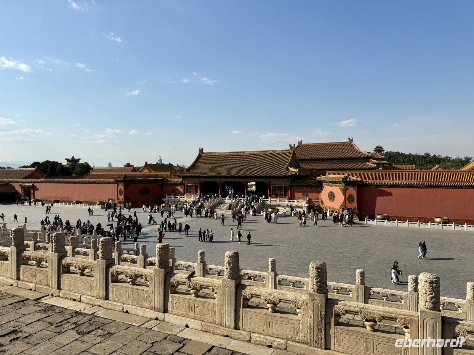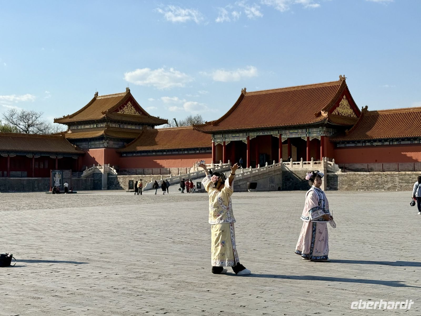 Da wir nicht allzu spät ankamen, stand noch ein echtes Highlight auf dem Programm: der Besuch des Kaiserpalasts, besser bekannt als die Verbotene Stadt. Dieser imposante Palastkomplex war jahrhundertelang der Regierungssitz der chinesischen Kaiser und gilt als größtes und best erhaltenes Beispiel traditioneller chinesischer Palastarchitektur. Über 800 Gebäude mit fast 9.000 Räumen, goldene Dächer und kunstvoll gestaltete Höfe lassen Besucher eintauchen in die Pracht und den Prunk des kaiserlichen Chinas.