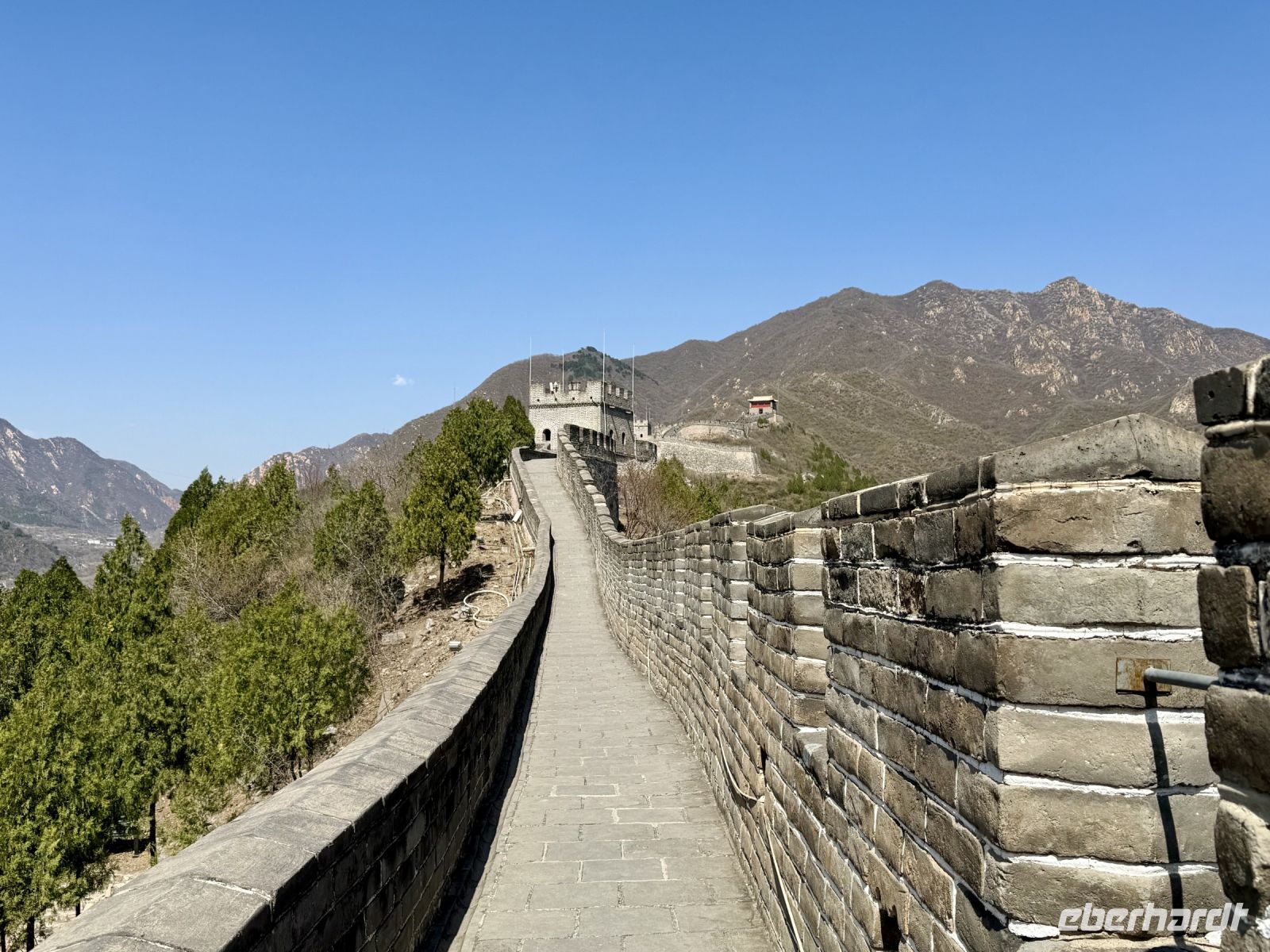 Für etwa zwei Stunden hatten wir die Gelegenheit, die Große Mauer zu erkunden. Wir erklommen einige der steilen Stufen, genossen die spektakuläre Aussicht auf die umliegende Berglandschaft und freuten uns über das herrliche Wetter, das diesen Moment noch besonderer machte.