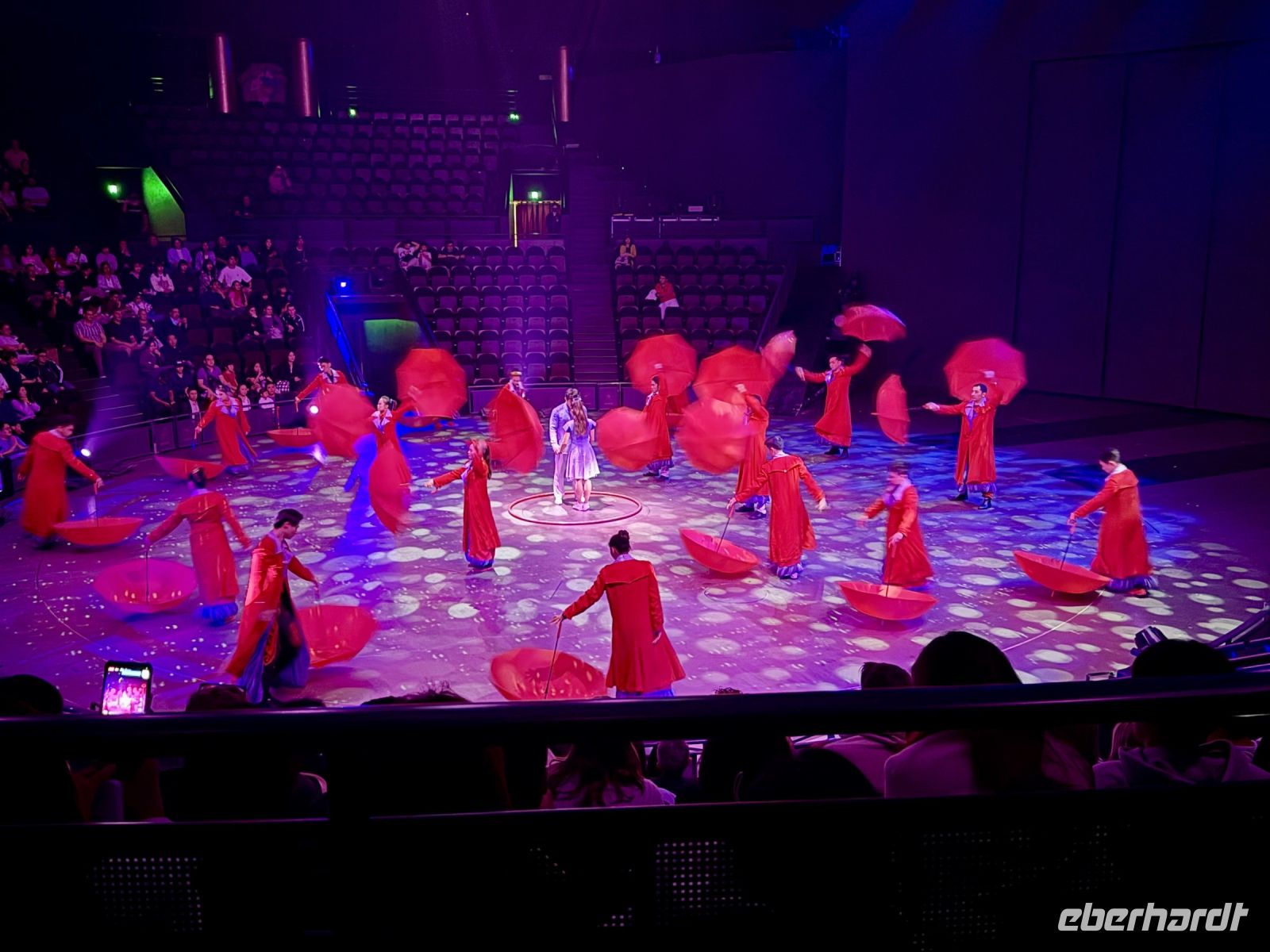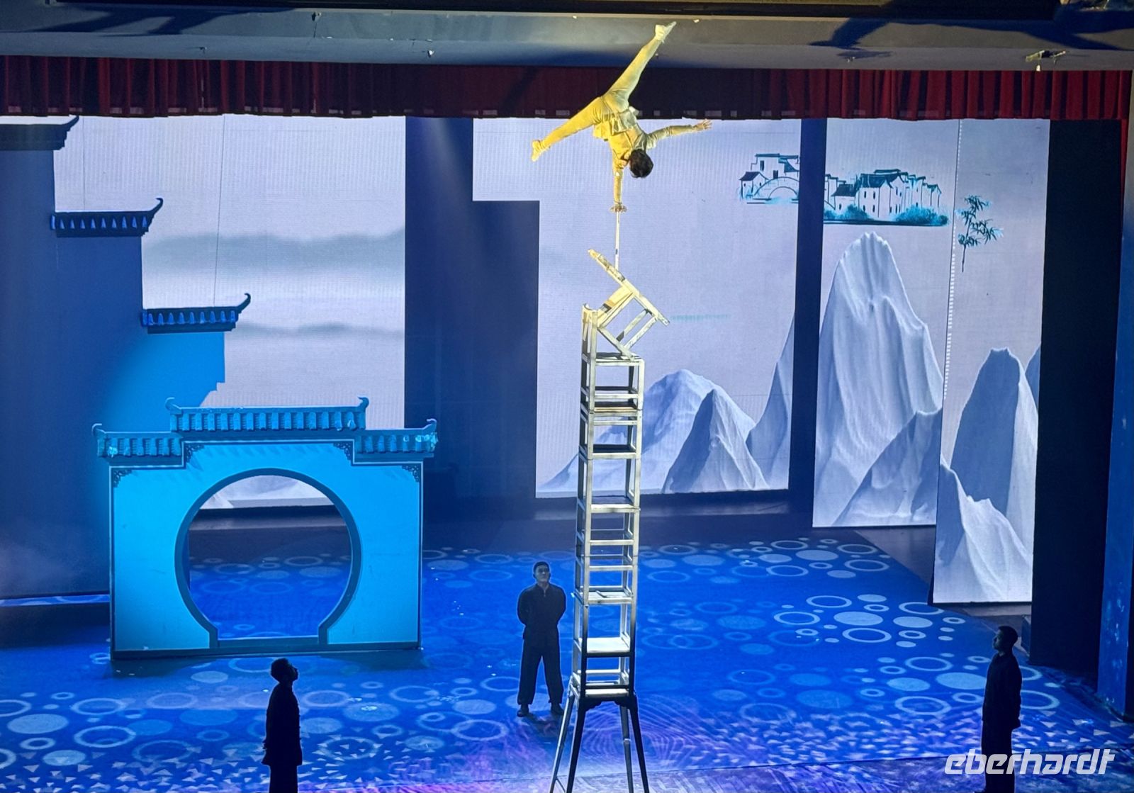 Zum Abschluss dieses erlebnisreichen Tages stand noch einmal ein echter Höhepunkt auf dem Programm: der Besuch einer Akrobatikshow, für die China weltweit bekannt ist. Die Show bestach nicht nur durch die unglaubliche Körperbeherrschung, Präzision und Geschmeidigkeit der Artisten, sondern auch durch ein aufwendig gestaltetes Bühnenbild und eine stimmungsvolle Licht- und Musikuntermalung. Die Darbietungen reichten von atemberaubender Trapezkunst bis hin zu Balanceakten, die uns alle den Atem anhalten ließen. Besonders beeindruckend war die Eleganz, mit der scheinbar mühelos menschliche Grenzen überwunden wurden — ein würdiger und glanzvoller kultureller Abschluss für unseren Aufenthalt in dieser faszinierenden Stadt.
