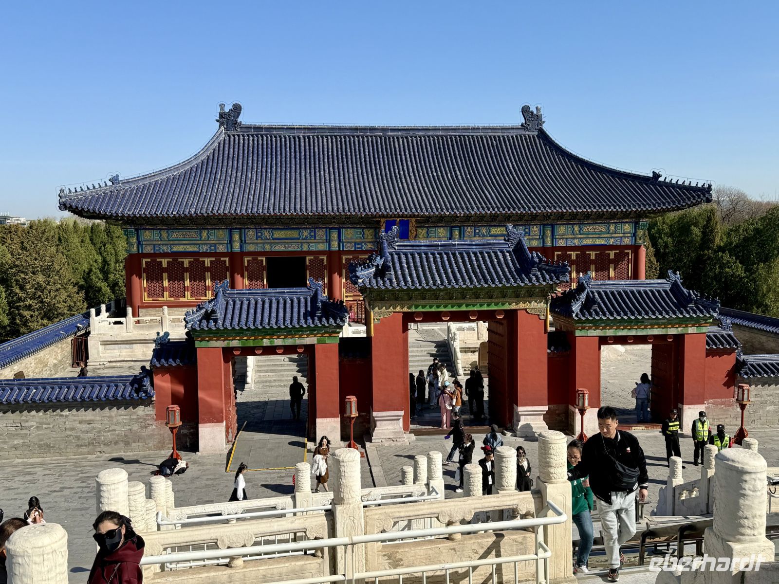 Der erste Programmpunkt des heutigen Tages führte uns zum berühmten Himmelstempel, einem der bedeutendsten Wahrzeichen Pekings. Der Himmelstempel, erbaut im 15. Jahrhundert während der Ming-Dynastie, diente einst den chinesischen Kaisern als rituelle Stätte, um für eine gute Ernte zu beten. Die Tempelanlage ist ein Meisterwerk traditioneller chinesischer Architektur und beeindruckt nicht nur durch ihre harmonische Bauweise, sondern auch durch die symbolische Bedeutung ihrer kreisrunden und quadratischen Formen, die für den Himmel und die Erde stehen. Besonders das imposante Hallengebäude — die „Halle des Erntegebets“ — mit seinem blauen, glasierten Dach, zählt zu den bekanntesten Fotomotiven der Stadt.