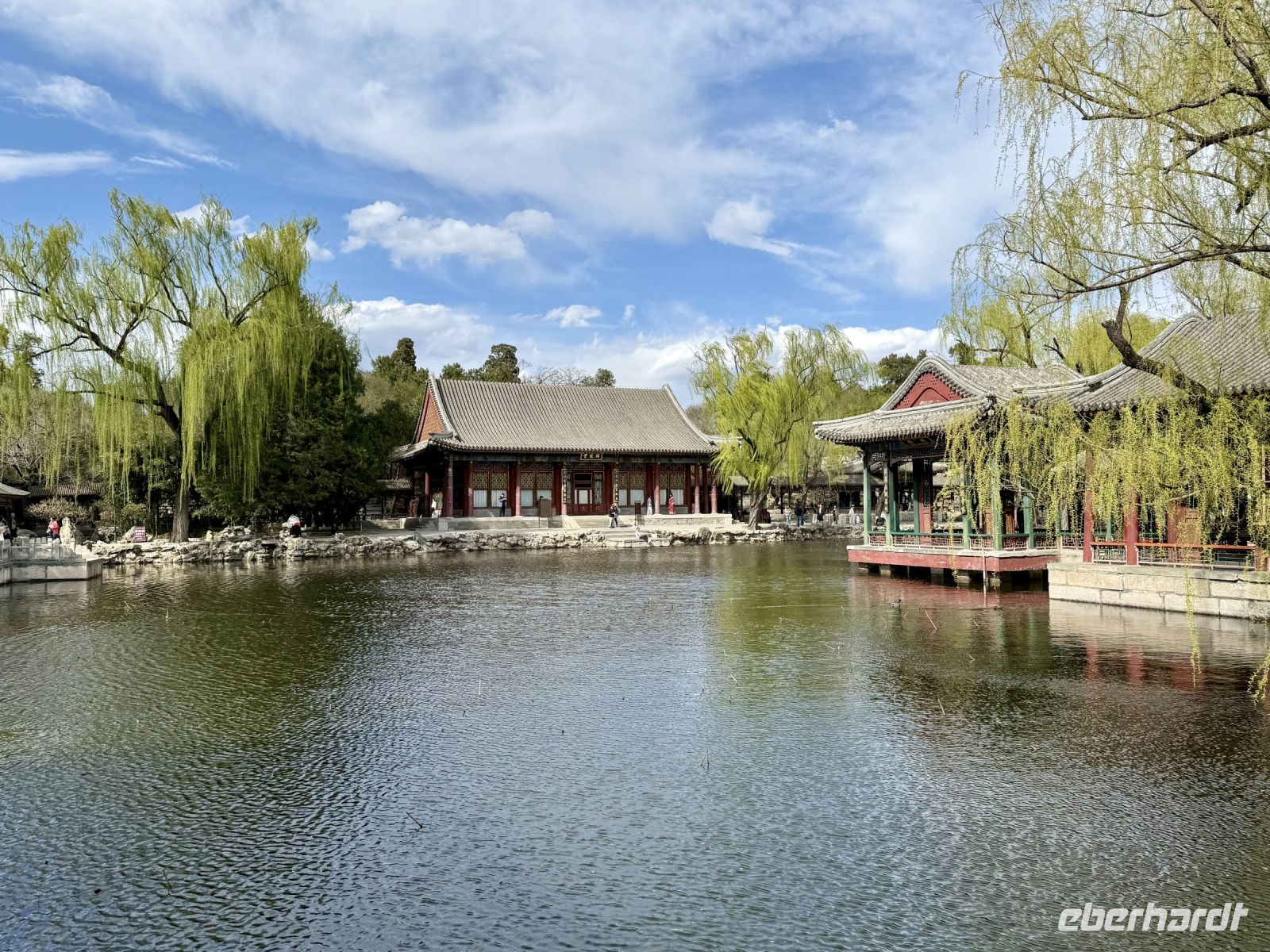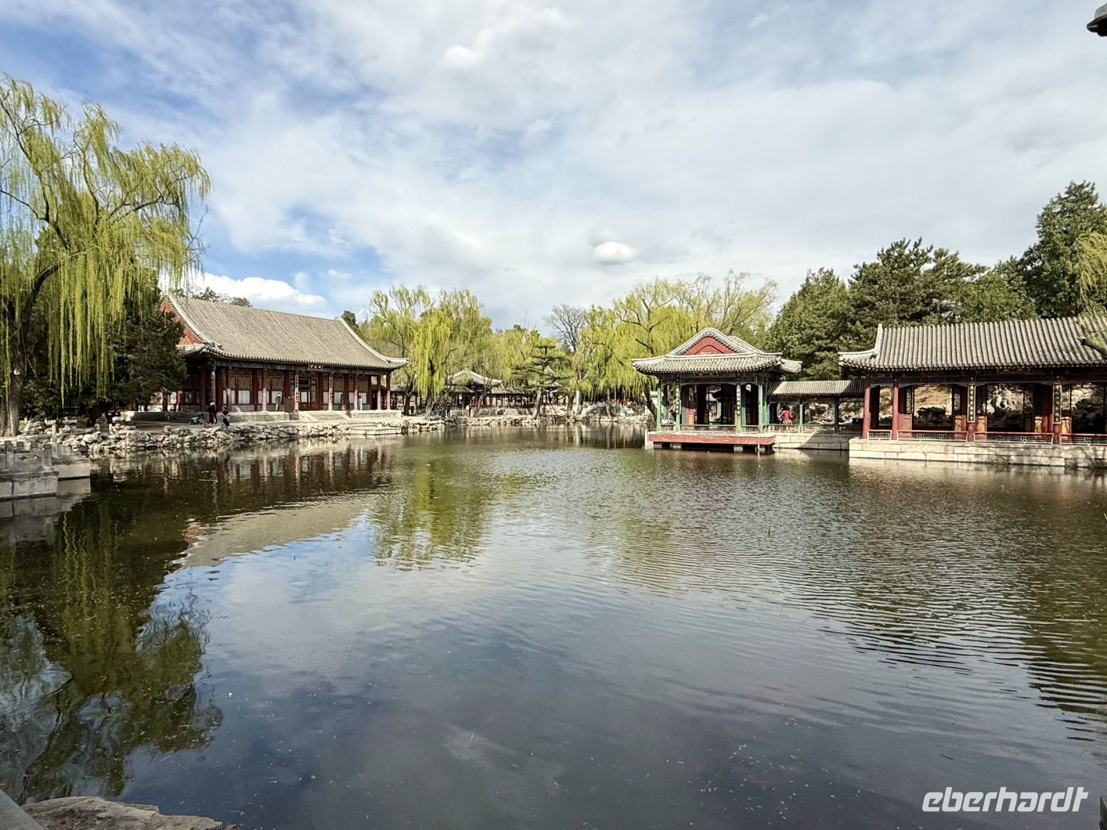 Am Nachmittag folgte ein weiterer kultureller Höhepunkt: der Sommerpalast. Diese weitläufige kaiserliche Gartenanlage liegt im Nordwesten Pekings und diente den Kaisern der Qing-Dynastie als Rückzugsort während der heißen Sommermonate. Der Palast ist berühmt für seine kunstvoll angelegten Gärten, den malerischen Kunming-See, die kunstvoll verzierte „Lange Galerie“ und die steinernen Brücken. Der Sommerpalast gehört heute zum UNESCO-Weltkulturerbe und ist ein eindrucksvolles Beispiel für die hohe Gartenbaukunst und Architektur des alten China.
