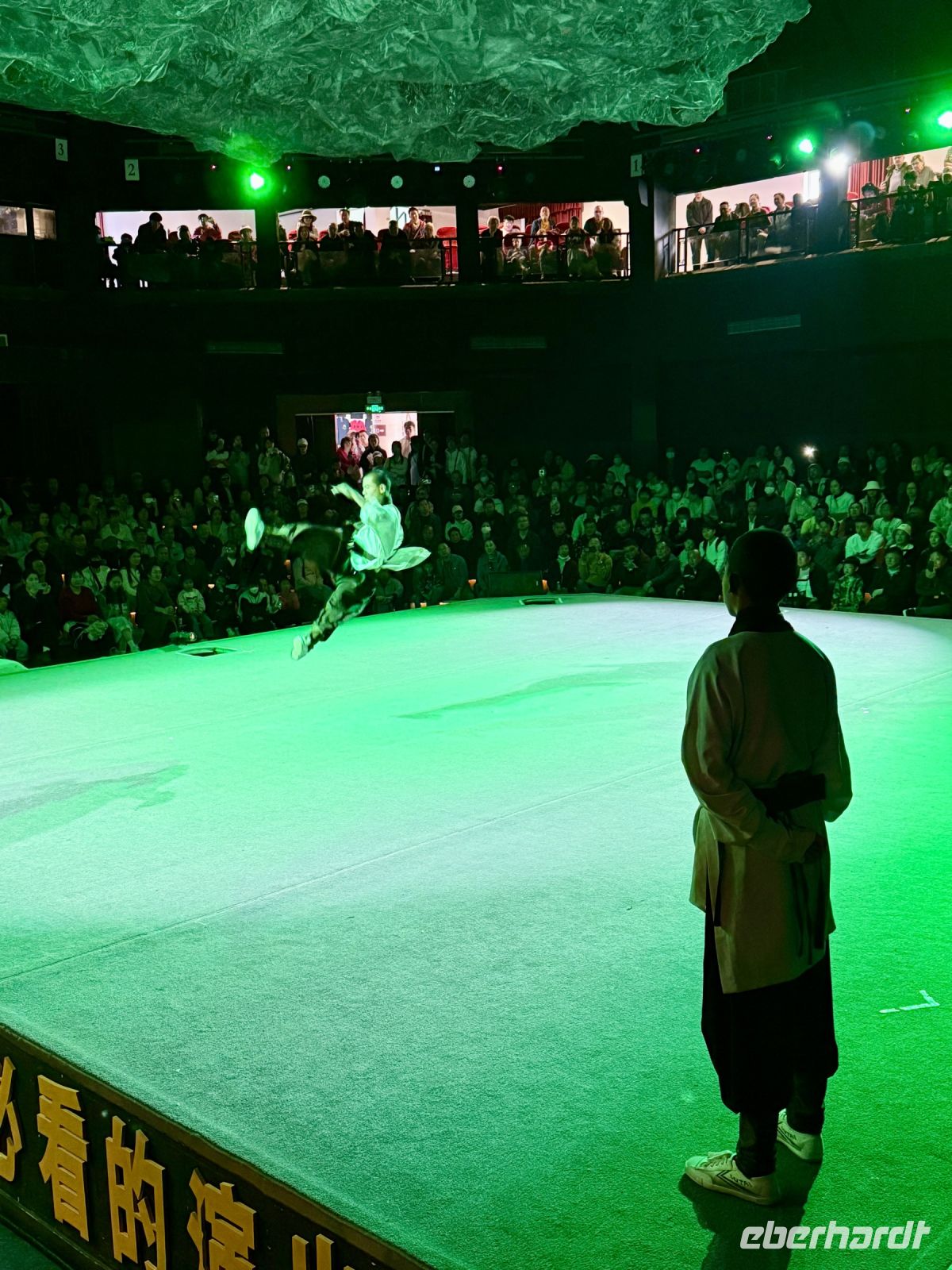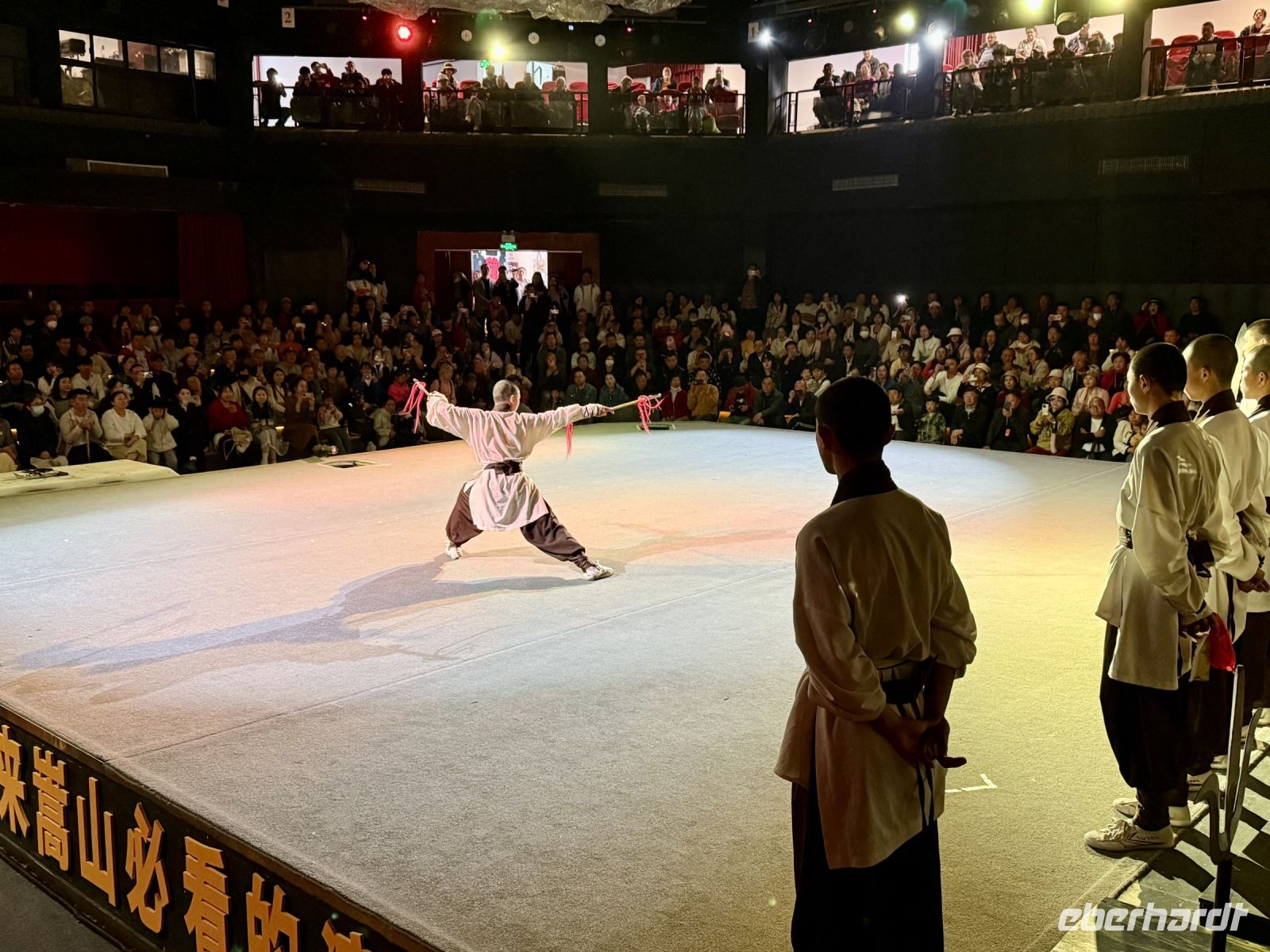 Ein besonderes Highlight unseres Besuchs war der Besuch einer faszinierenden Kung-Fu-Show, bei der die Schüler und Meister des Klosters ihr Können unter Beweis stellten. Mit beeindruckender Präzision, Körperbeherrschung und scheinbar müheloser Leichtigkeit präsentierten sie spektakuläre Bewegungen, Bruchtests und traditionelle Waffentechniken. Besonders staunten wir über die Balanceakte und die enorme Körperkontrolle, die ein Ergebnis jahrelanger, disziplinierter Ausbildung sind.