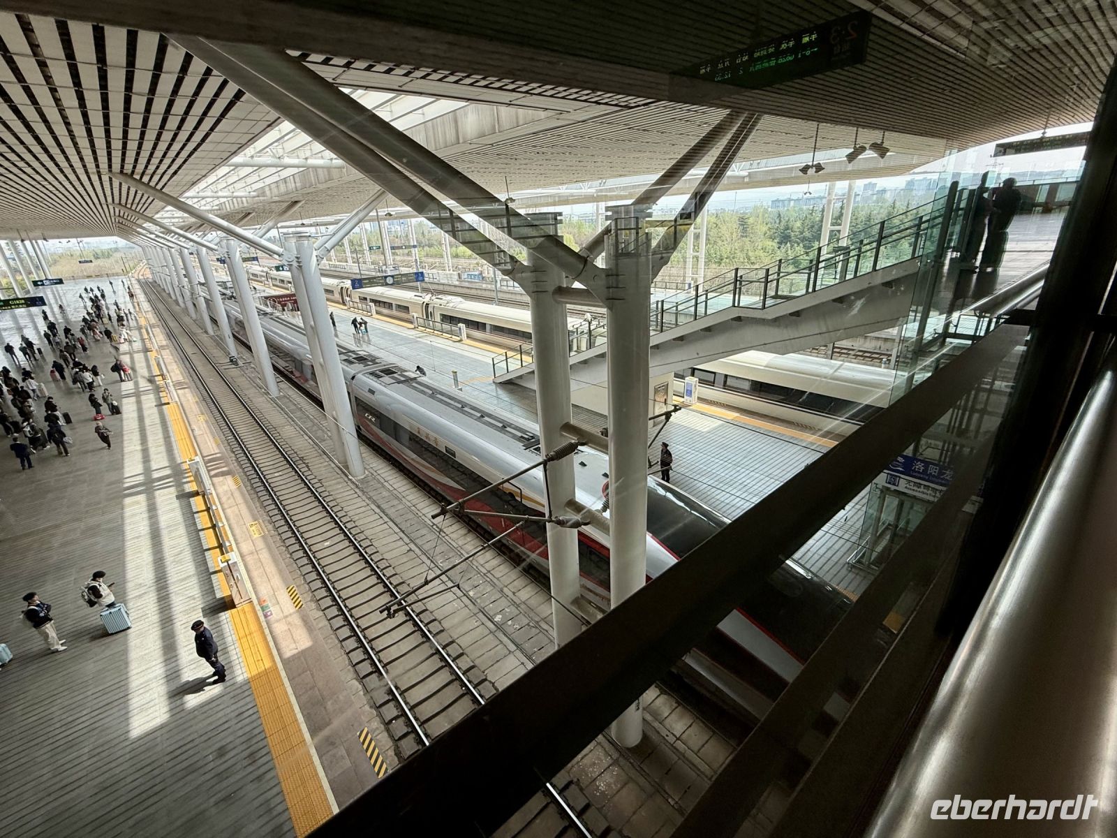 Am heutigen Tag stand ein besonderes Erlebnis auf dem Programm: Wir testeten eine weitere interessante Fortbewegungsmöglichkeit in China — eine Zugfahrt! Das chinesische Hochgeschwindigkeitszugnetz gilt als eines der modernsten der Welt. Mit Geschwindigkeiten von bis zu 350 km/h verbinden die Züge in kürzester Zeit große Distanzen zwischen den Metropolen des Landes. Unsere Fahrt führte uns zunächst nach Zhengzhou, einer bedeutenden Verkehrsdrehscheibe in der Provinz Henan.