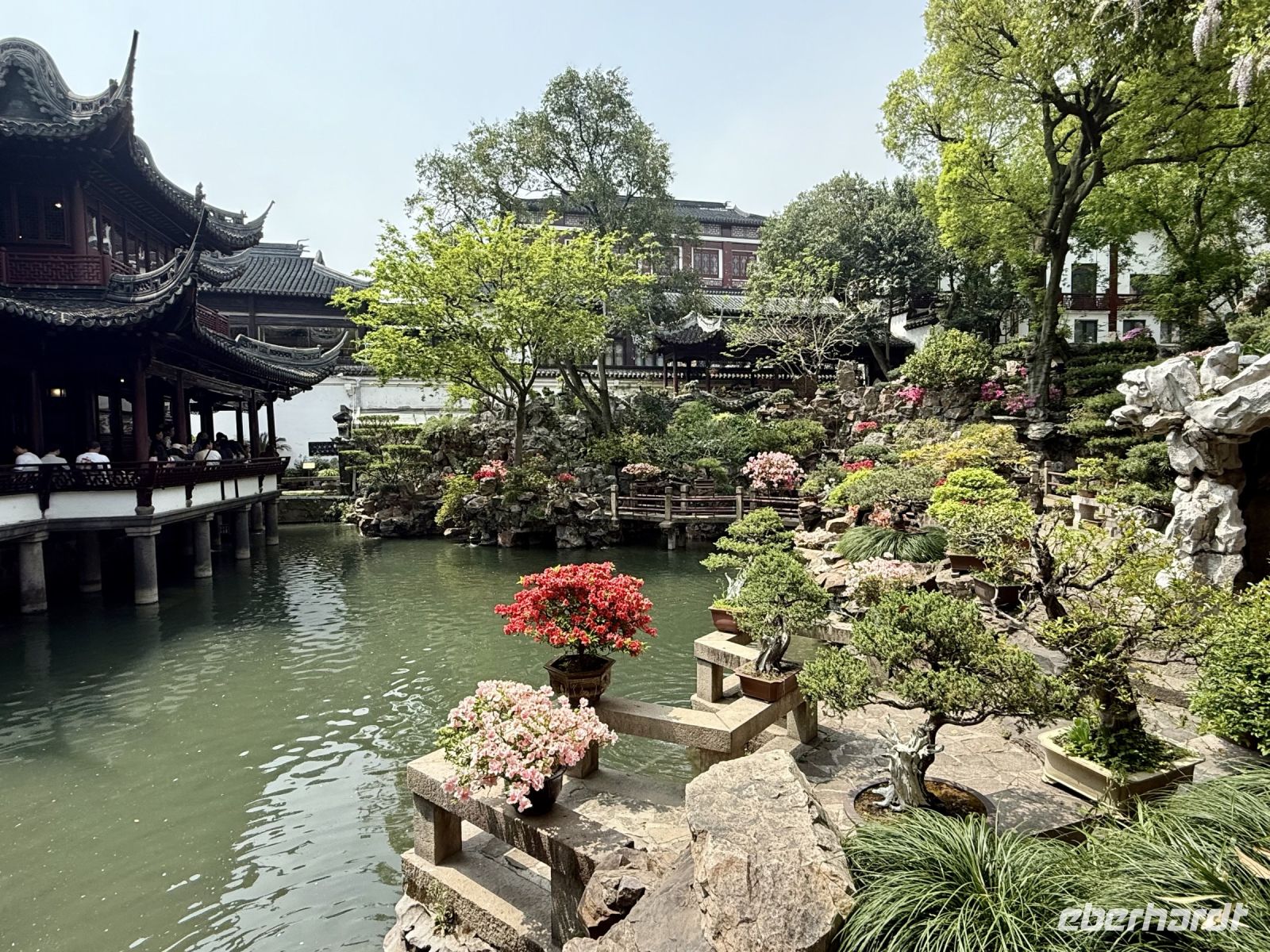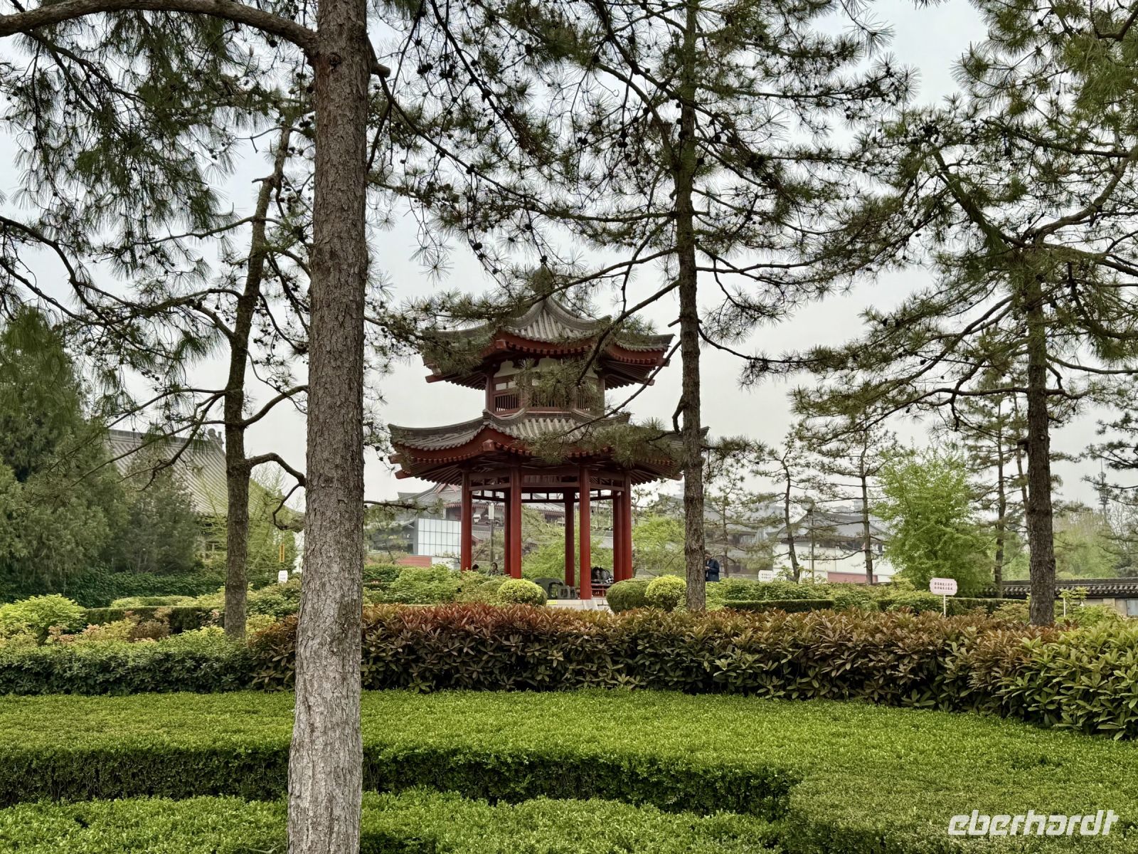 Ein besonders reizvoller Teil des Gartens war die Zickzack-Brücke, die mit ihren neun Winkeln nicht nur ein dekoratives Element darstellt, sondern auch symbolischen Charakter hat: In der chinesischen Kultur glaubt man, dass böse Geister nur gerade Wege gehen können — ein schlauer Trick also, um sie fernzuhalten! Zudem bot die Brücke wunderbare Perspektiven auf den angrenzenden Teich und die traditionell gestalteten Gebäude.