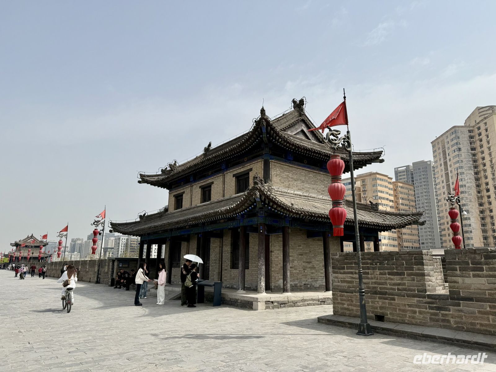 Anschließend erkundeten wir die Stadtmauer von Xi’an, eine der ältesten und am besten erhaltenen Stadtbefestigungen Chinas. Ursprünglich unter der Ming-Dynastie erbaut, erstreckt sich die Mauer über 13,7 Kilometer und umschließt das historische Stadtzentrum. Besonders beeindruckend sind die gut erhaltenen Wachtürme, Tore und die Möglichkeit, auf der Mauer spazieren zu gehen oder mit dem Fahrrad zu fahren.