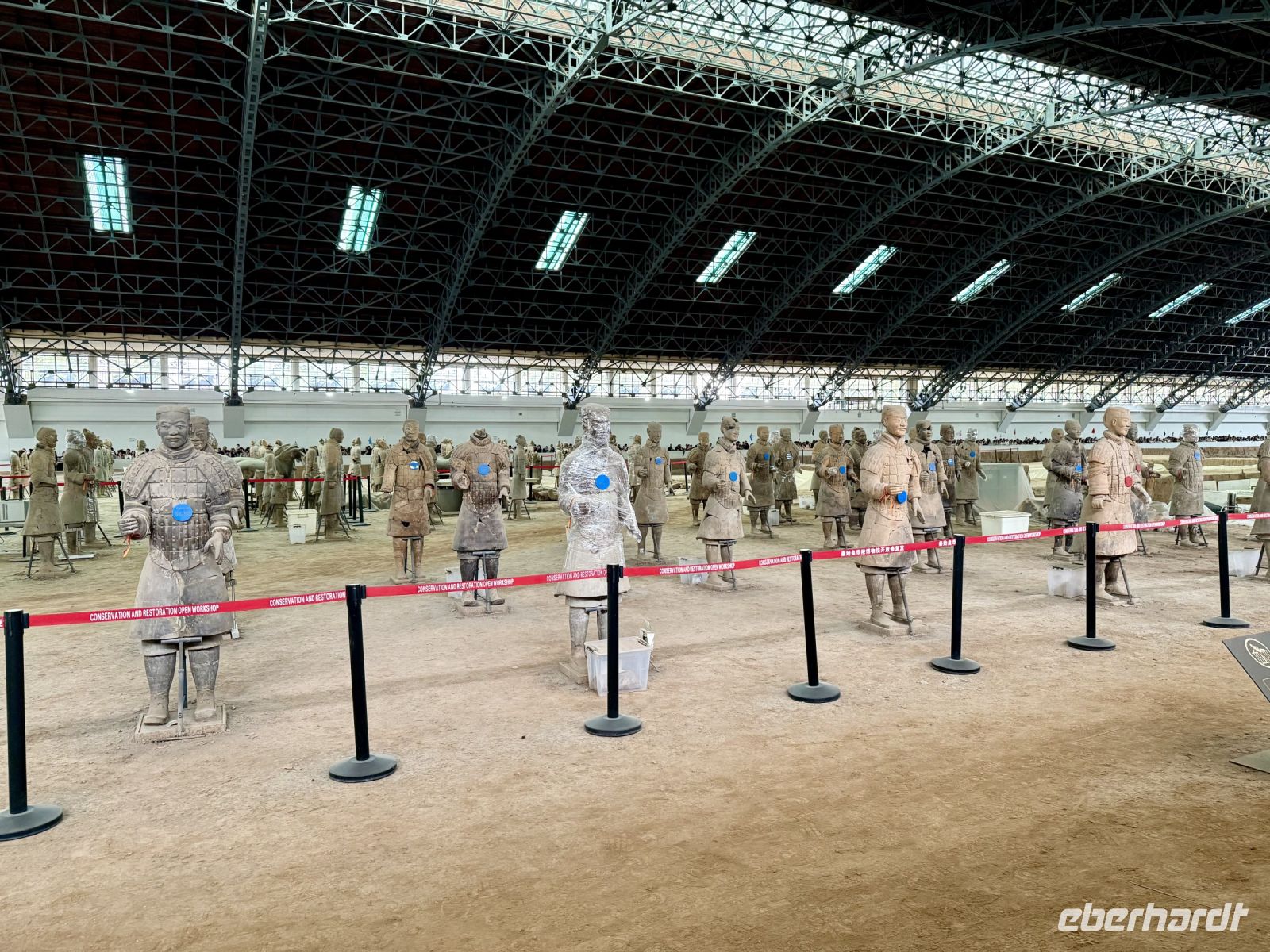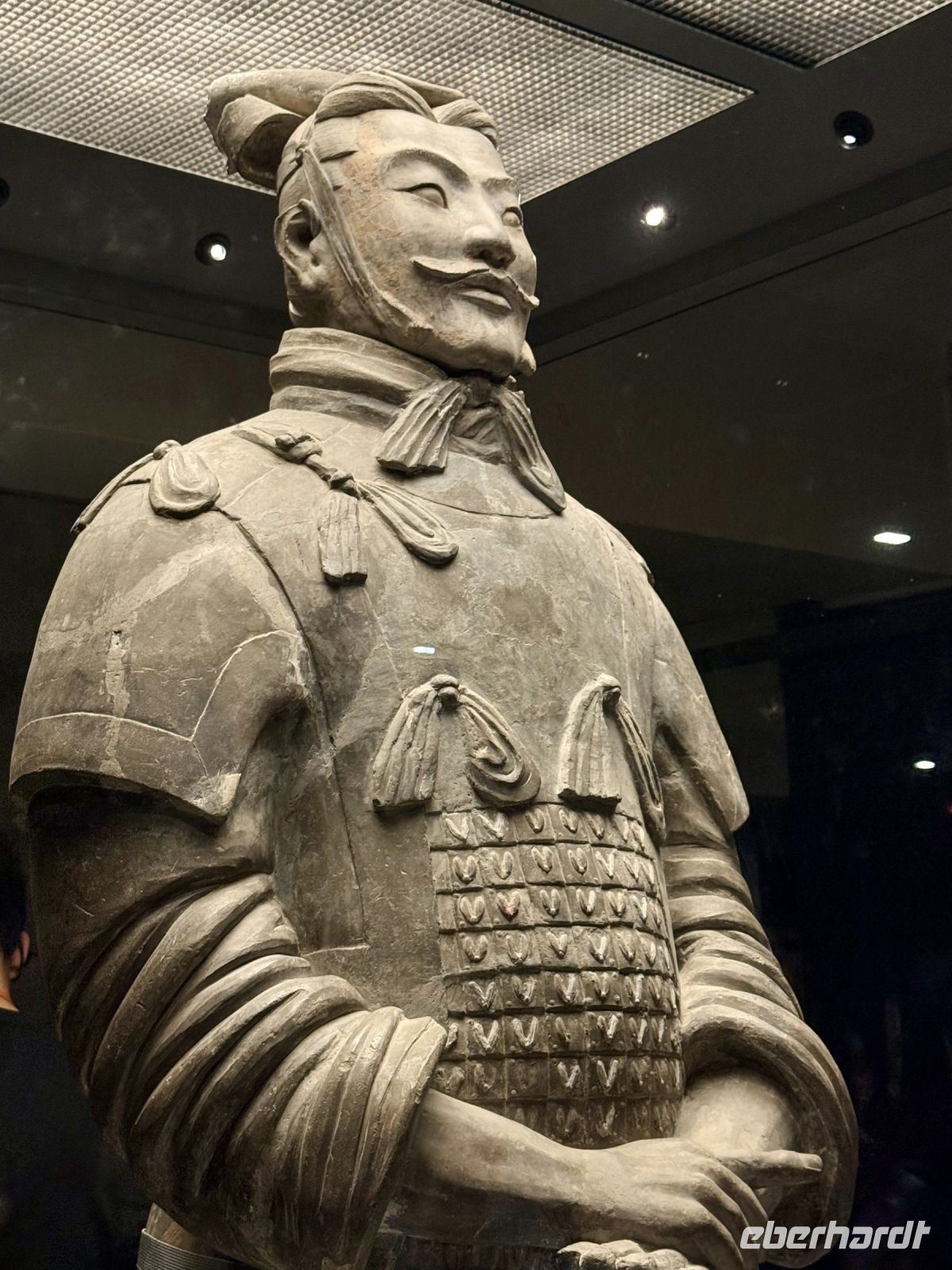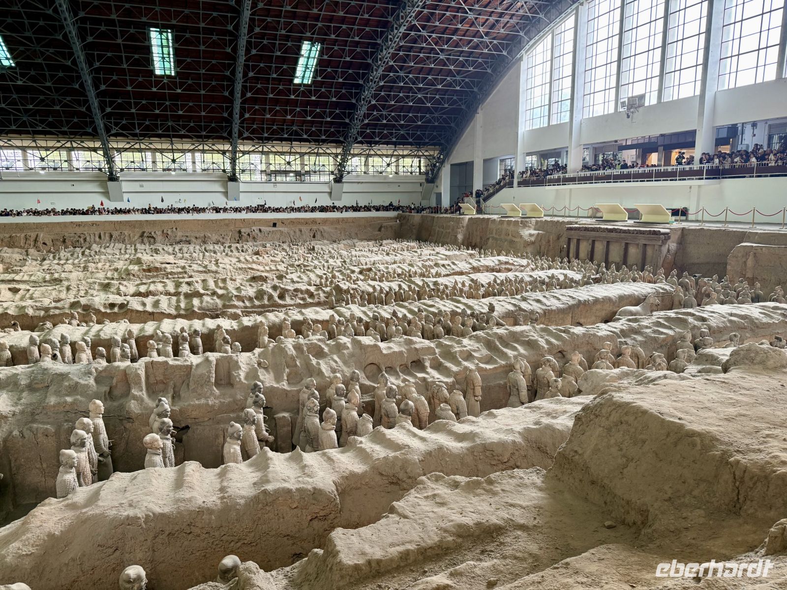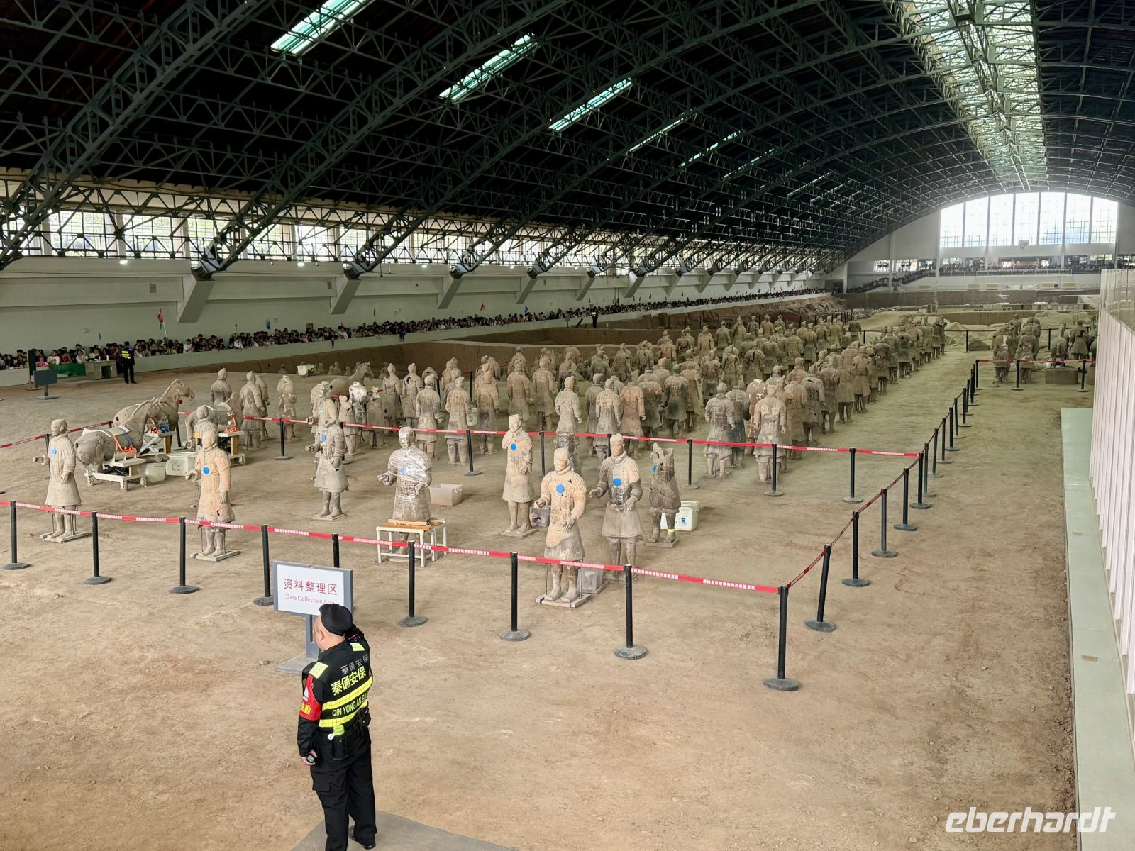Der Höhepunkt des Tages war der Besuch der Terrakotta-Armee in der Nähe von Lintong, etwa 40 Kilometer nordöstlich von Xi’an. Diese beeindruckende Sammlung von über 8.000 lebensgroßen Tonfiguren wurde 1974 von Bauern entdeckt und stellt die Armee des ersten Kaisers Chinas, Qin Shi Huang, dar. Die Figuren variieren in Größe und Aussehen, je nach Rang, und sollten dem Kaiser im Jenseits als Schutz dienen. Die Entdeckung gilt als eine der bedeutendsten archäologischen Funde des 20. Jahrhunderts.