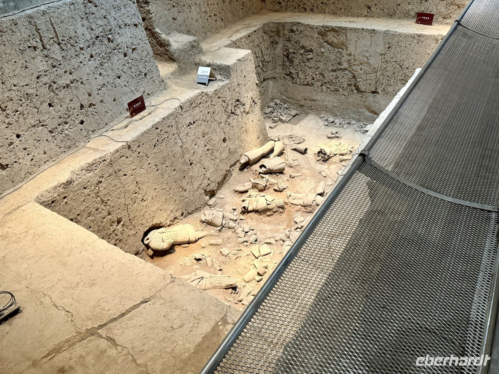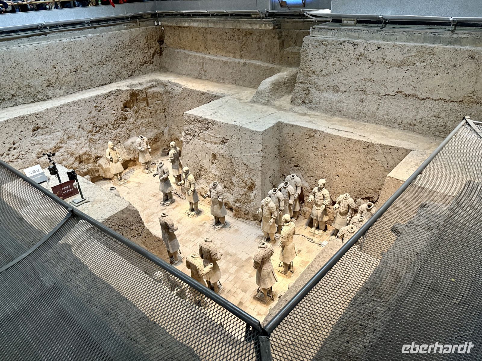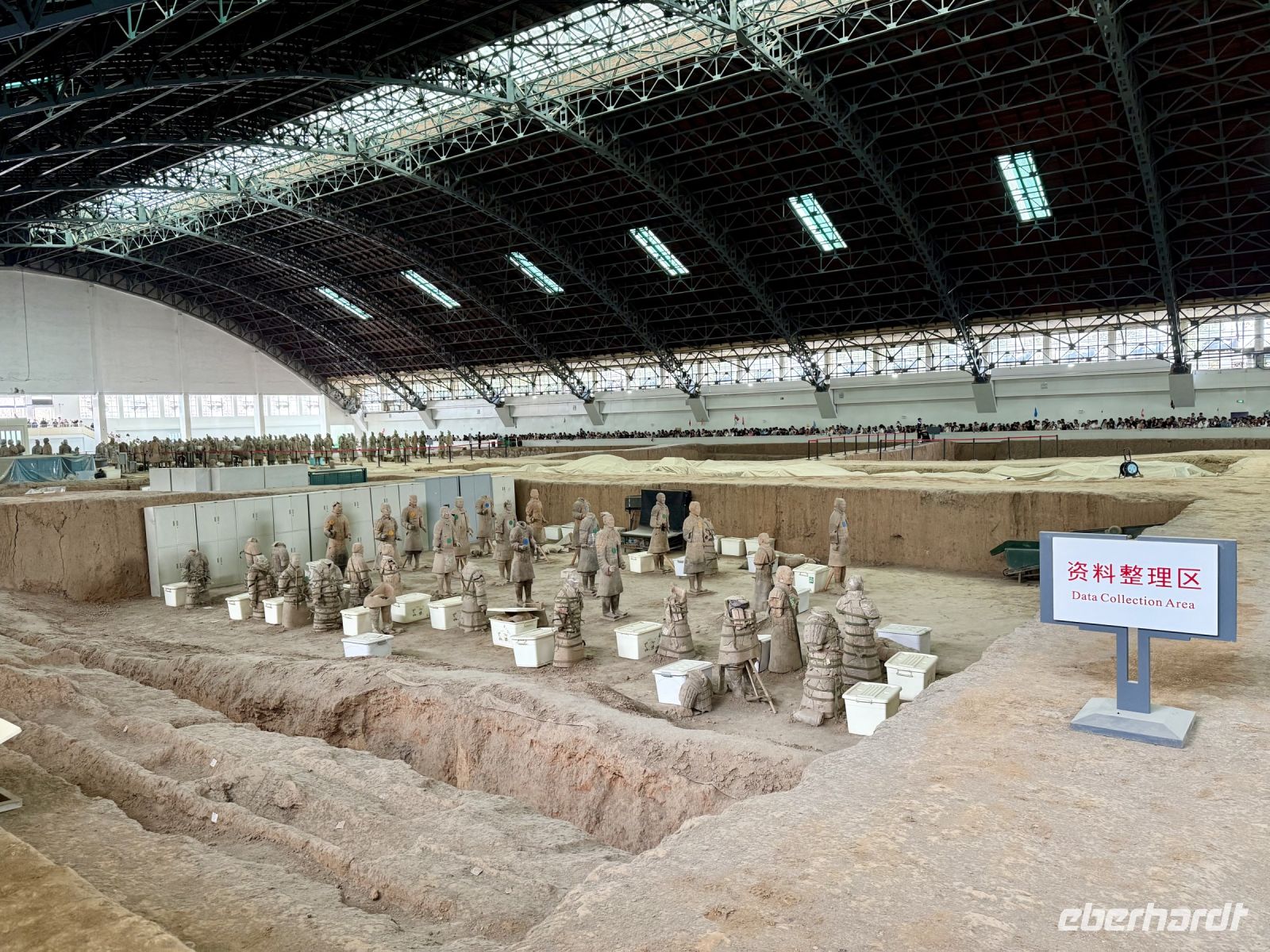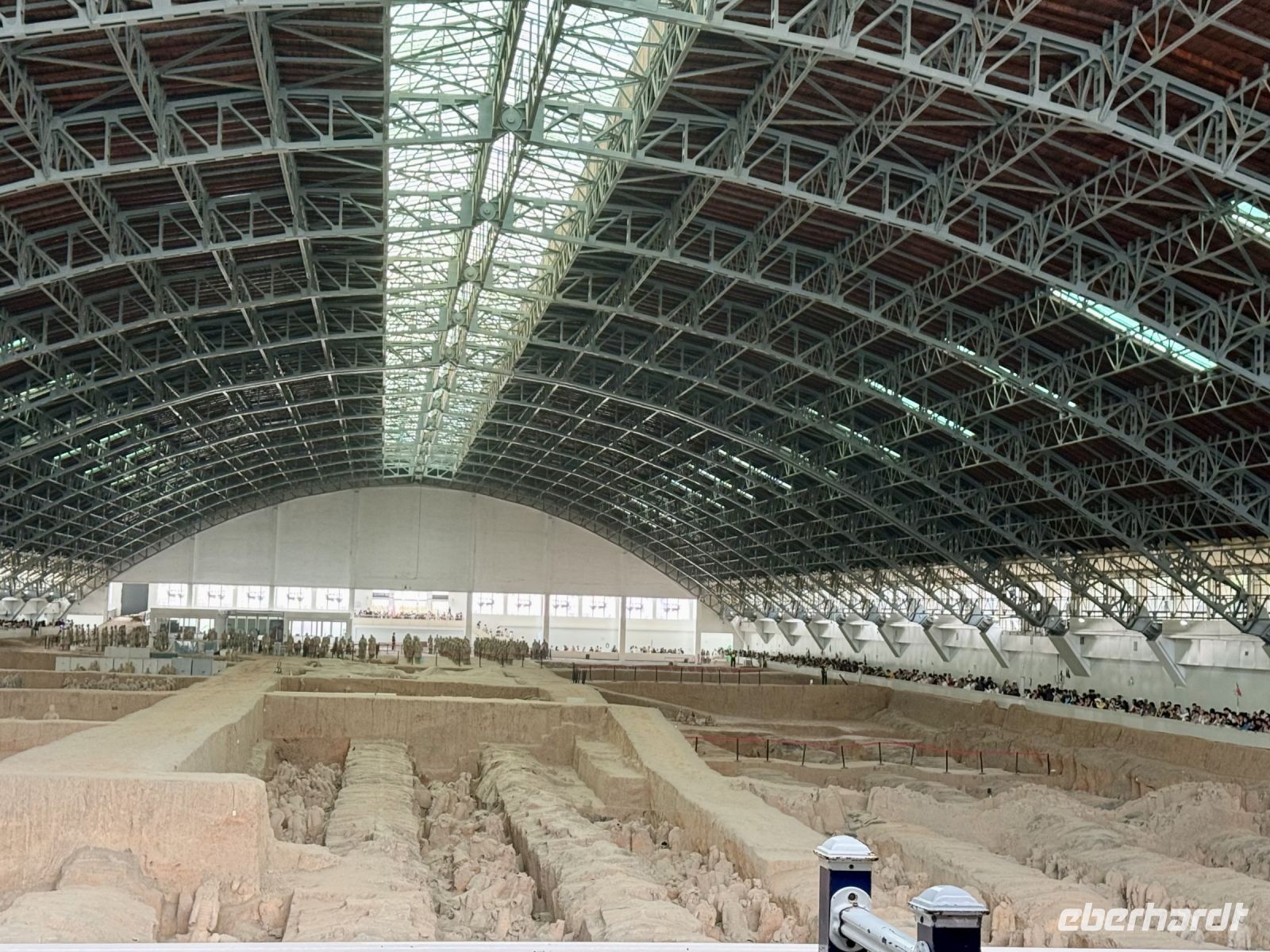 Der Höhepunkt des Tages war der Besuch der Terrakotta-Armee in der Nähe von Lintong, etwa 40 Kilometer nordöstlich von Xi’an. Diese beeindruckende Sammlung von über 8.000 lebensgroßen Tonfiguren wurde 1974 von Bauern entdeckt und stellt die Armee des ersten Kaisers Chinas, Qin Shi Huang, dar. Die Figuren variieren in Größe und Aussehen, je nach Rang, und sollten dem Kaiser im Jenseits als Schutz dienen. Die Entdeckung gilt als eine der bedeutendsten archäologischen Funde des 20. Jahrhunderts.