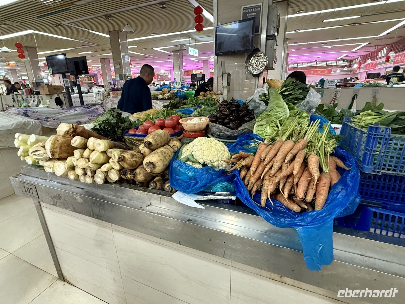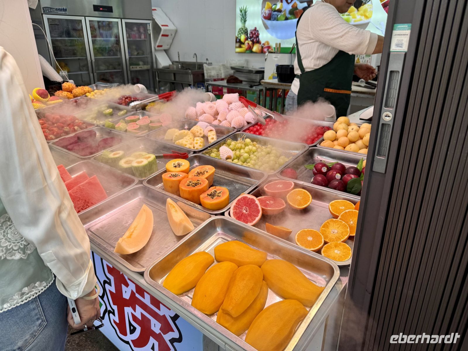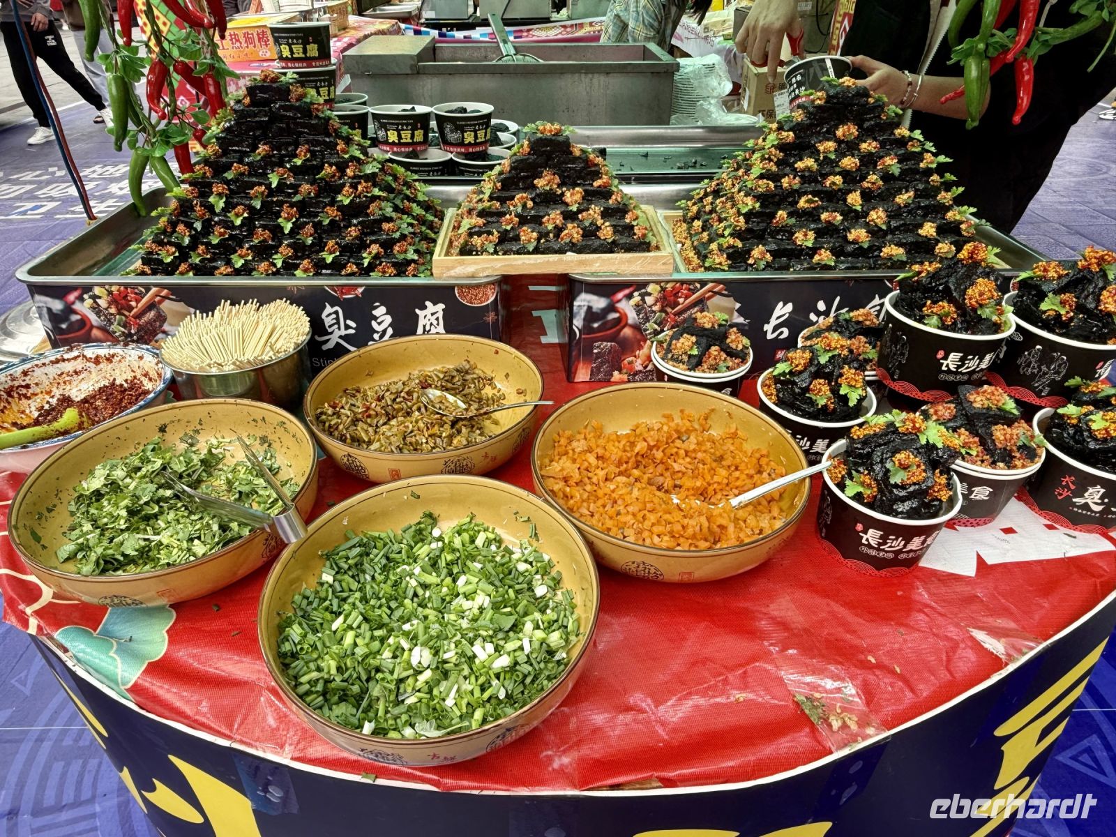 Nach diesem Bummel checkten wir im Hotel ein. Einige von uns zog es am Abend noch einmal auf einen der Märkte der Stadt, wo neben frischem Obst und Gemüse auch viele kulinarische Spezialitäten angeboten wurden. Die chinesische Marktkultur lebt von ihrer Vielfalt: Ob exotische Früchte wie Durian, Drachenfrucht und Jackfruit, geräucherte Tofu-Variationen oder süß-sauer eingelegtes Gemüse — der Markt war ein wahres Fest für die Sinne.