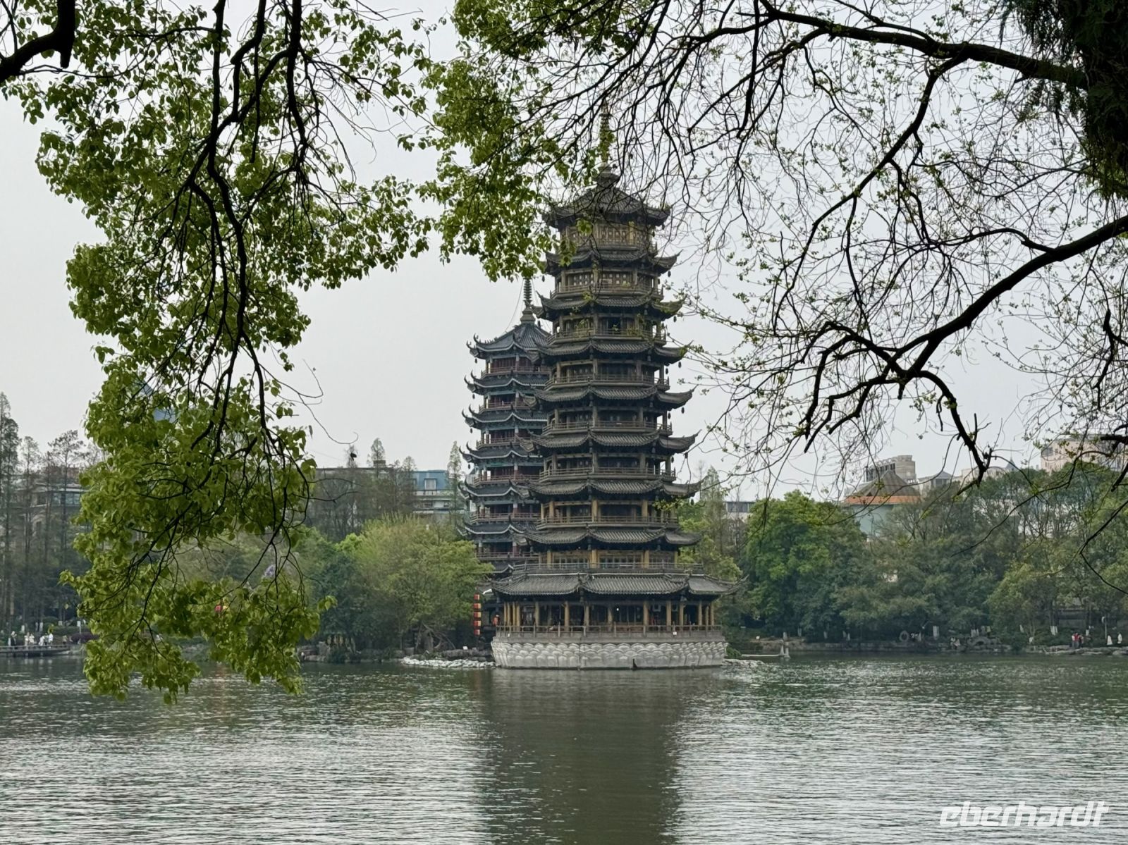 Nach unserer Ankunft in Guilin fuhren wir zu unserem Hotel, das in der Nähe des Shanhu-Sees liegt. Dieser malerische See ist von historischen Gebäuden und gepflegten Gärten umgeben und bietet einen ruhigen Rückzugsort im Herzen der Stadt. Die Altstadt von Guilin ist nur einen kurzen Spaziergang entfernt und lädt mit ihren engen Gassen, traditionellen Teehäusern und lebhaften Märkten zum Bummeln ein.