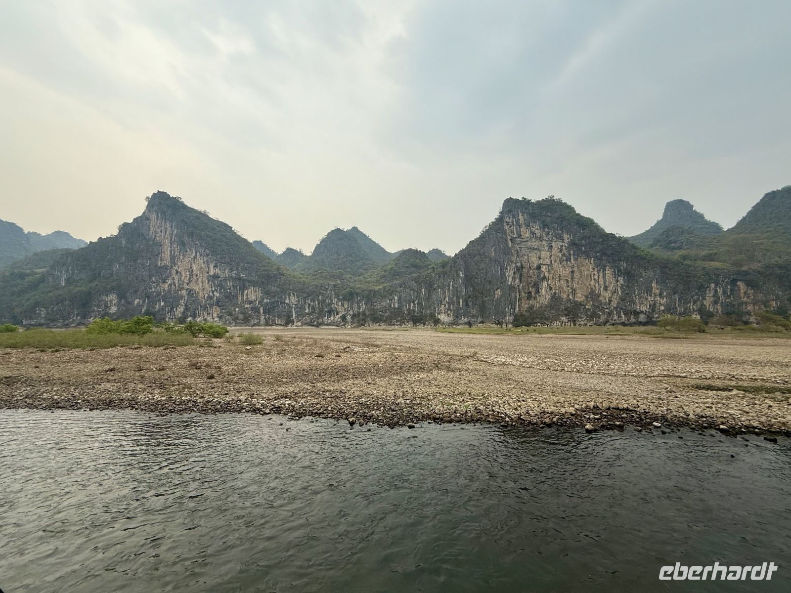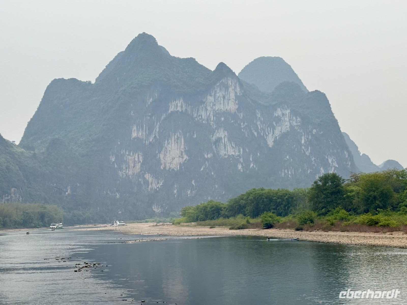 Heute stand ein weiteres Highlight unserer Reise auf dem Programm: eine Bootsfahrt auf dem Li-Fluss, der sich über 164 km durch die beeindruckende Karstlandschaft von Guangxi schlängelt. Der Name „Li“ bedeutet „klares Wasser“, was auf die Reinheit des Flusses hinweist, dessen kristallklare Gewässer von den steil aufragenden Karstbergen umrahmt werden. Wir fuhren etwa 63 km und konnten in einem gemütlichen, warmen Boot das herrliche Panorama genießen. Während der Fahrt gab es kleine Snacks, und wir hatten ausreichend Gelegenheit, die Landschaft zu bestaunen. Besonders faszinierend war es, das weltberühmte Motiv des 20-Yuan-Scheins in realer Größe vor uns zu sehen – die imposanten Karstberge, die als Symbol für China bekannt sind.