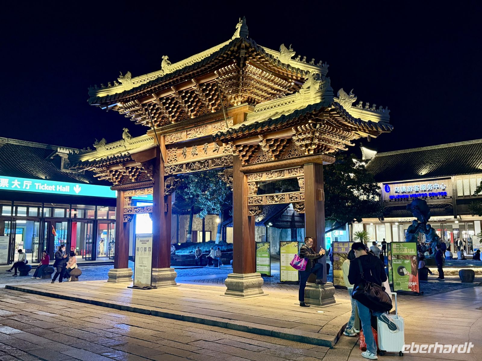 Doch Hangzhou war heute nur eine Zwischenstation, denn unser eigentliches Ziel lag noch ein Stück weiter: die malerische Wasserstadt Wuzhen. Dieses traditionelle Städtchen gehört zu den bekanntesten sogenannten „Wasserstädten“ im Süden Chinas, die wegen ihrer zahlreichen Kanäle, Brücken und alten Wohnhäuser auch als „Venedig des Ostens“ bezeichnet werden. Wuzhen blickt auf eine über 1.300-jährige Geschichte zurück und wird von dem Beijing-Hangzhou-Kanal durchzogen, der stolze 605 Kilometer lang ist und als einer der ältesten und längsten künstlichen Wasserwege der Welt gilt.