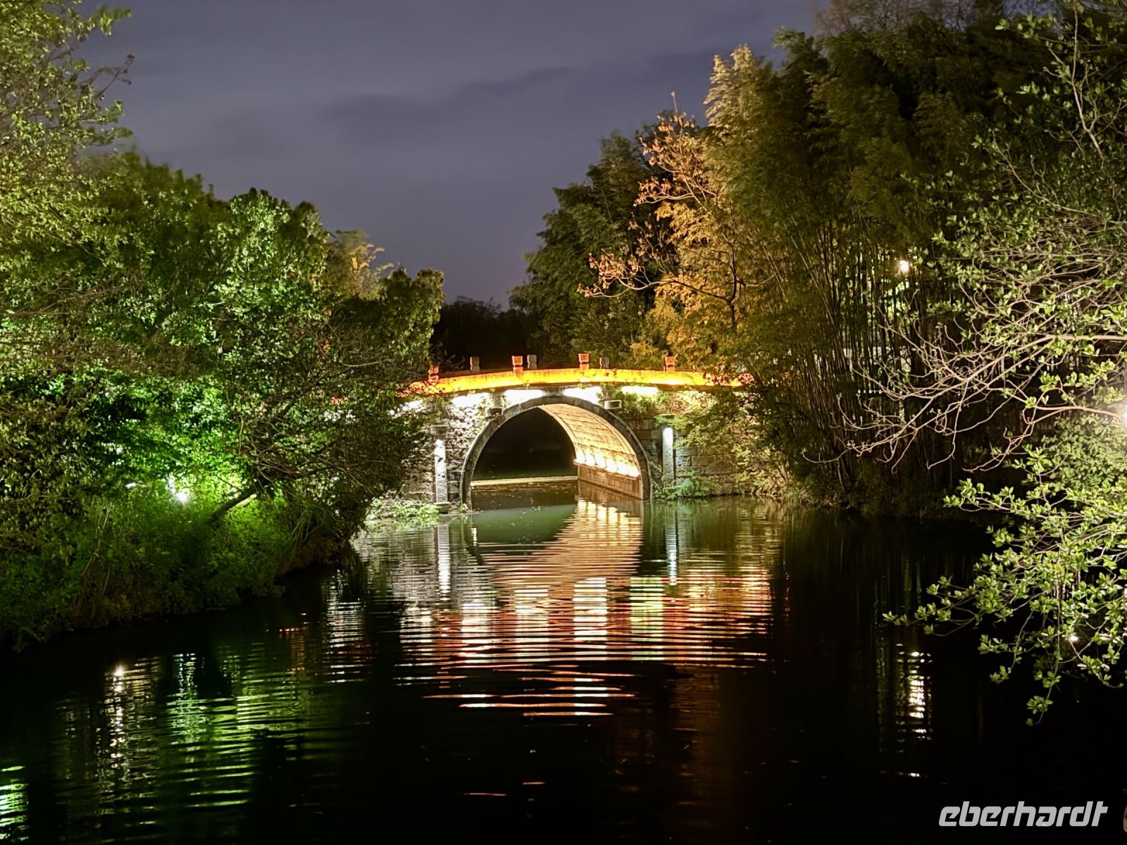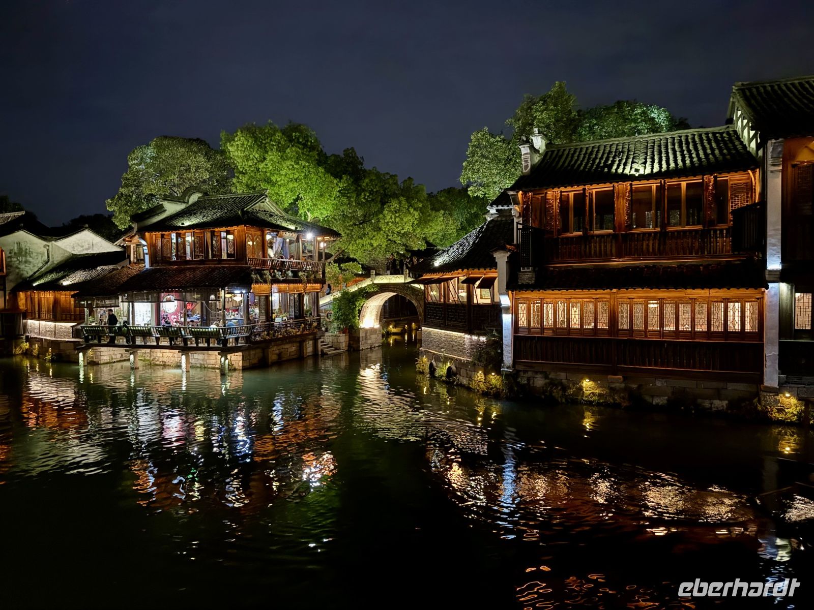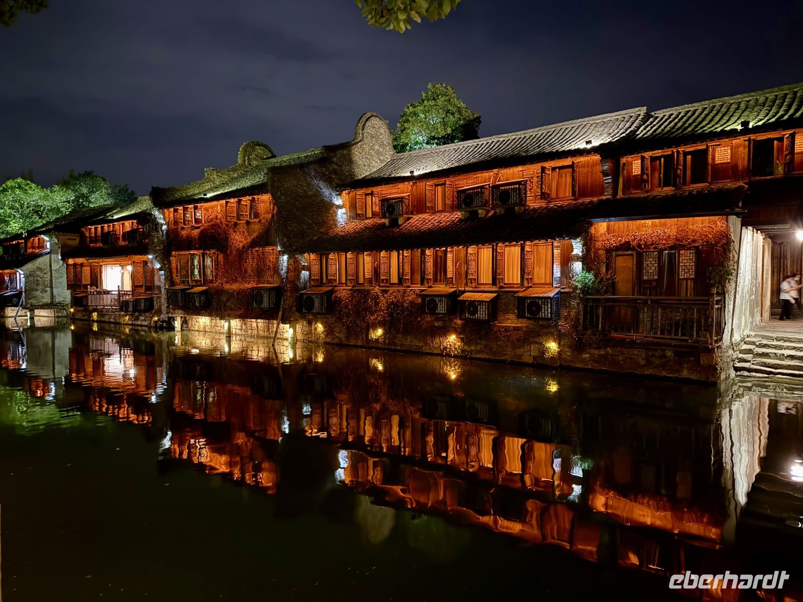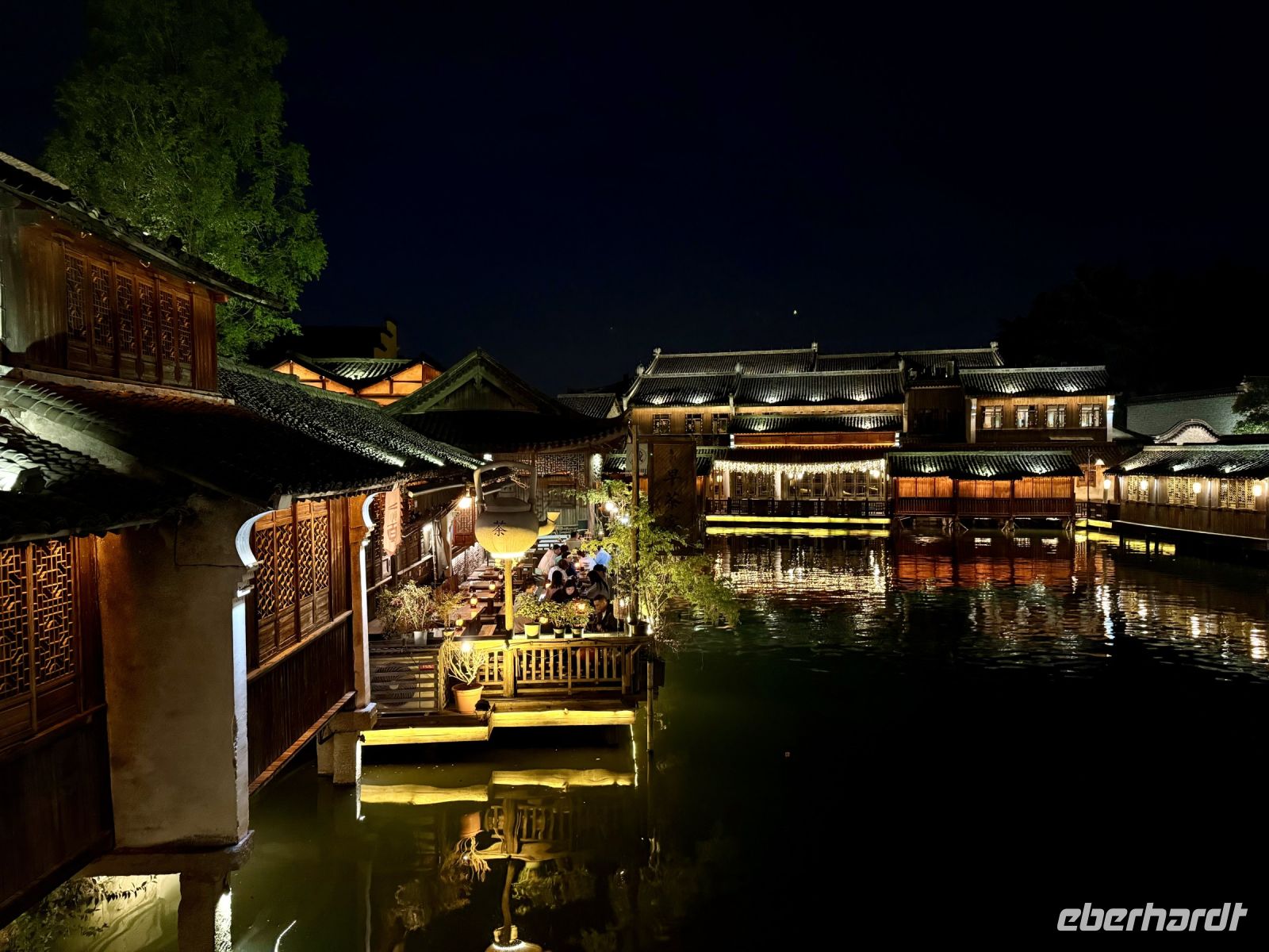 Doch pünktlich um 22 Uhr erloschen alle Lichter, denn in Wuzhen ist es Tradition, die romantische Beleuchtung zu dieser Uhrzeit zu beenden, um die Ruhe der Bewohner zu wahren. Etwas müde, aber voller Eindrücke, machten wir uns schließlich auf den Rückweg zu unserem Hotel und freuten uns auf eine erholsame Nacht.