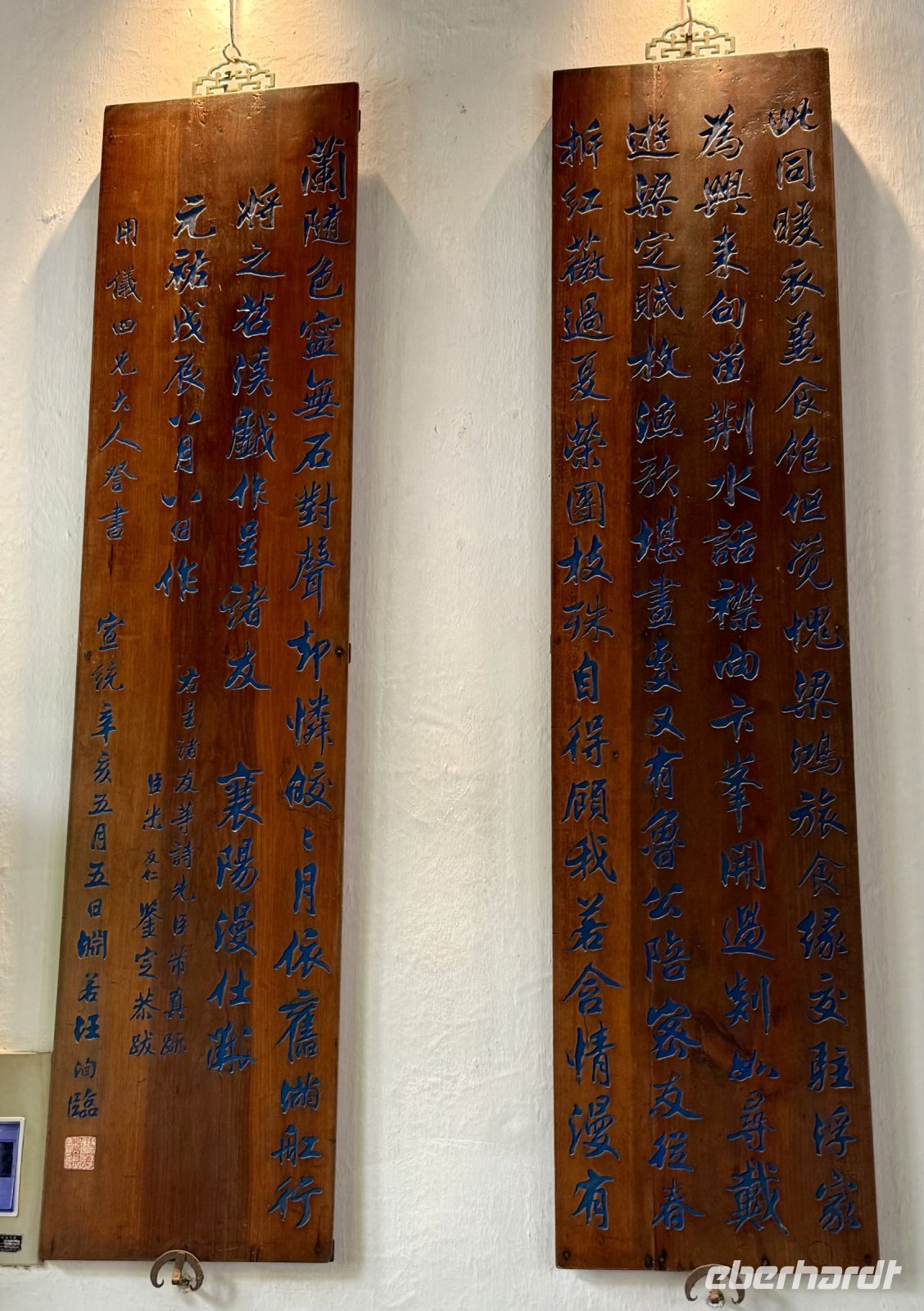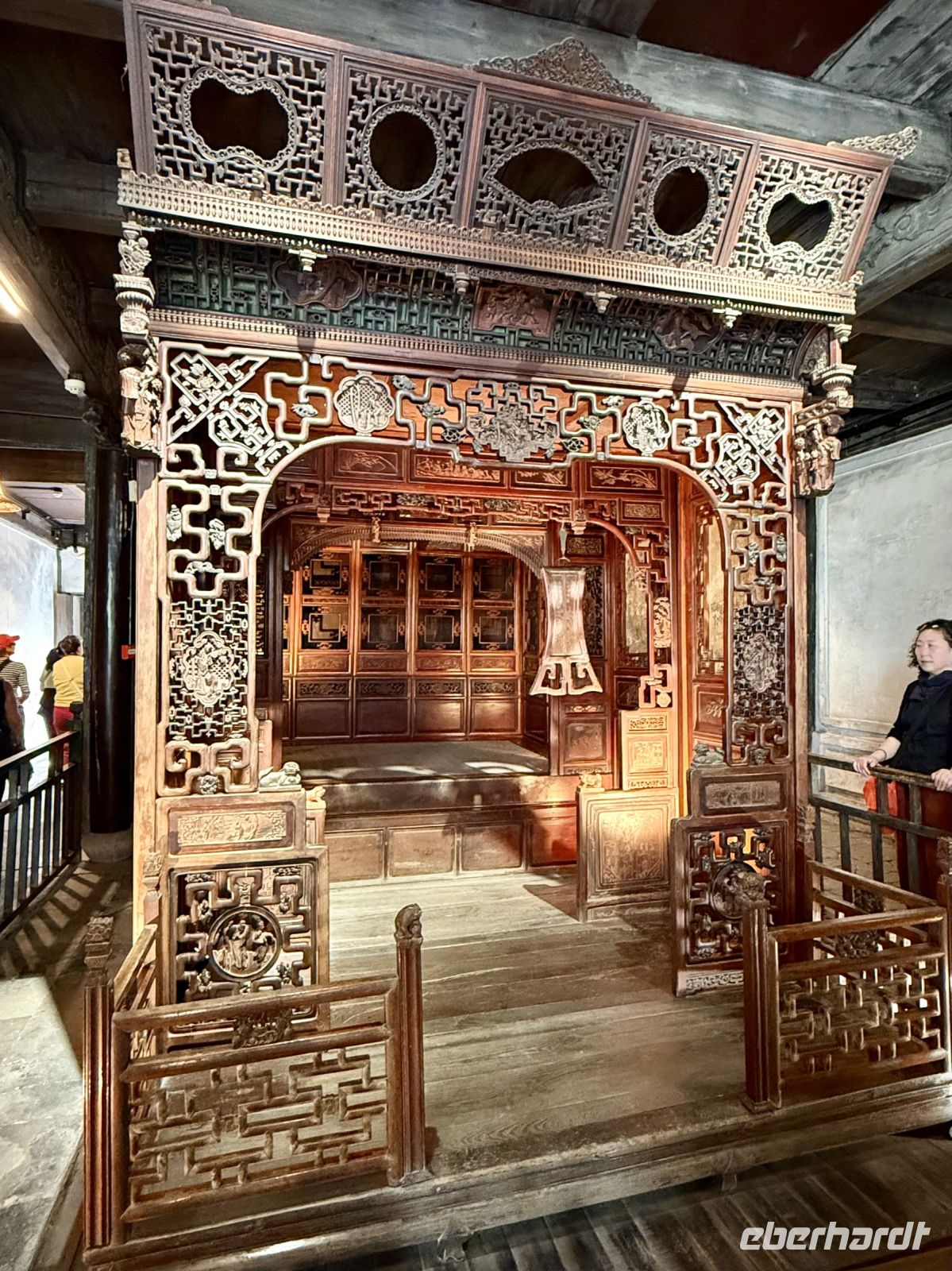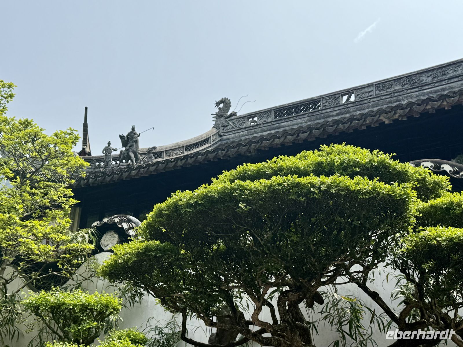 Während unseres Rundgangs erfuhren wir von unserer Reiseleiterin Lin, dass viele Elemente der chinesischen Baukunst und Symbolik tief mit den Werten des Lebens verbunden sind. Die alten Kaufmannshäuser und Pagoden spiegeln traditionelle Ideale wider: Ewigkeit, Fruchtbarkeit und Reichtum. Diese Werte drücken sich oft in der Architektur, in Ornamenten und bei der Gestaltung der Gärten aus. Besonders in Südchina gilt Wasser als Symbol für Reichtum, da es Wohlstand und fruchtbare Böden bringt. Bambus wiederum — den wir vielerorts in Gärten und als Dekorationsmotiv entdeckten — steht im chinesischen Kulturkreis für Bescheidenheit, Standhaftigkeit und Flexibilität. Er wächst aufrecht, ist innen hohl und biegsam, ohne zu brechen — eine Eigenschaft, die als Sinnbild für eine ehrliche und anpassungsfähige Lebensweise gilt.