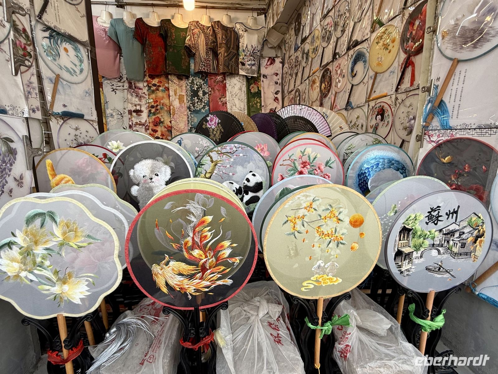 Nach der Ankunft in Suzhou begaben wir uns direkt in die belebte Altstadt, wo wir durch kleine Gassen schlenderten, exotische Lebensmittel entdeckten und typische chinesische Snacks probieren konnten. Von gedämpften Teigtaschen bis hin zu süßen Sesambällchen — es war für jeden Geschmack etwas dabei. Natürlich durfte auch ein Blick in die zahlreichen kleinen Läden nicht fehlen, in denen sich schöne Souvenirs wie handbestickte Seidenwaren, Tee, handgefertigte Schirme oder kunstvolle Schnitzereien fanden.