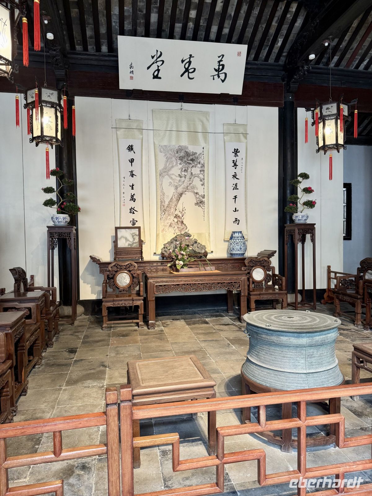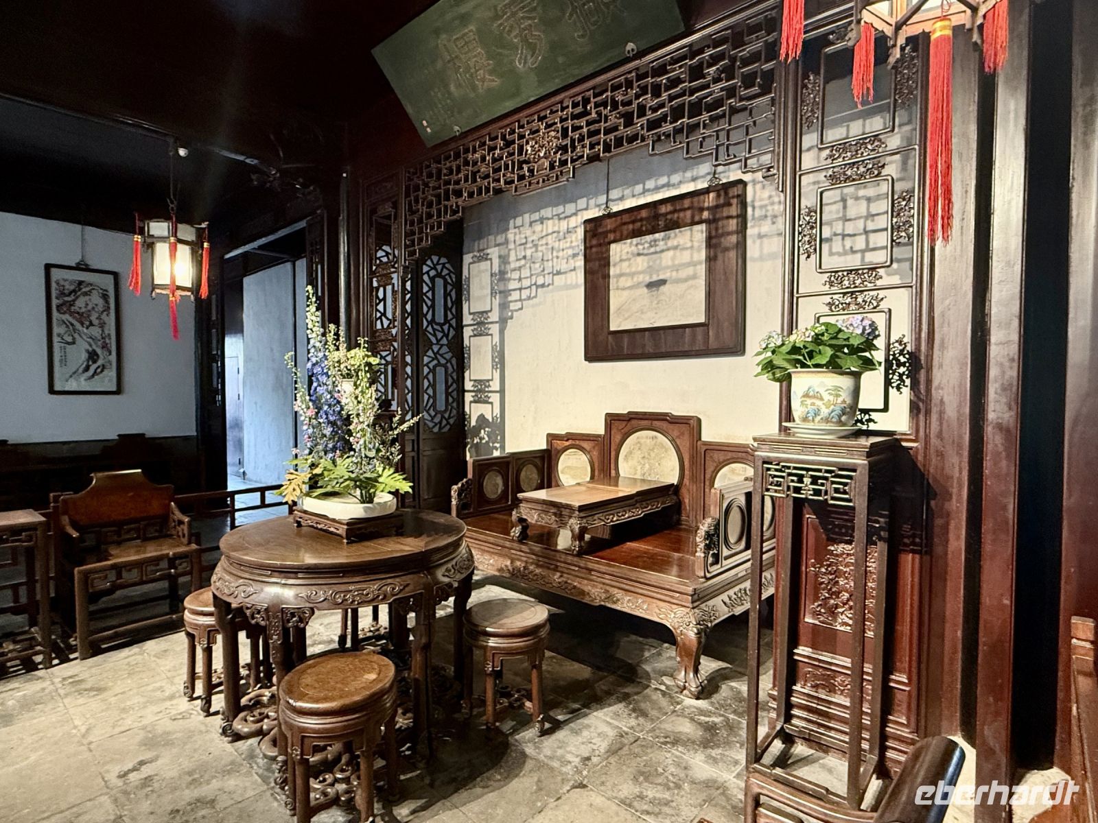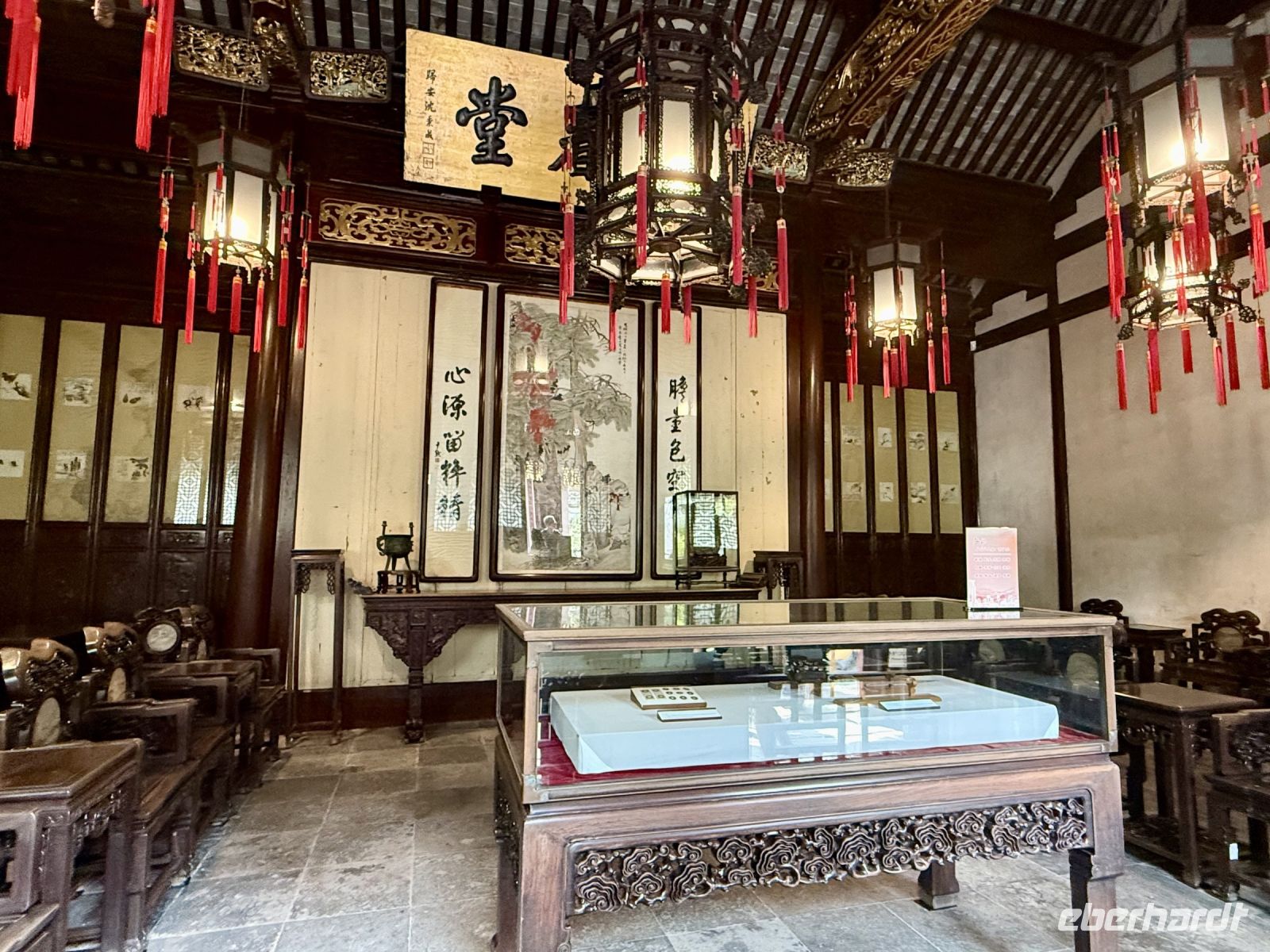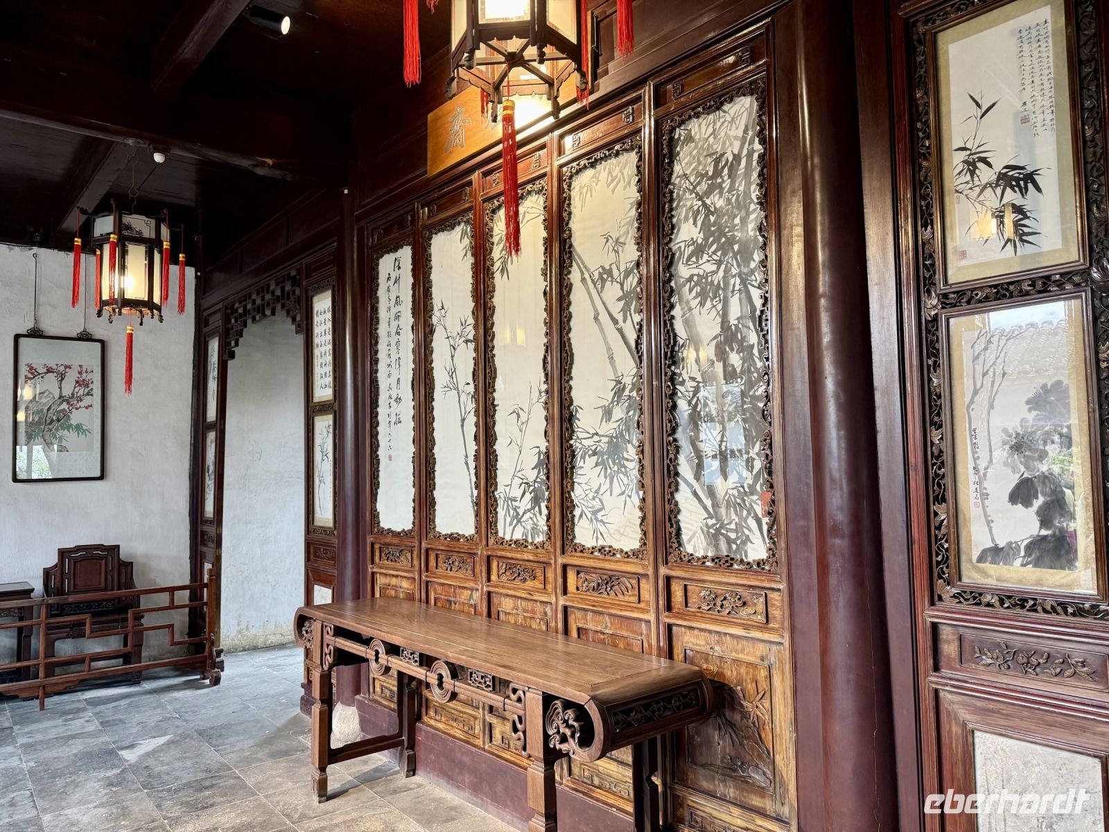Nach dieser friedlichen Fahrt stand der nächste kulturelle Höhepunkt auf dem Programm: der Besuch des Gartens des Meisters der Fischernetze (chinesisch: Wangshi Yuan) in Suzhou. Dieser Garten gehört zu den bekanntesten Beispielen klassischer chinesischer Gartenkunst und wurde ursprünglich im 12. Jahrhundert während der Song-Dynastie angelegt. Der Garten ist zwar einer der kleineren Suzhou-Gärten, aber seine Gestaltung ist meisterhaft: Mit kunstvoll angelegten Teichen, Pavillons, verwinkelten Stegen und fein gearbeiteten Felsen vermittelt er auf kleinem Raum ein Gefühl von Weite, Harmonie und natürlicher Schönheit. Der Name stammt von der romantischen Vorstellung, dass sich ein pensionierter Beamter hier zur Ruhe setzte, um in beschaulicher Einfachheit als Fischer zu leben.