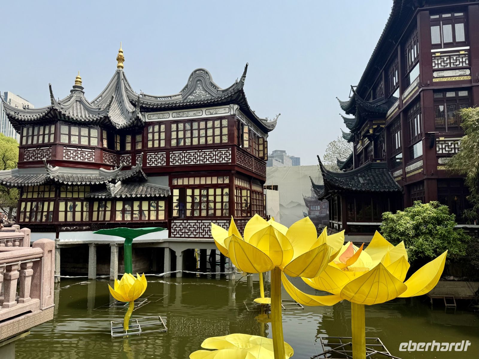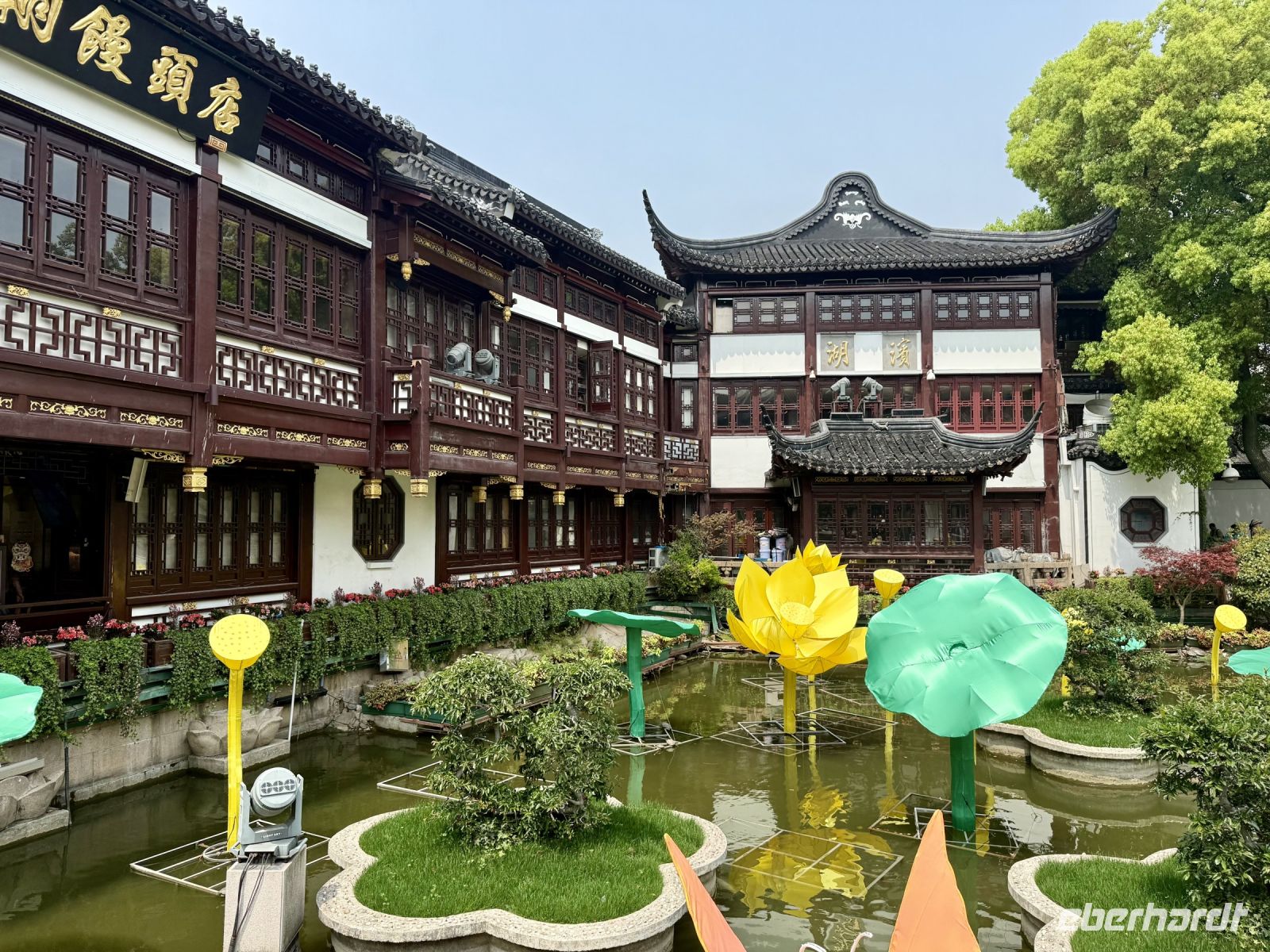 Anschließend tauchten wir ein in die idyllische Welt des Yu-Gartens, einer klassischen chinesischen Gartenanlage im Herzen der Altstadt von Shanghai. Der Garten wurde im 16. Jahrhundert während der Ming-Dynastie von einem hohen Beamten namens Pan Yunduan als Rückzugsort für seine Eltern geschaffen. Die Anlage erstreckt sich über rund 2 Hektar und begeistert mit kunstvoll angelegten Teichen, geschwungenen Brücken, alten Pavillons und liebevoll gestalteten Felsformationen. Hier spürt man besonders gut die Harmonie, die in der chinesischen Gartenkunst zwischen Natur, Architektur und Philosophie angestrebt wird.