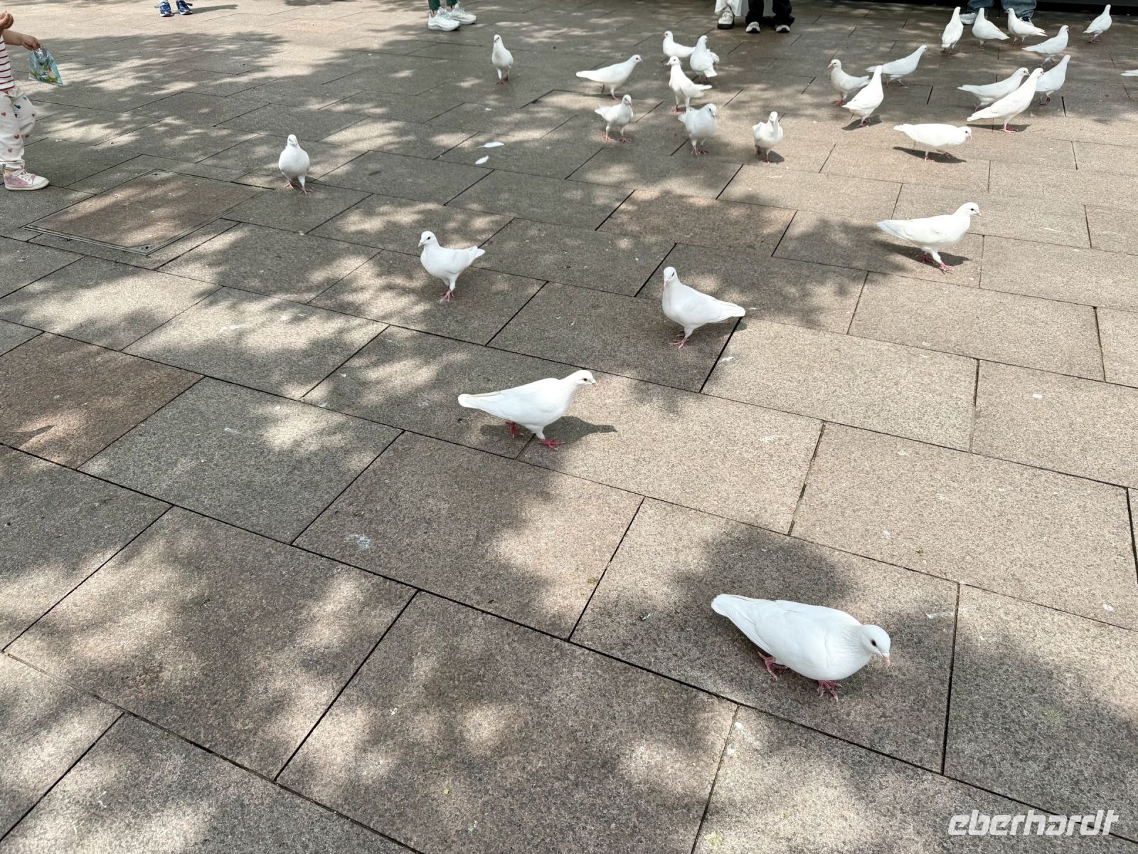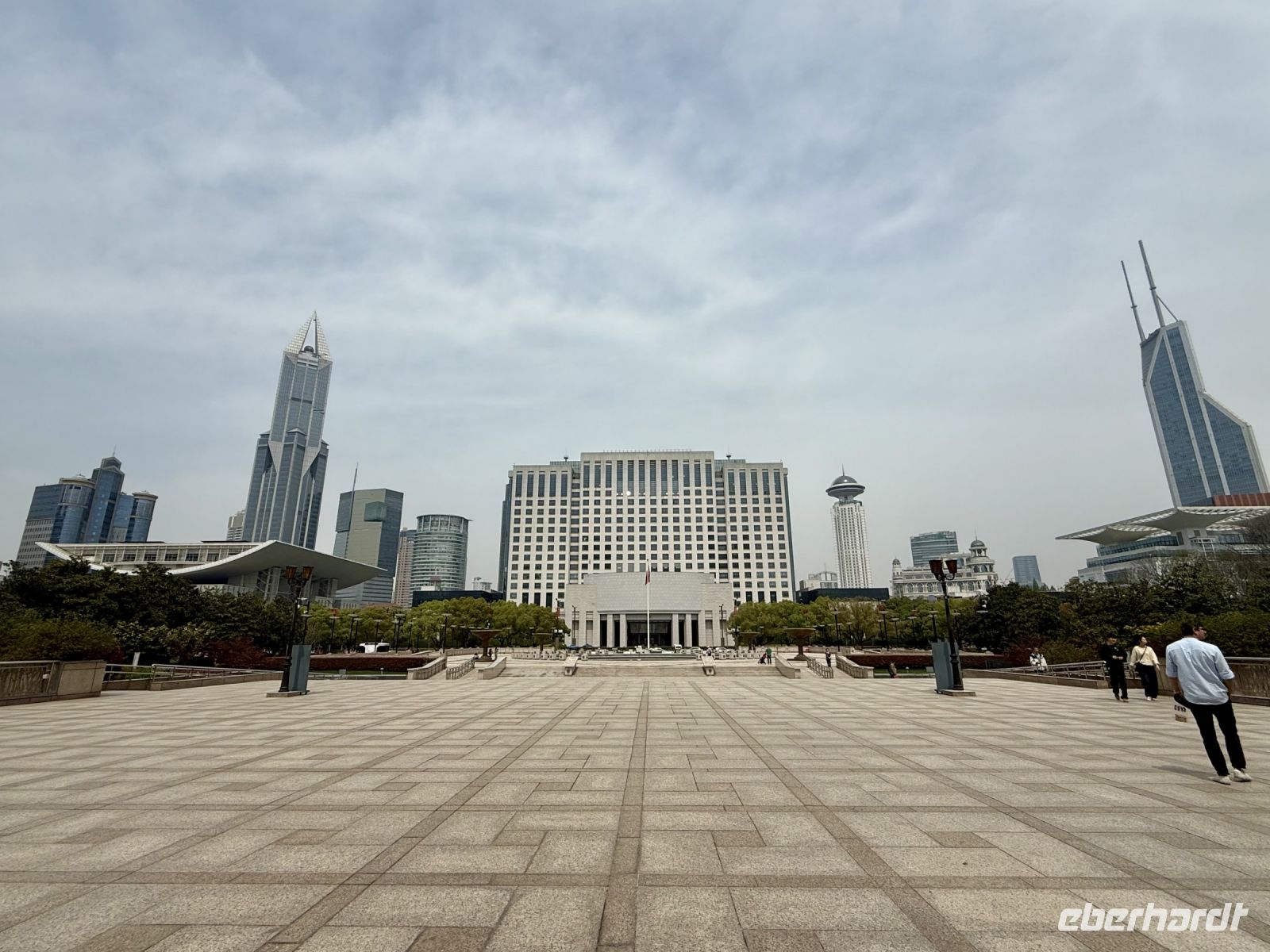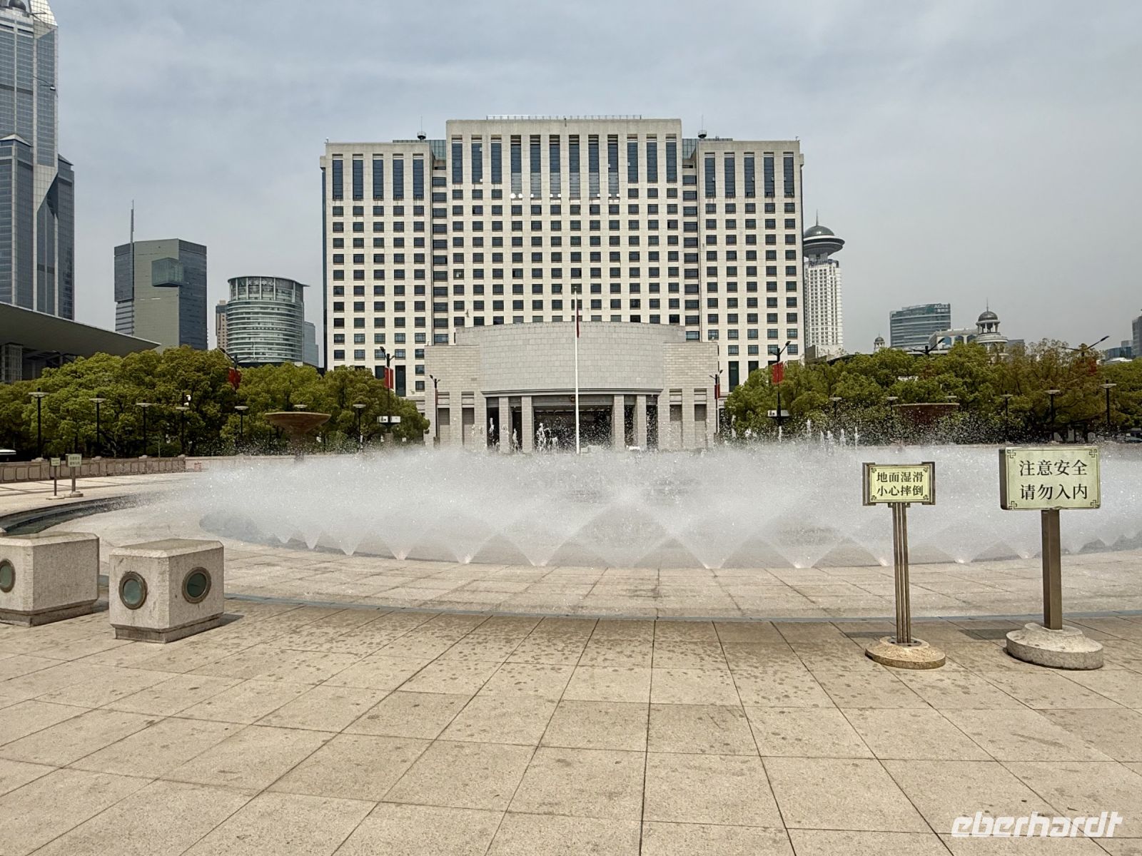 Direkt im Anschluss schlenderten wir über den nahegelegenen Volksplatz, einen der bekanntesten öffentlichen Plätze Shanghais. Einst befand sich an dieser Stelle die Pferderennbahn der britischen Kolonialzeit, heute ist der Platz ein beliebter Treffpunkt für Einheimische, um sich zu entspannen, Tai Chi zu üben oder einfach die beeindruckende Skyline zu genießen. Gerade als wir dort eintrafen, begann zufällig die wunderschöne Wassershow, bei der kunstvoll choreografierte Fontänen im Takt der Musik durch die Luft tanzten — ein stimmungsvoller Moment, der uns sehr beeindruckte.