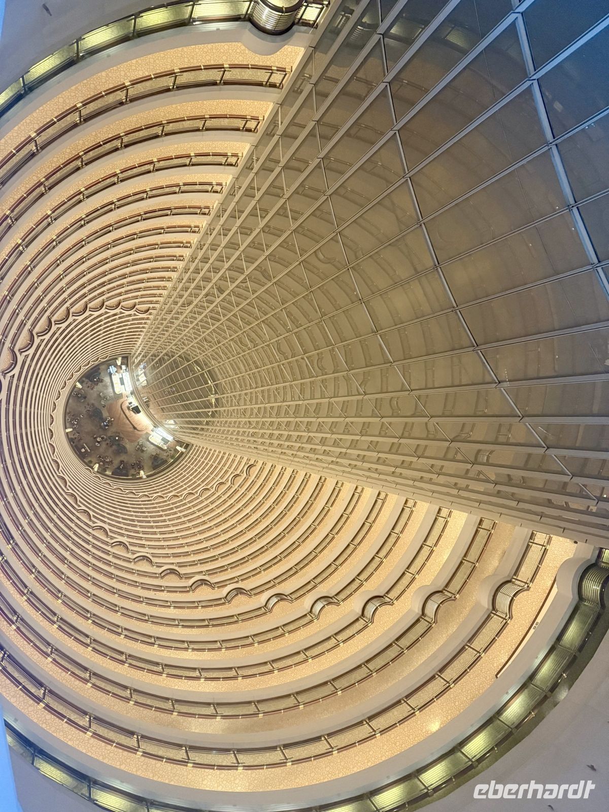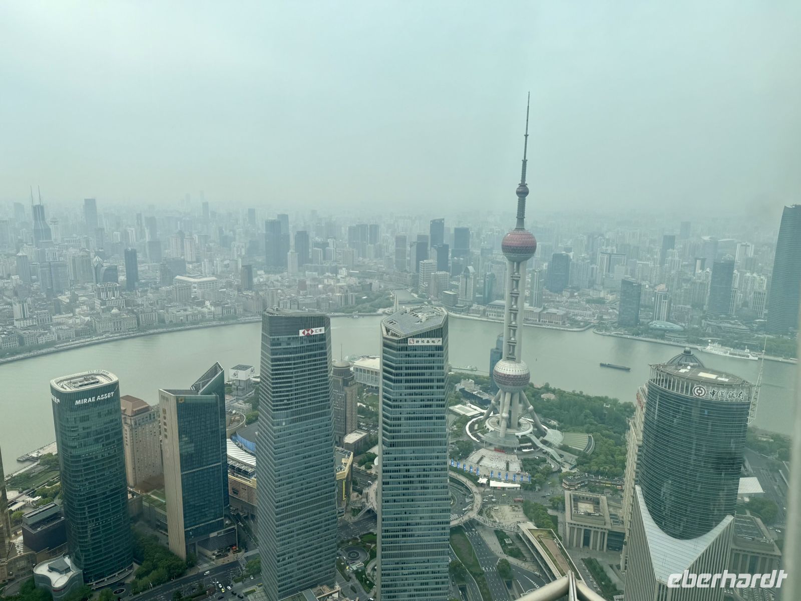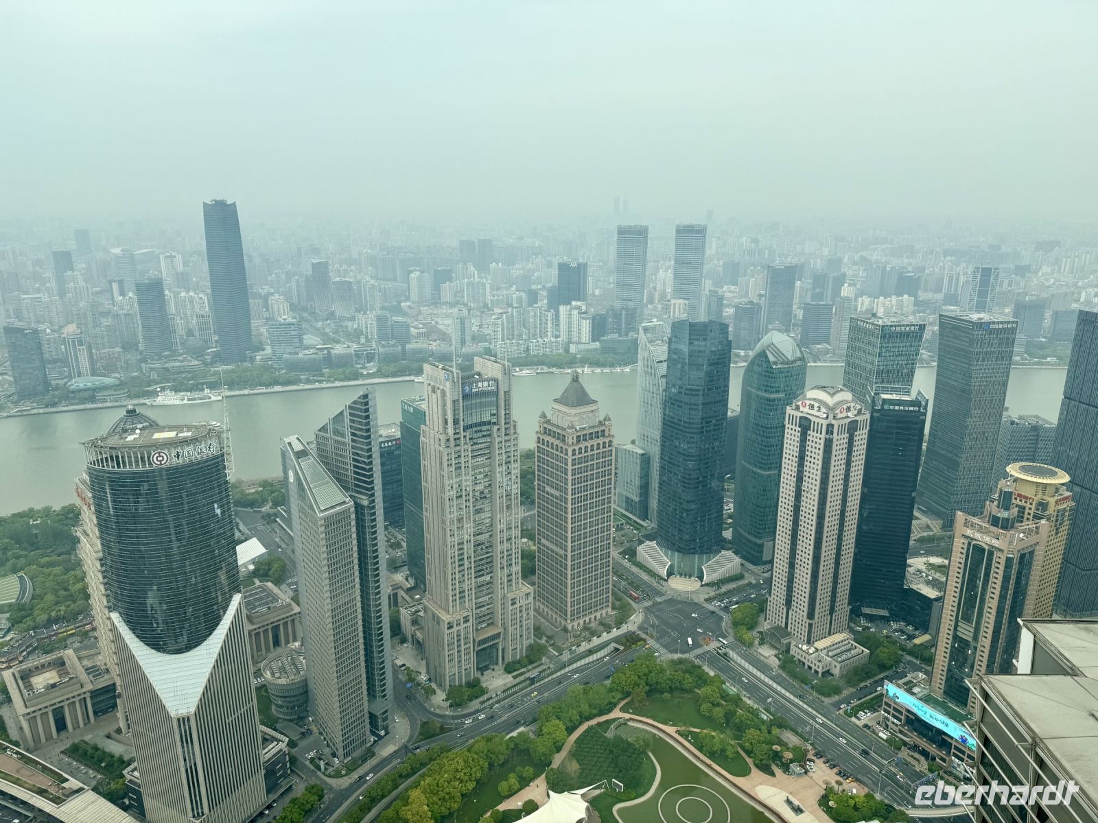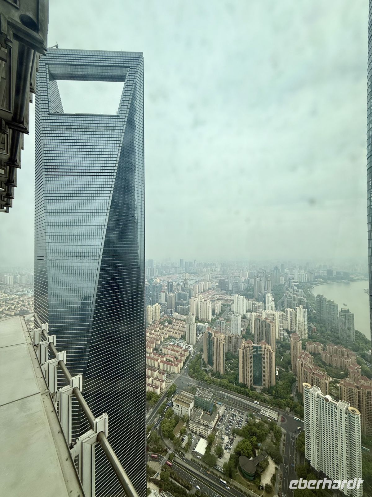 Als gemeinsamer Abschluss unseres Besichtigungsprogramms stand der Besuch des Jin Mao Towers auf dem Plan. Der 88 Stockwerke hohe Wolkenkratzer war bis zum Bau des Shanghai Towers das höchste Gebäude der Stadt und ist 420,5 Meter hoch. Von der Aussichtsplattform im 88. Stock hatten wir einen spektakulären Blick über die Metropole: Die mächtigen Flüsse und das futuristische Pudong-Viertel lagen uns zu Füßen — ein absolut würdiger Abschied von dieser beeindruckenden Stadt.