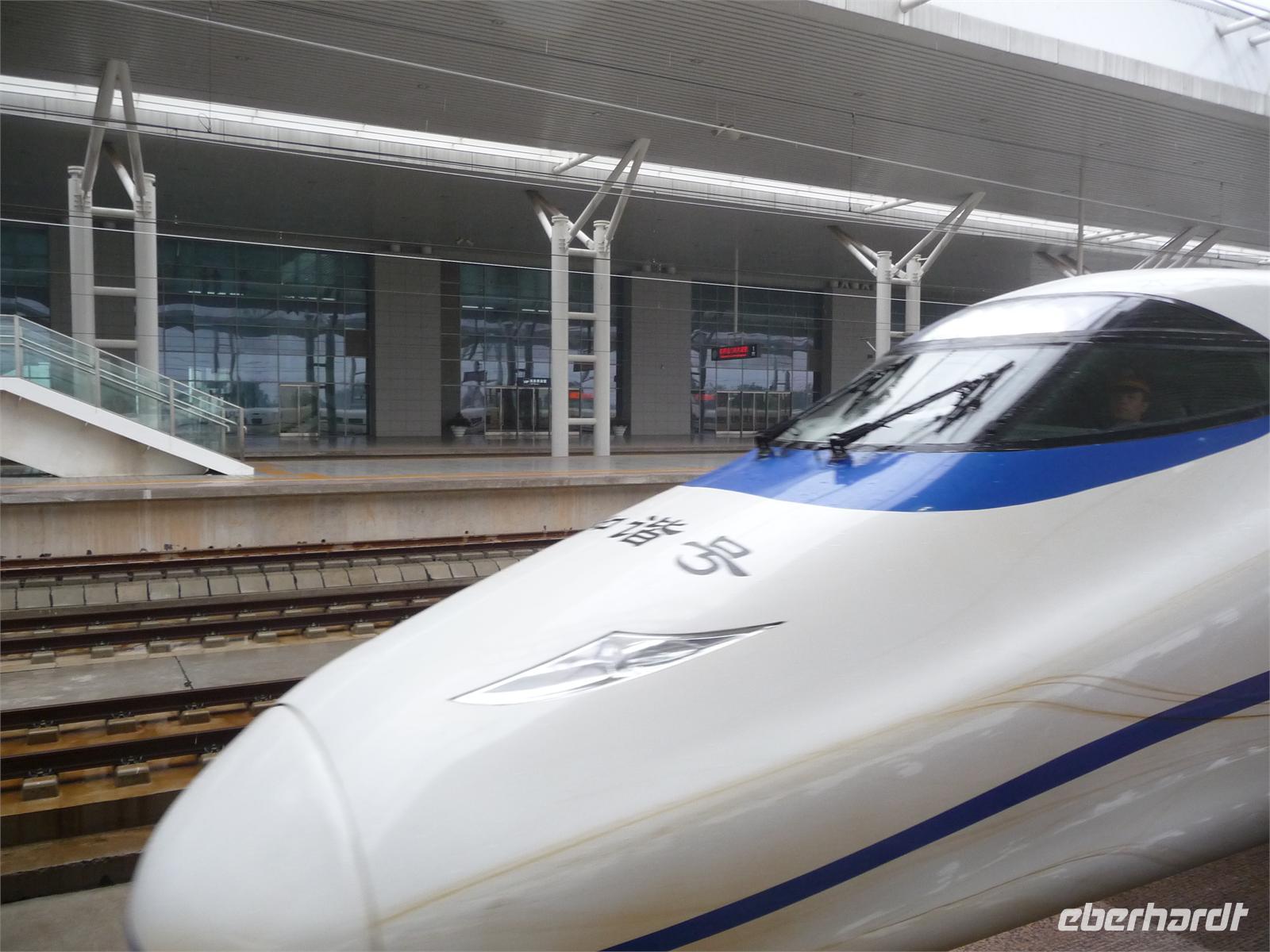 Die Fahrt zum Bahnhof endet zunächst wieder mal in einem Stau. Josef betet zu Buddha, dass wir den Zug nach Souzhou noch rechtzeitig erreichen und ich schwitze auch Blut und Wasser... aber alles wird gut und wir erreichen ihn noch. Pünktlich um 10:05 Uhr rasen wir mit dem Hochgeschwindigkeitszug von Nanjing nach Souzhou.