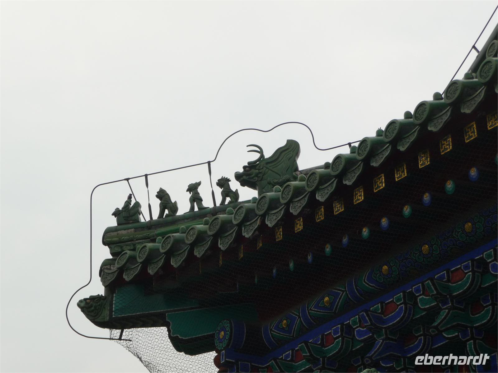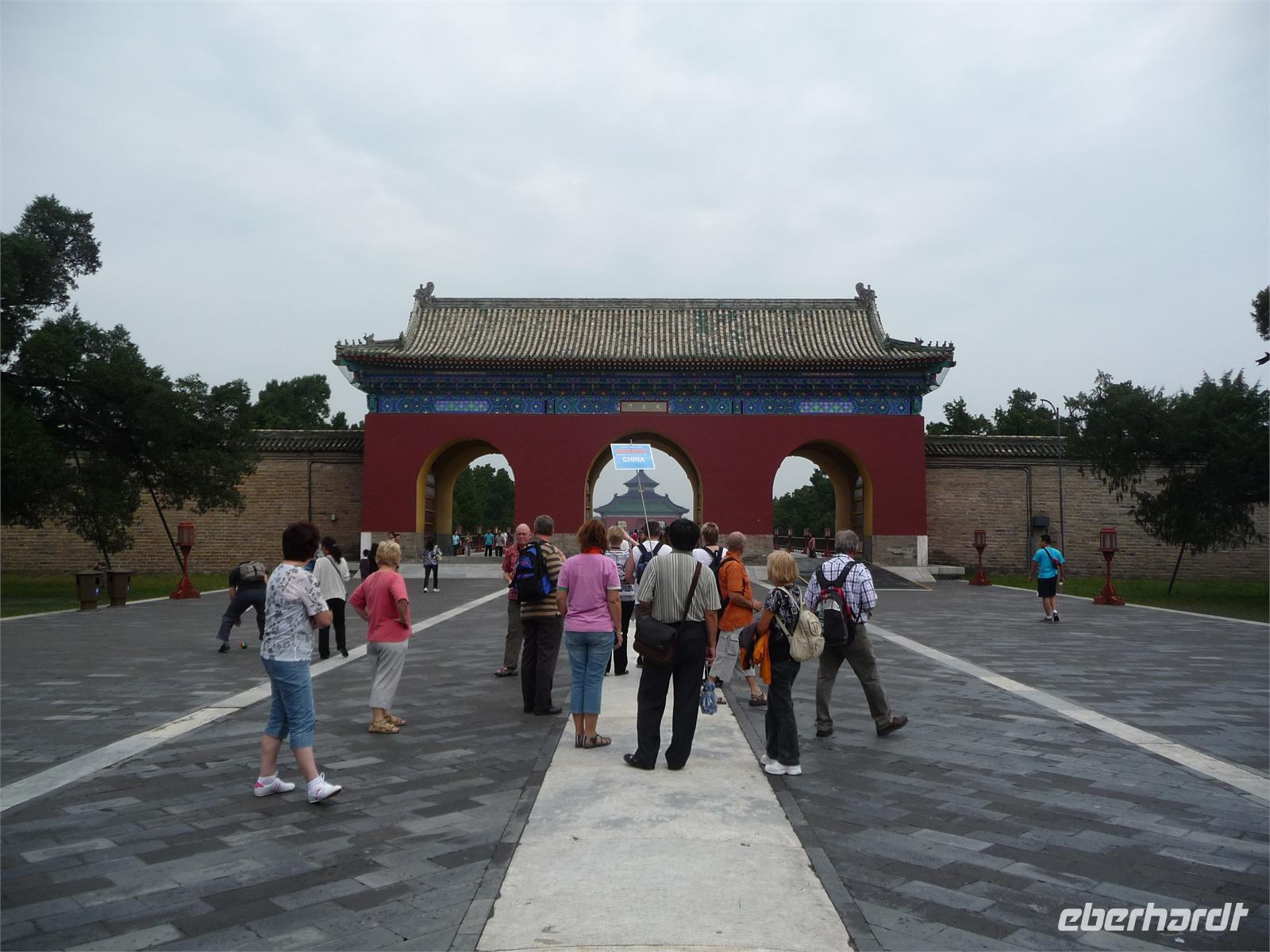 Nach einer Erfrischungspause im Hotel beginnt das interessante, aber auch anstrengende Programm, da uns der lange Flug doch sehr in den Knochen steckt und wir uns auch erst wieder auf sommerliche 30°C und schwül-warmes Klima einstellen müssen. Die Größe des Tiananmenplatzes, noch mehr der Verbotenen Stadt imponieren uns sehr und Geschichten über Eunuchen und Konkubinen erheitern die Gemüter.