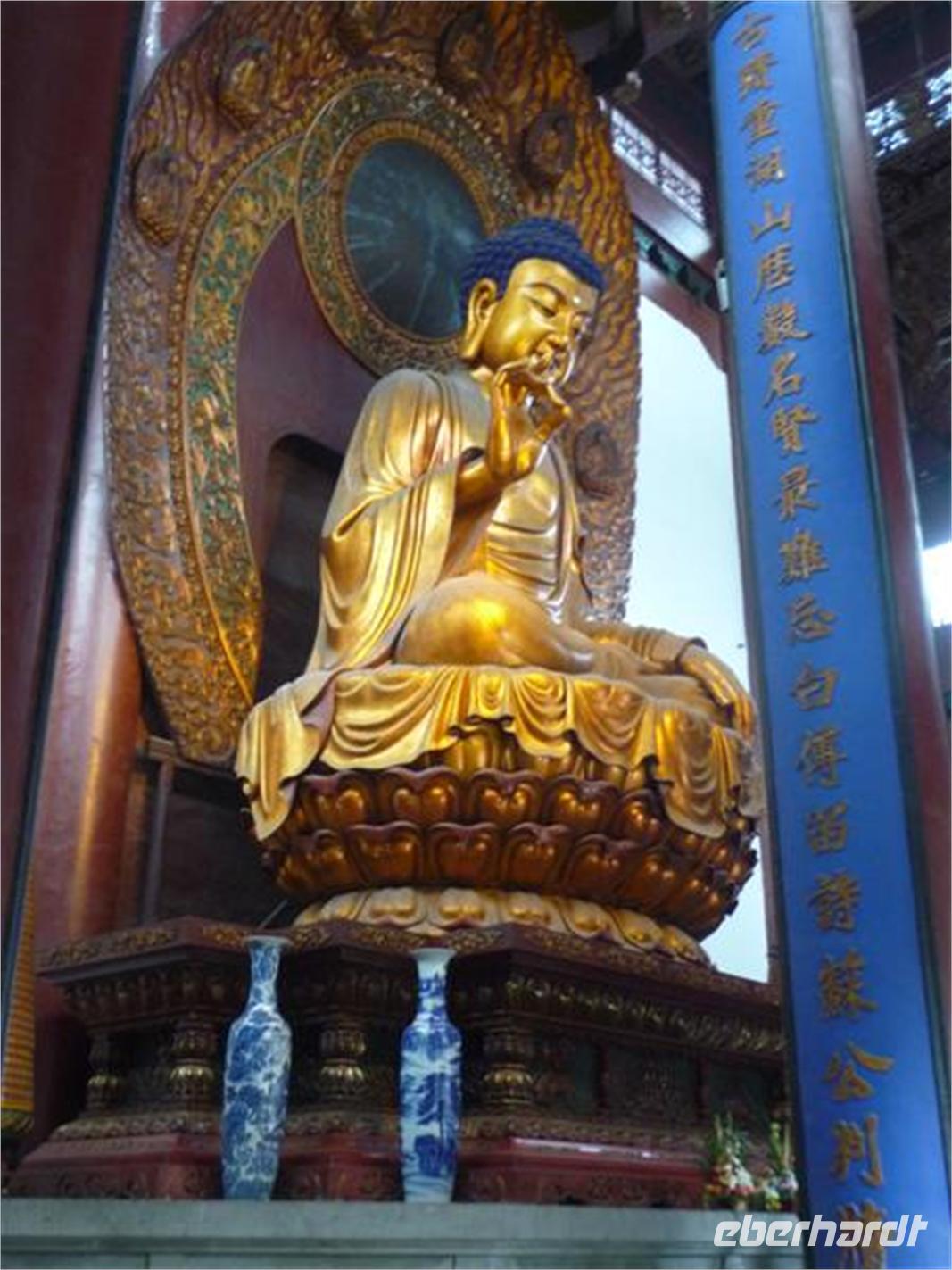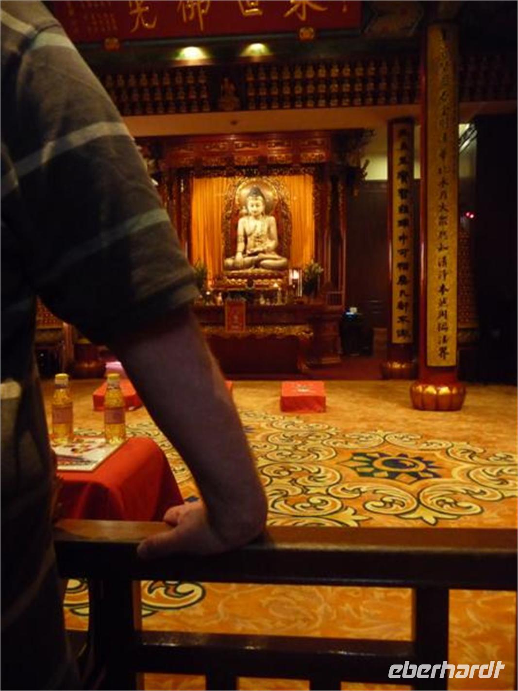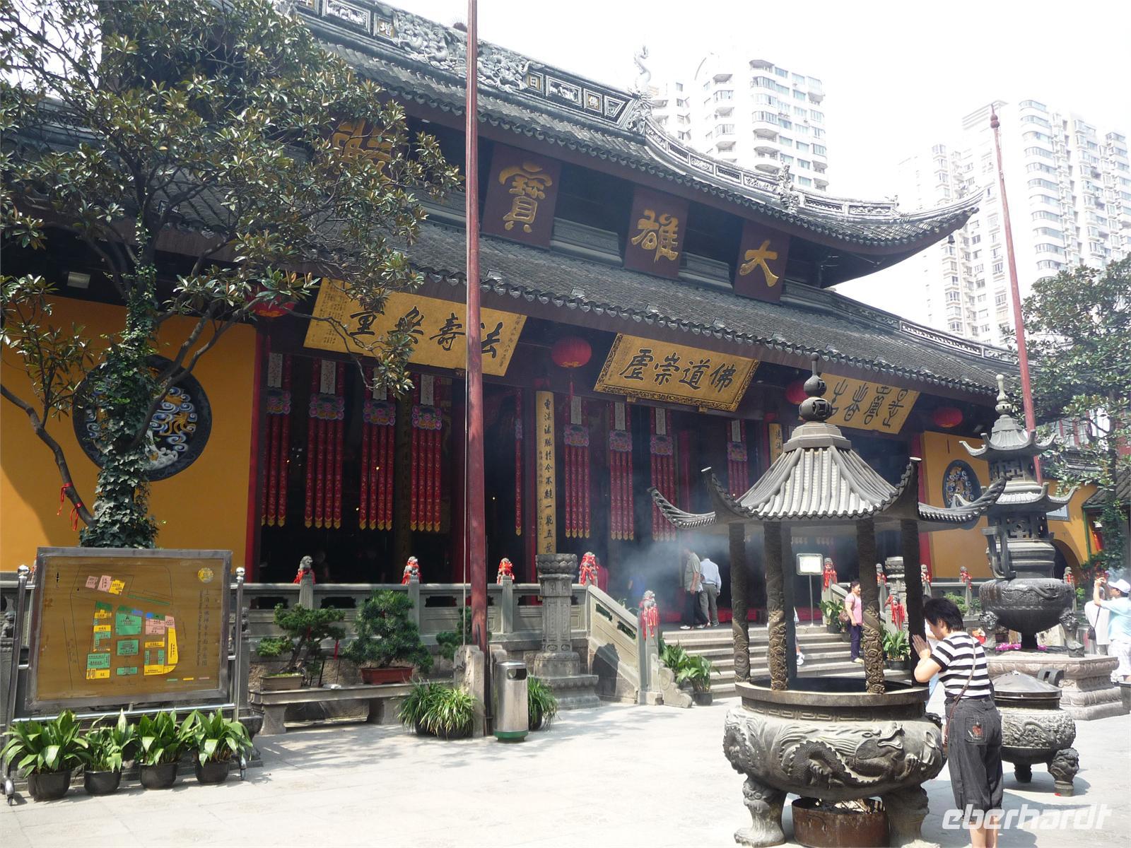 Gegen Mittag fahren wir mit dem Bus weiter nach Shanghai und besuchen gleich, den Mitten in der Stadt gelegenen Jade-Buddha-Tempel. Die zwei Buddha-Figuren sind wirklich unfassbar schön und es ist schade, dass man sie offiziell nicht fotografieren darf. Ein kleiner, heimlicher Schnappschuss ist mir dennoch gelungen...