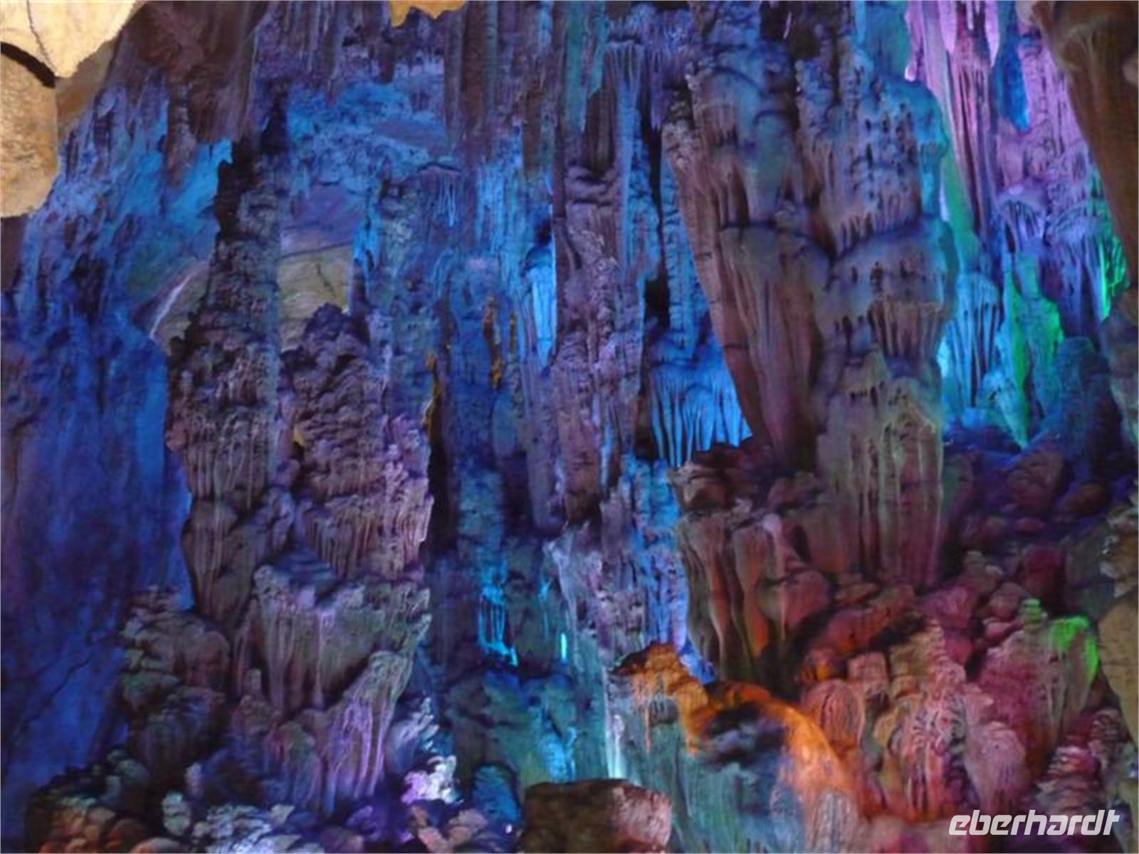 Unsere Reise führt uns heute per Flugzeug weiter nach Guilin. Der neue örtlicher Reiseleiter, Herr Gung, ist in seiner Art ganz putzig, aber leider nicht ganz so gut zu verstehen, wie die Reiseleiter davor. Unsere Koffer werden am Flughafen gesammelt und separat zum Hotel gebracht. Wir fahren währenddessen zu den Besichtigungen - erst zur Schilfrohrflötenhöhle, dann zum Sieben-Sterne-Park mit den 3 Pandabären, die sich angesichts der Wärme in ihr klimatisiertes Gehege zurückgezogen haben. Die Sonne knallt heute wirklich unheimlich und so hat keiner wirklich Lust, noch länger im Park zu spazieren, also fahren wir zum Hotel. Dieses verlassen wir noch einmal zum Abendessen und zum abendlichen Bummel in der Umgebung, doch an der Lufttemperatur und -feuchtigkeit hat sich nicht wirklich viel geändert.